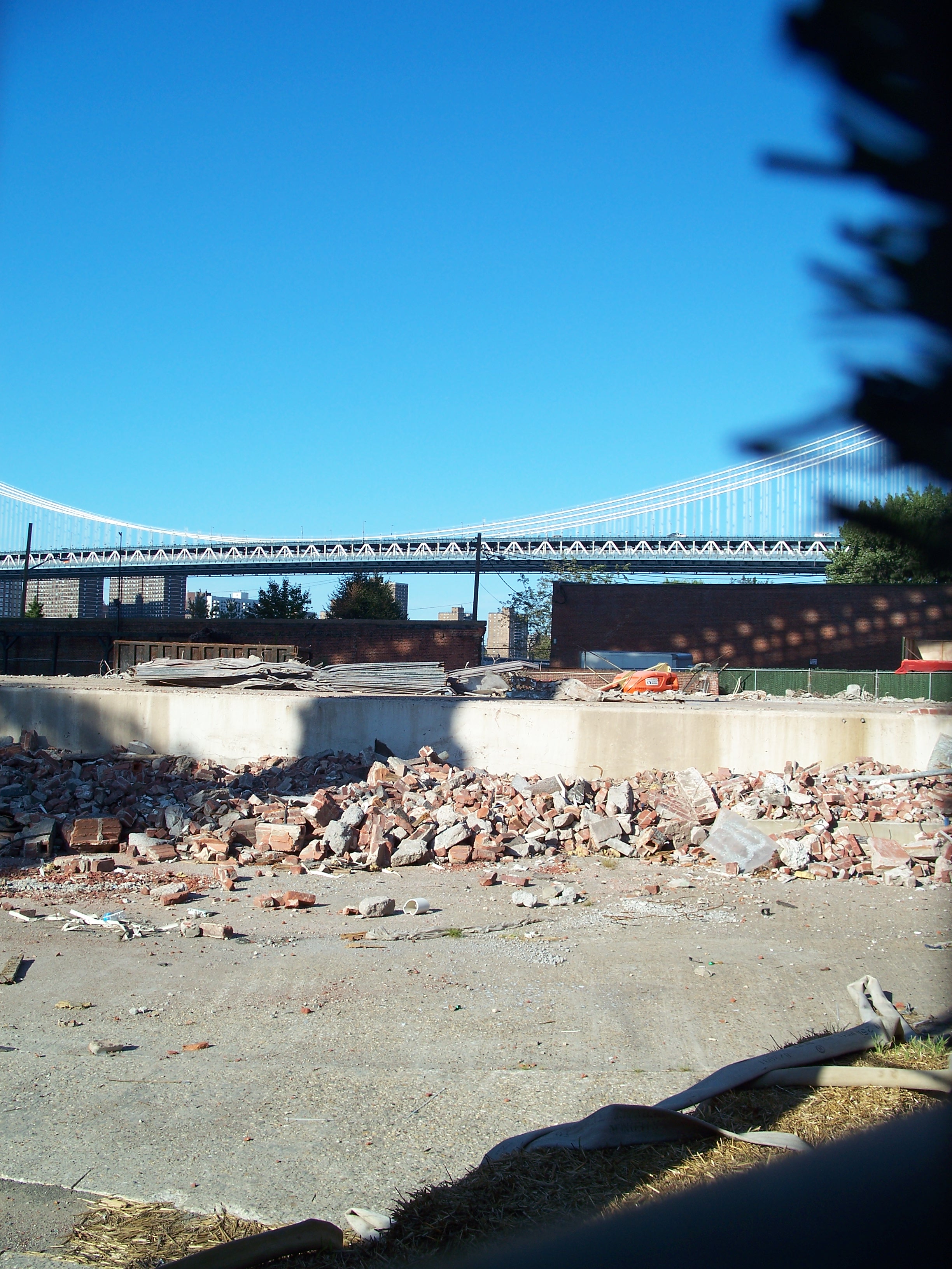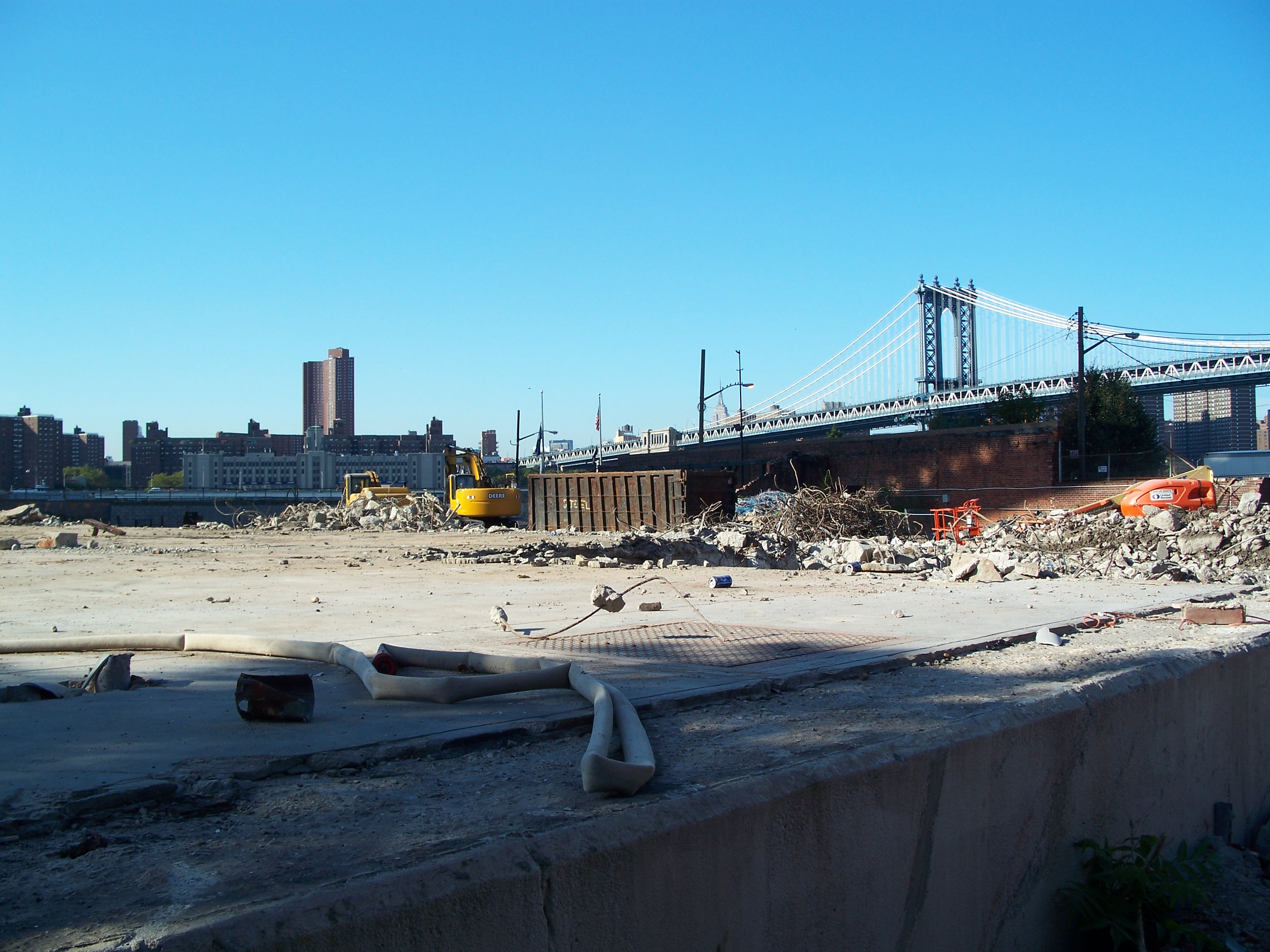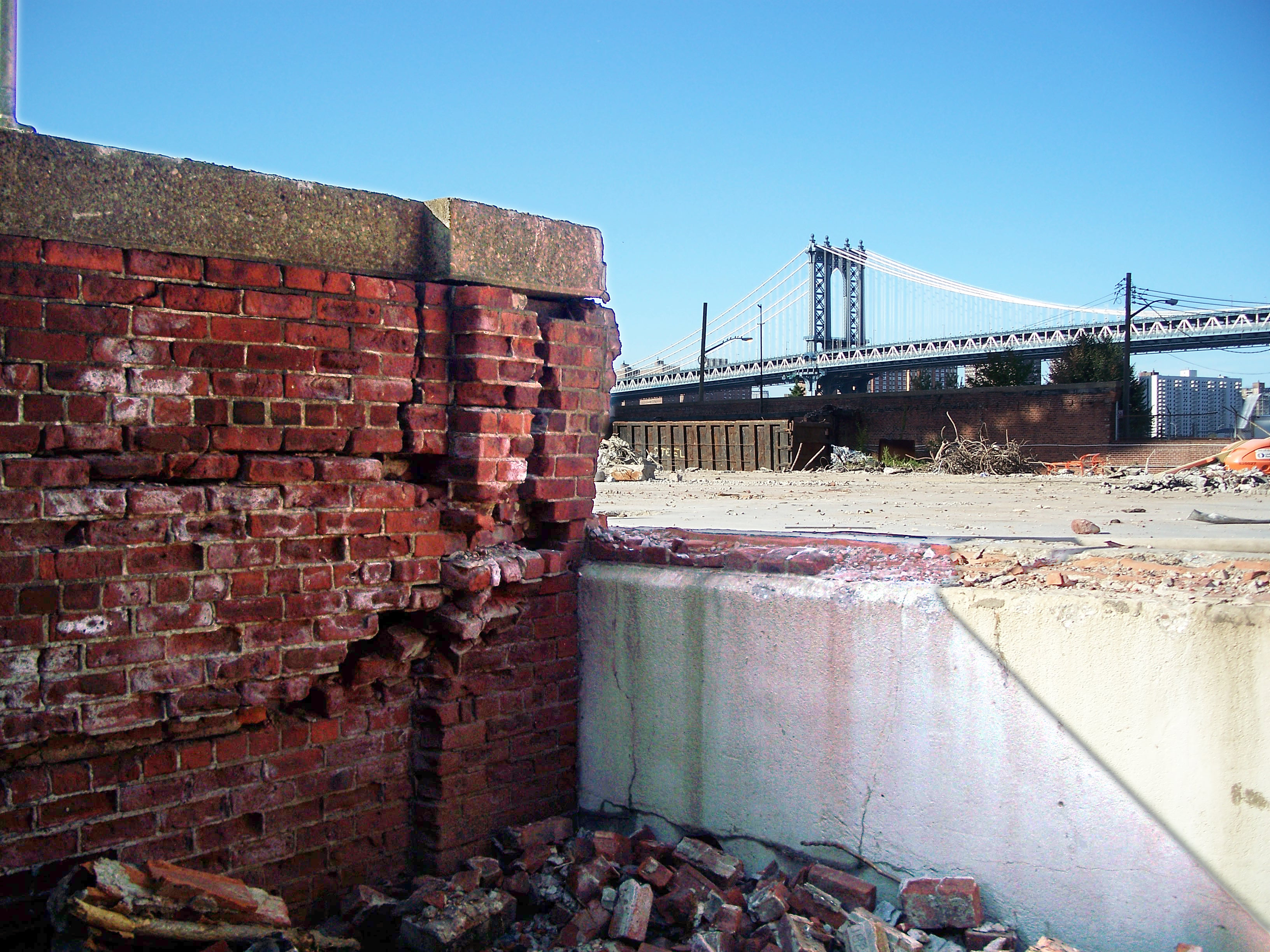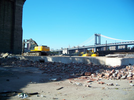The Purchase Building was a modernist structure that was built under the Brooklyn side span of the Brooklyn Bridge in the 1930s. It was originally a warehouse for the city Department of Purchase and served as a warehouse for other city agencies before being demolished in the spring of 2008 to make way for a piazza addition to Brooklyn Bridge Park.