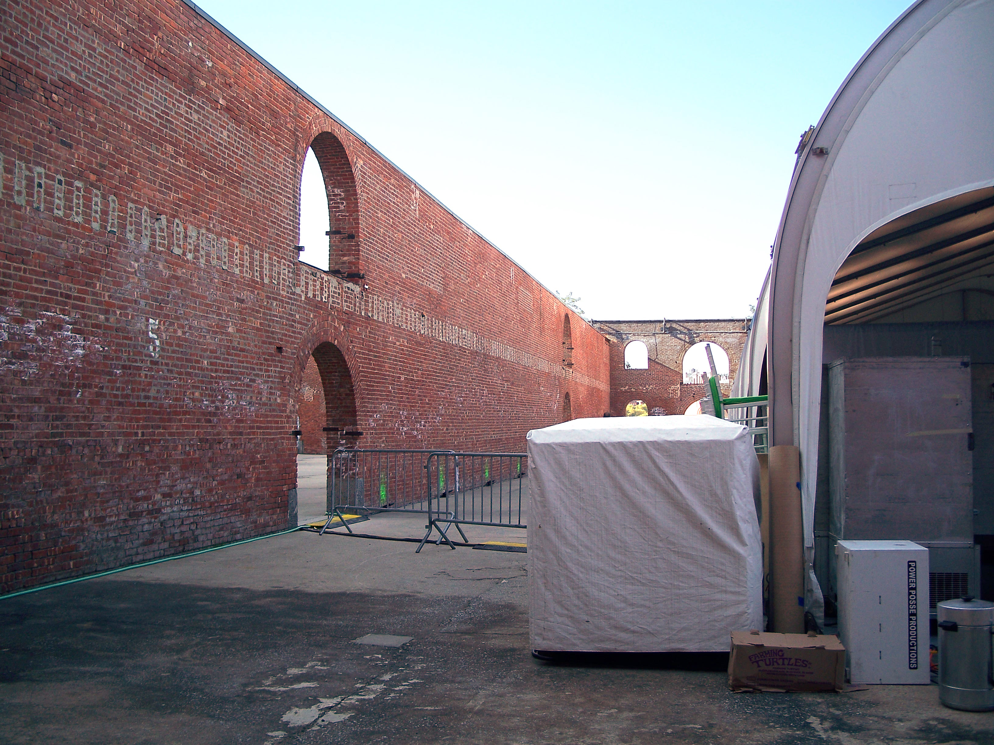 The Tobacco Warehouse was built in the 1870s for tobacco customs inspection. In 1998 the building (minus its long-decayed roof) was converted into a 18,000 square-foot rental event space and is a part of Brooklyn Bridge Park.