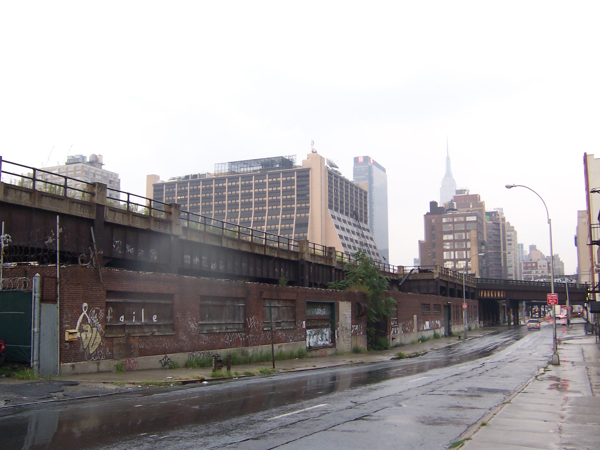 The High Line was an elevated rail line from 34th Street to Spring Street that opened in 1934. It was part of Robert Moses' West Side Improvement, a massive 13-mile-long project that eliminated 105 street/railroad crossings and almost completely rebuilt Riverside Park. The supersession of railroads by trucking for bringing freight into Manhattan slowly reduced the use of the High Line until it was abandoned in 1980.