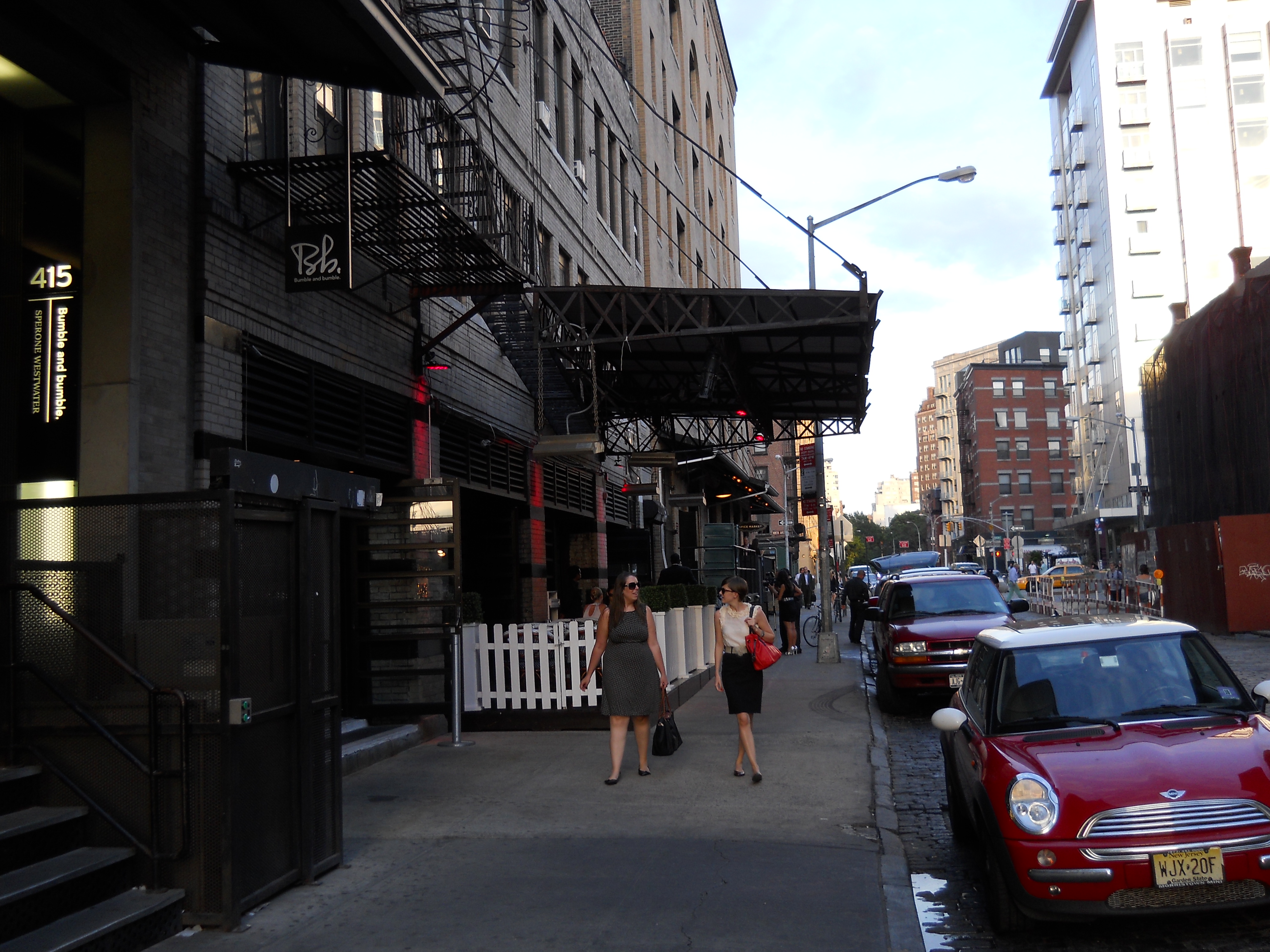 The West Side just south of 14th Street used to be home to a large collection of meat packing establishments. Although some remained to give the area an artificial industrial flavor, the meat packing district became dominated by expensive places for beautiful people to socialize.