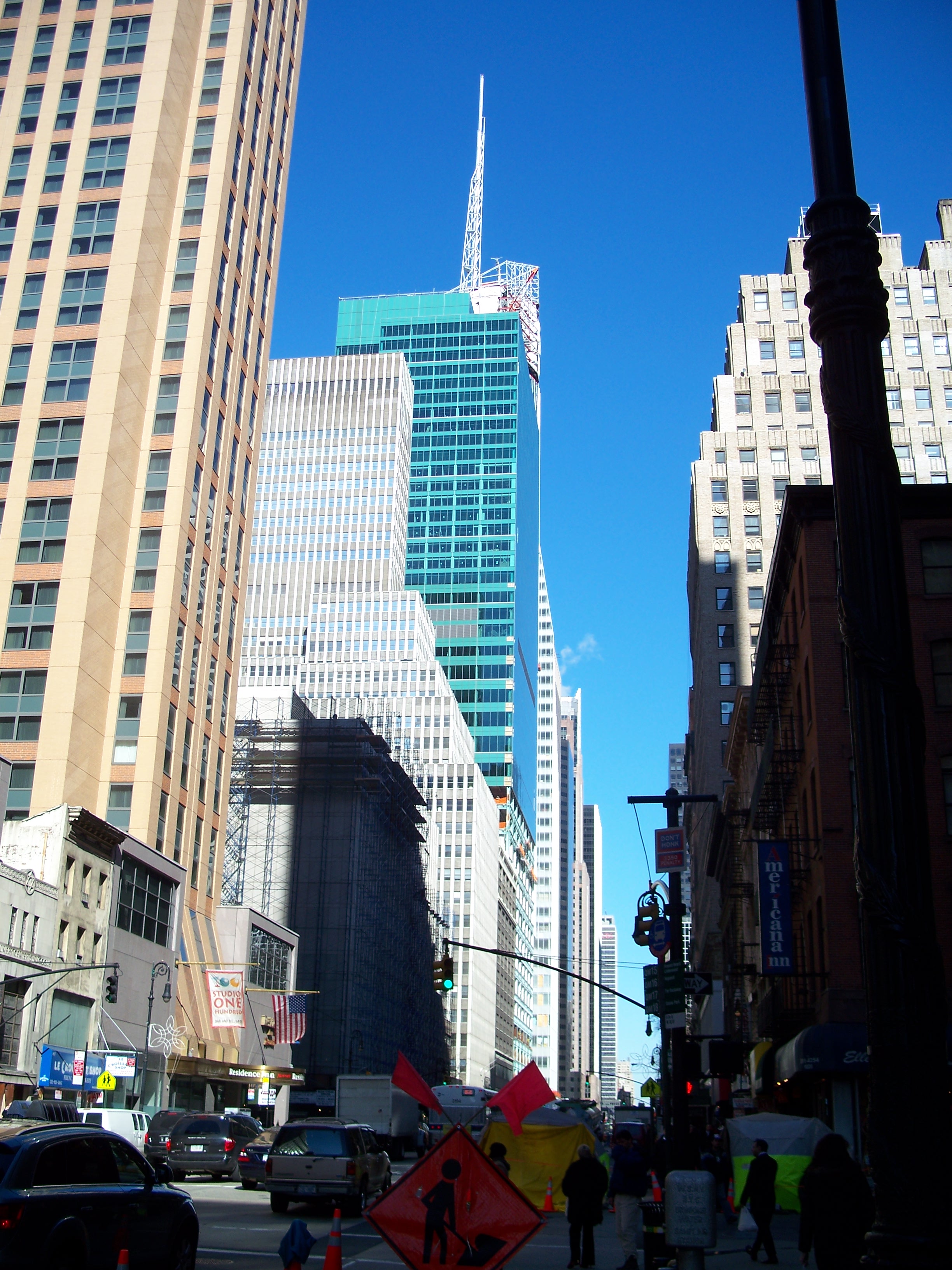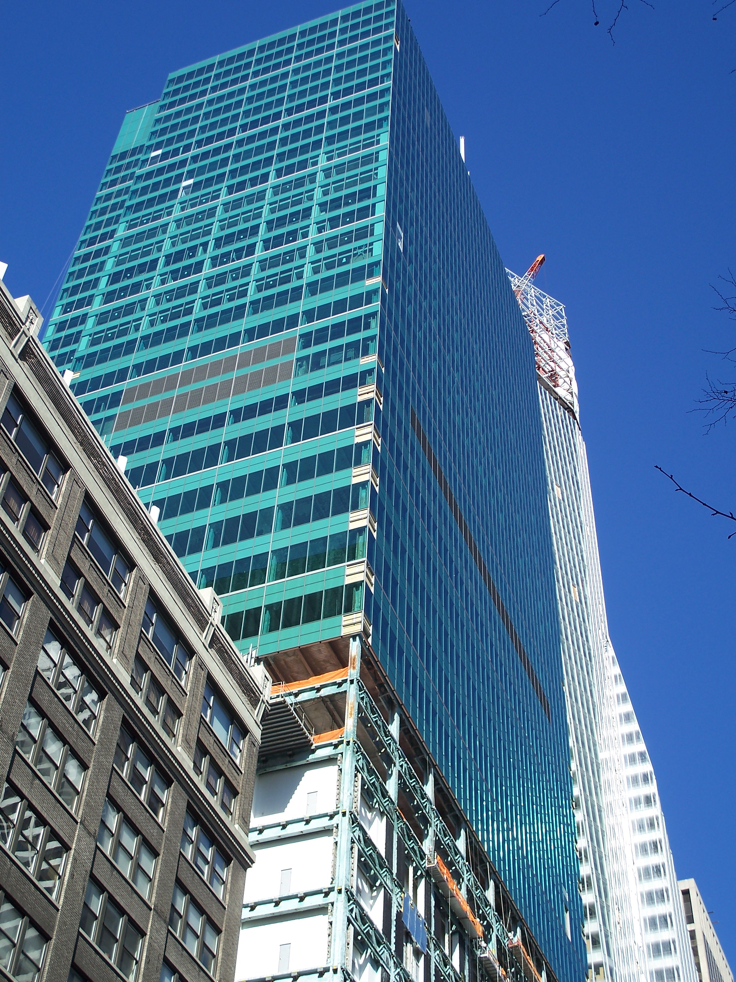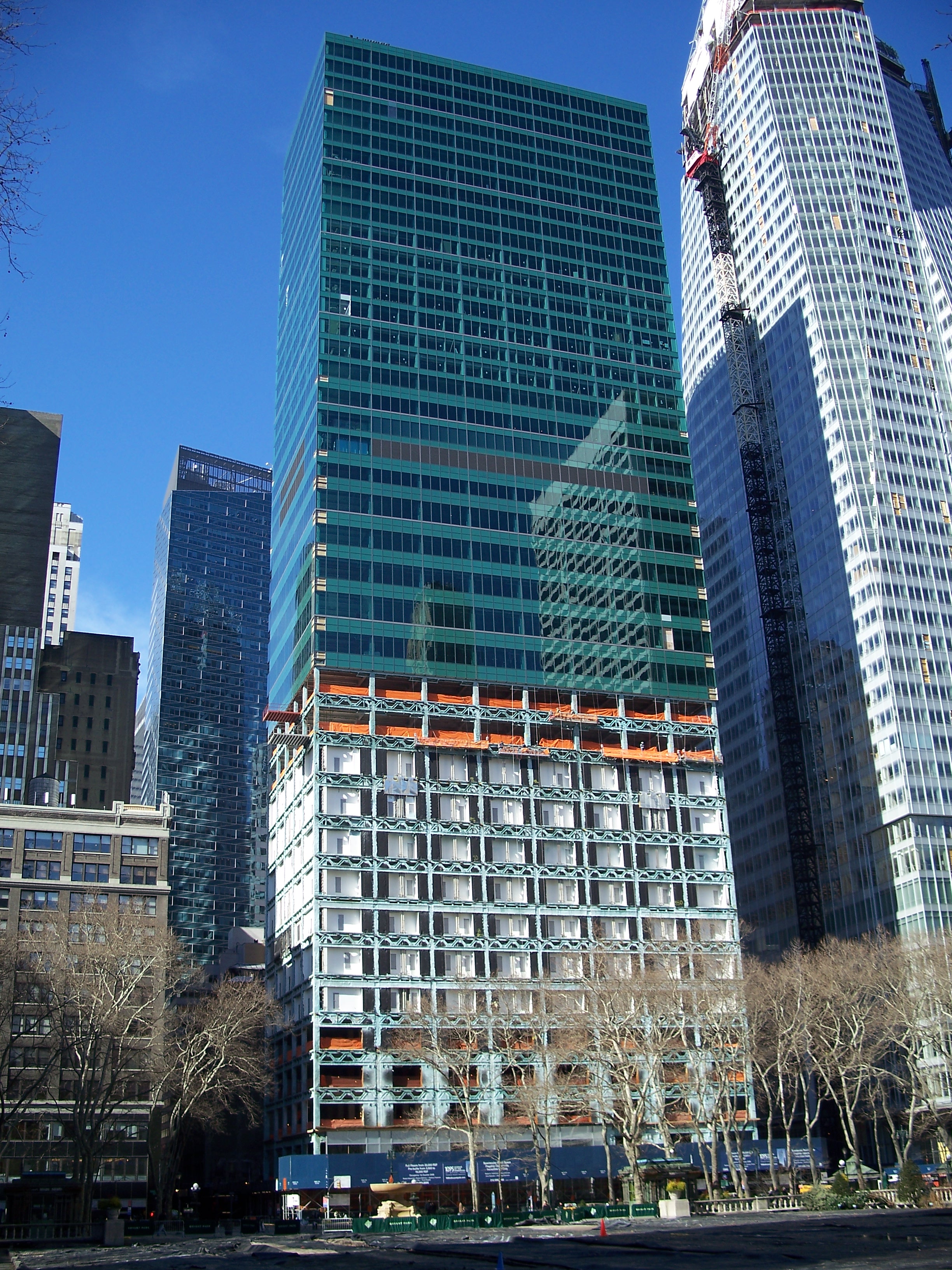In late 2006, a major renovation of the building was begun that included a complete green glass curtain wall reskinning, perhaps to compliment the new Bank of America building (One Bryant Park) on the opposite side of 42nd Street (BryantPark.org)