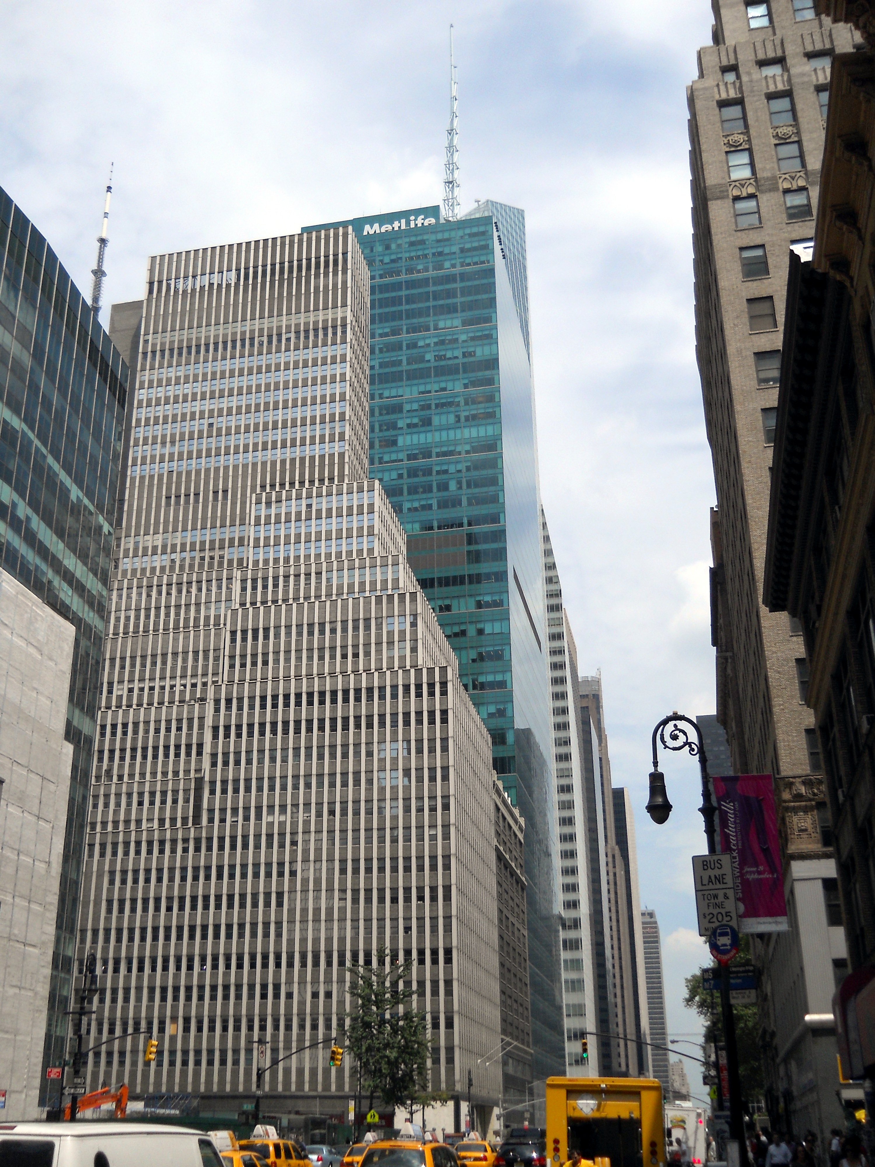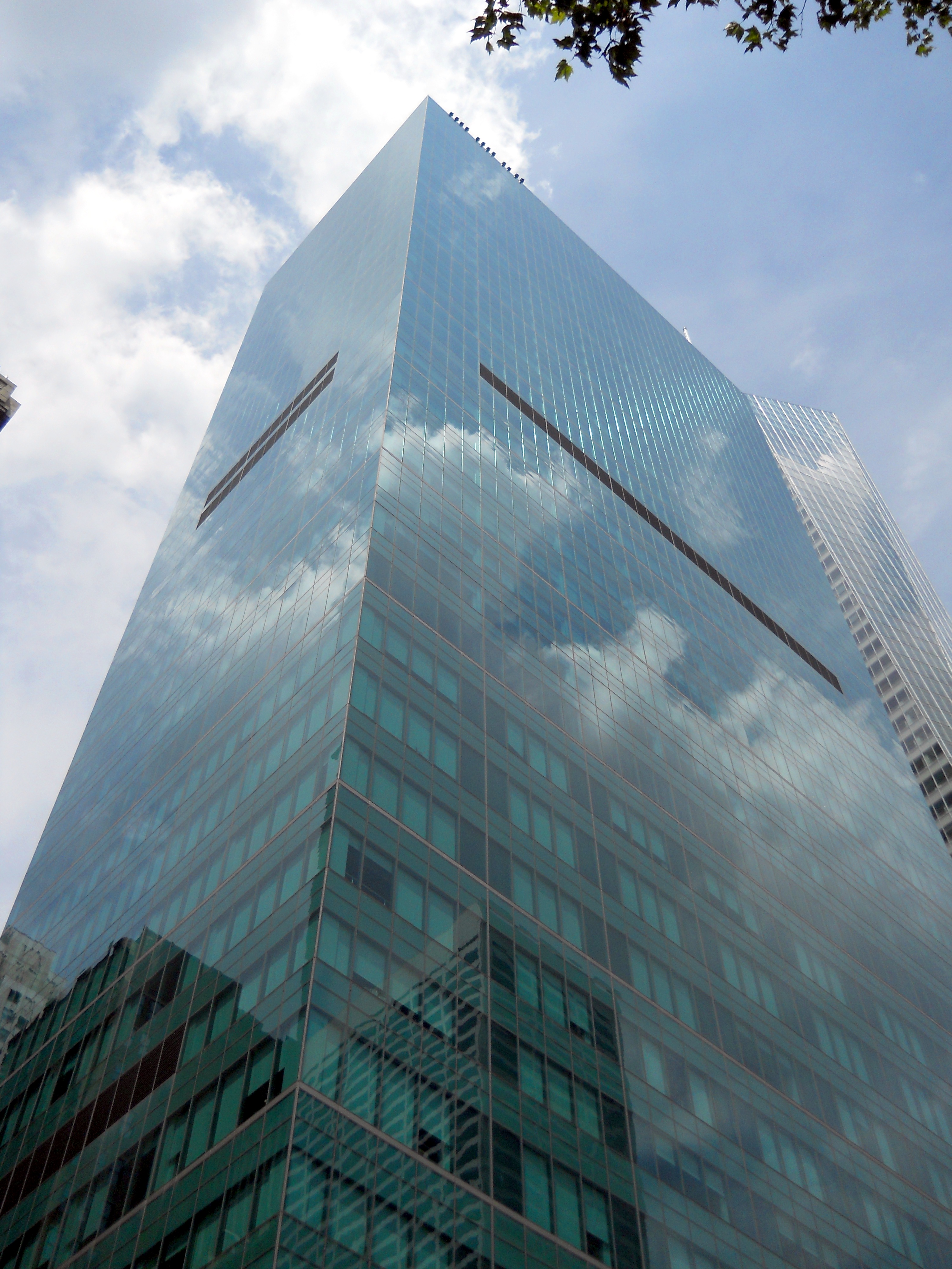 This building between 41st and 42nd streets just to the west of Bryant Park was built in 1974 as the New York Telephone Building on a design by architects Kahn & Jacobs. The International Style building featured with white marble "stripes" that echoed the vertically striped treatment of the rear of the New York Public Library on the other side of Bryant Park.