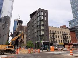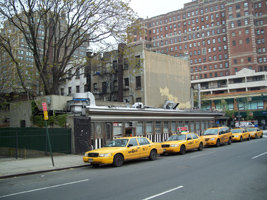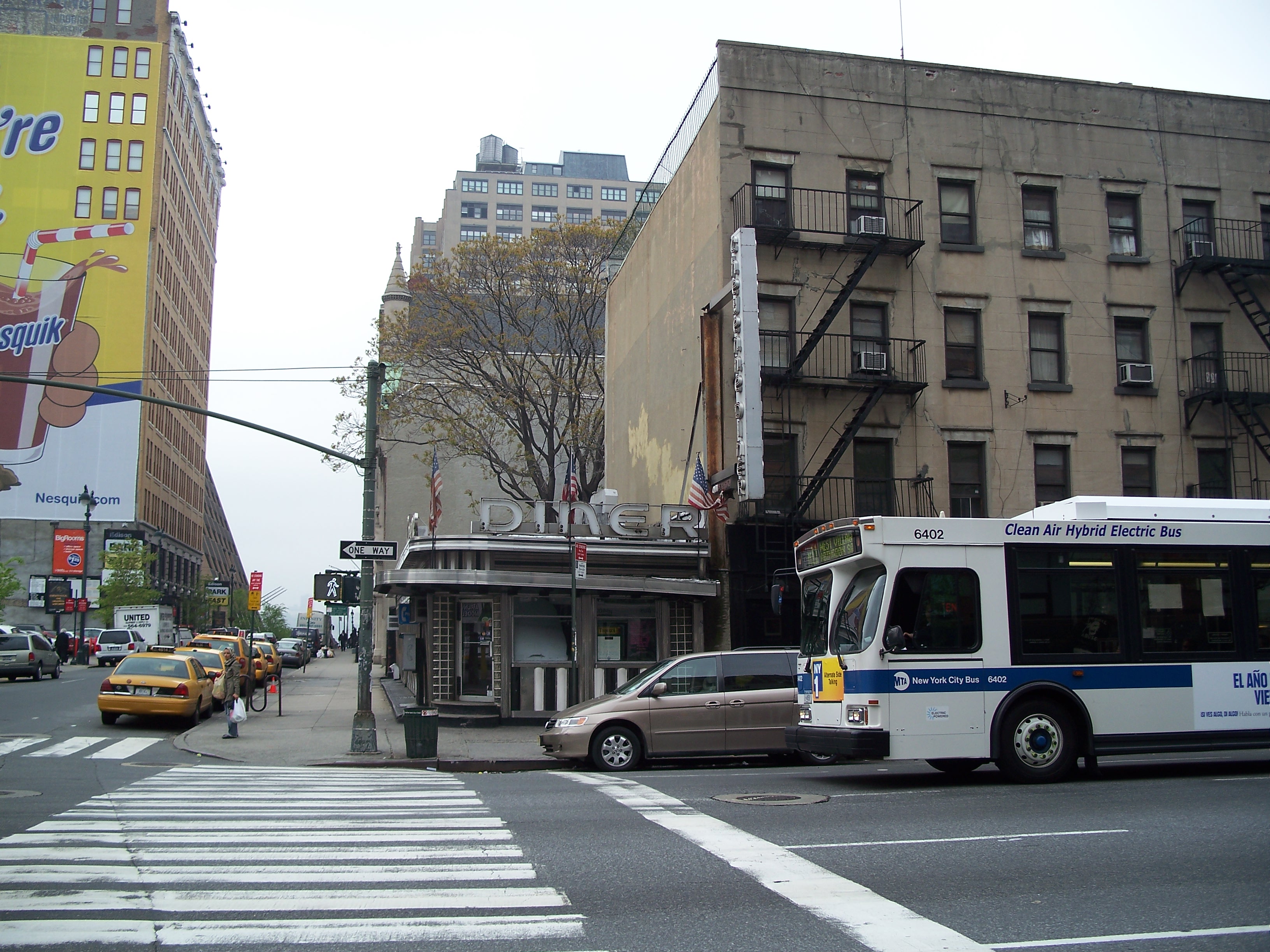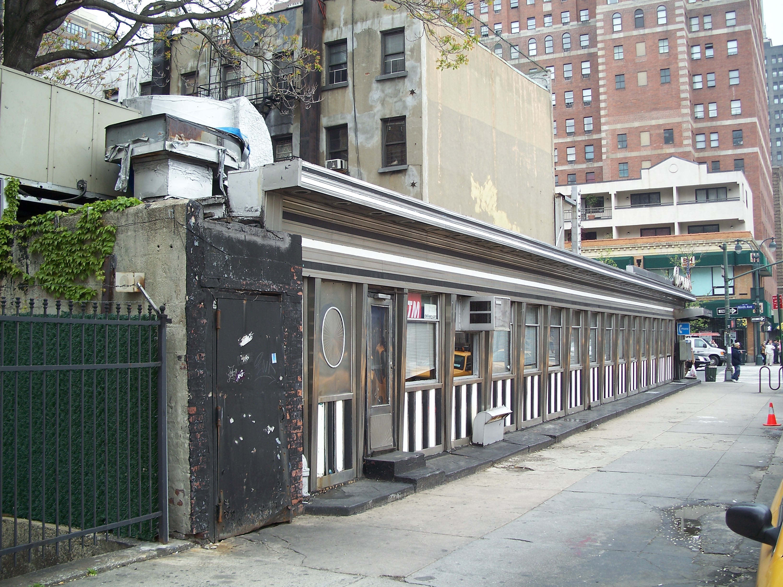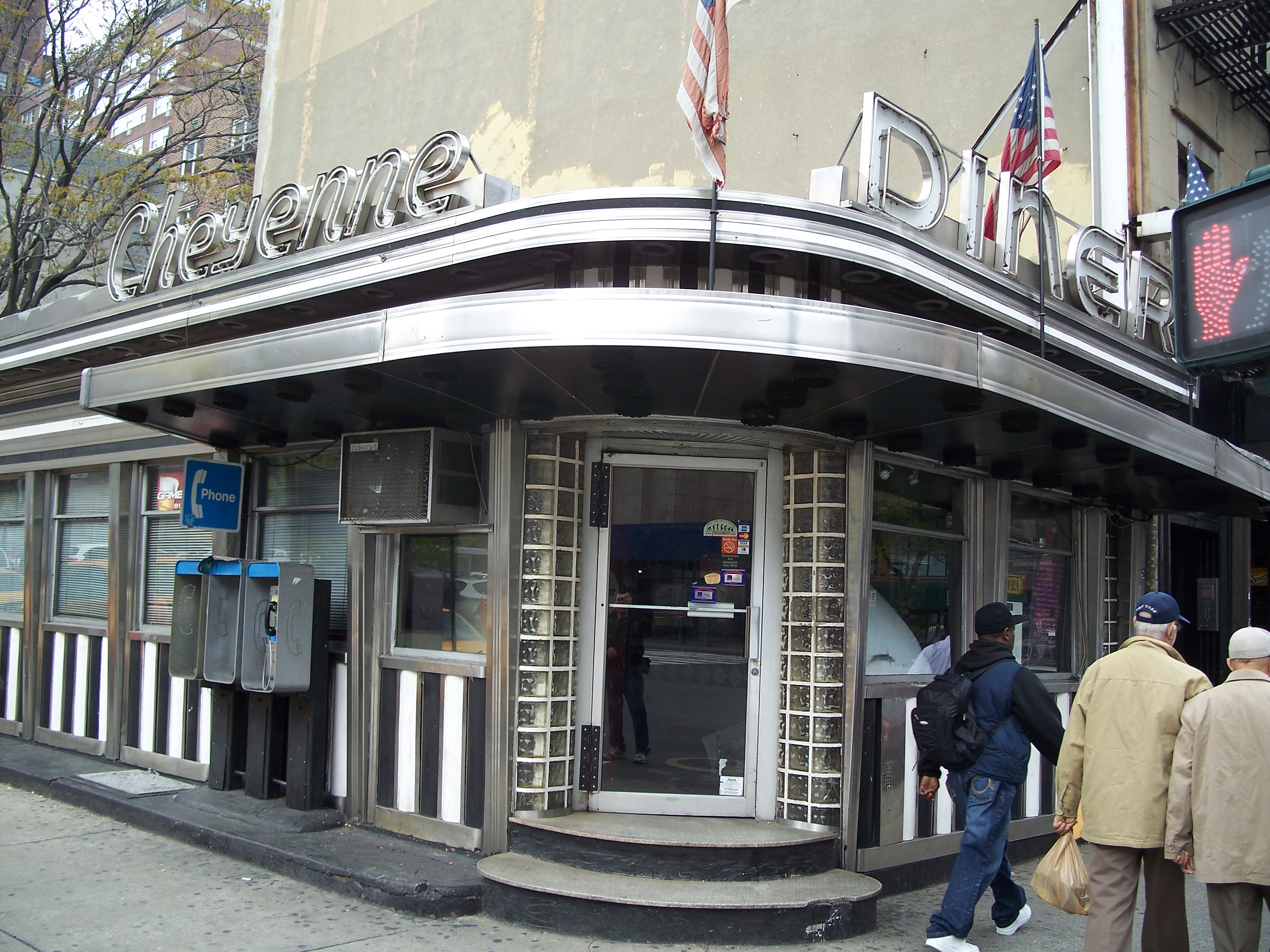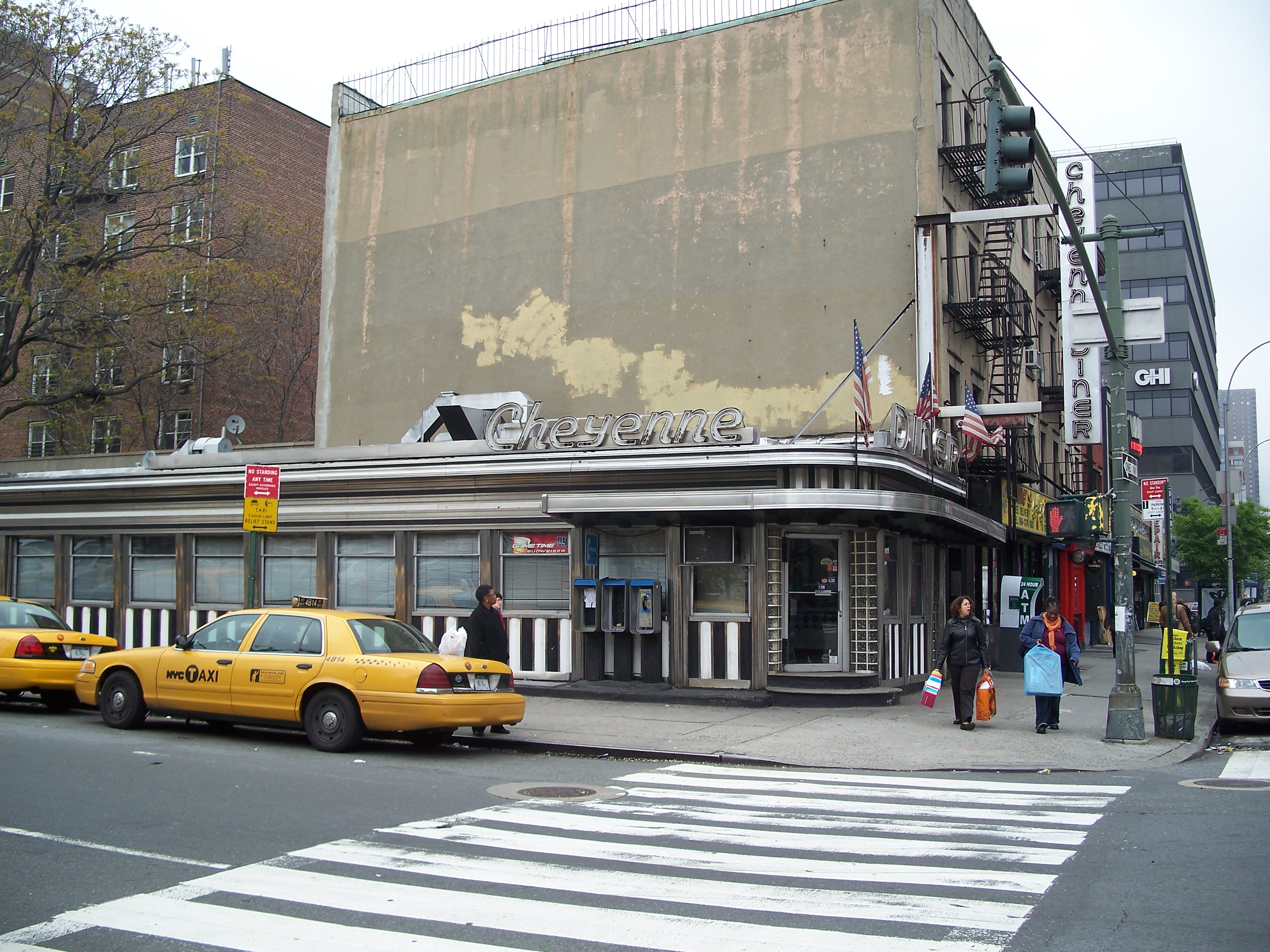 The Cheyenne Diner was a modular building constructed by the Paramount company (Oakland, NJ) and assembled on this corner around 1940. It was originally named the Market Diner and renamed the Cheyenne Diner in 1986. It was closed in April of 2008 and replaced with a nine-story residential/commercial building.
