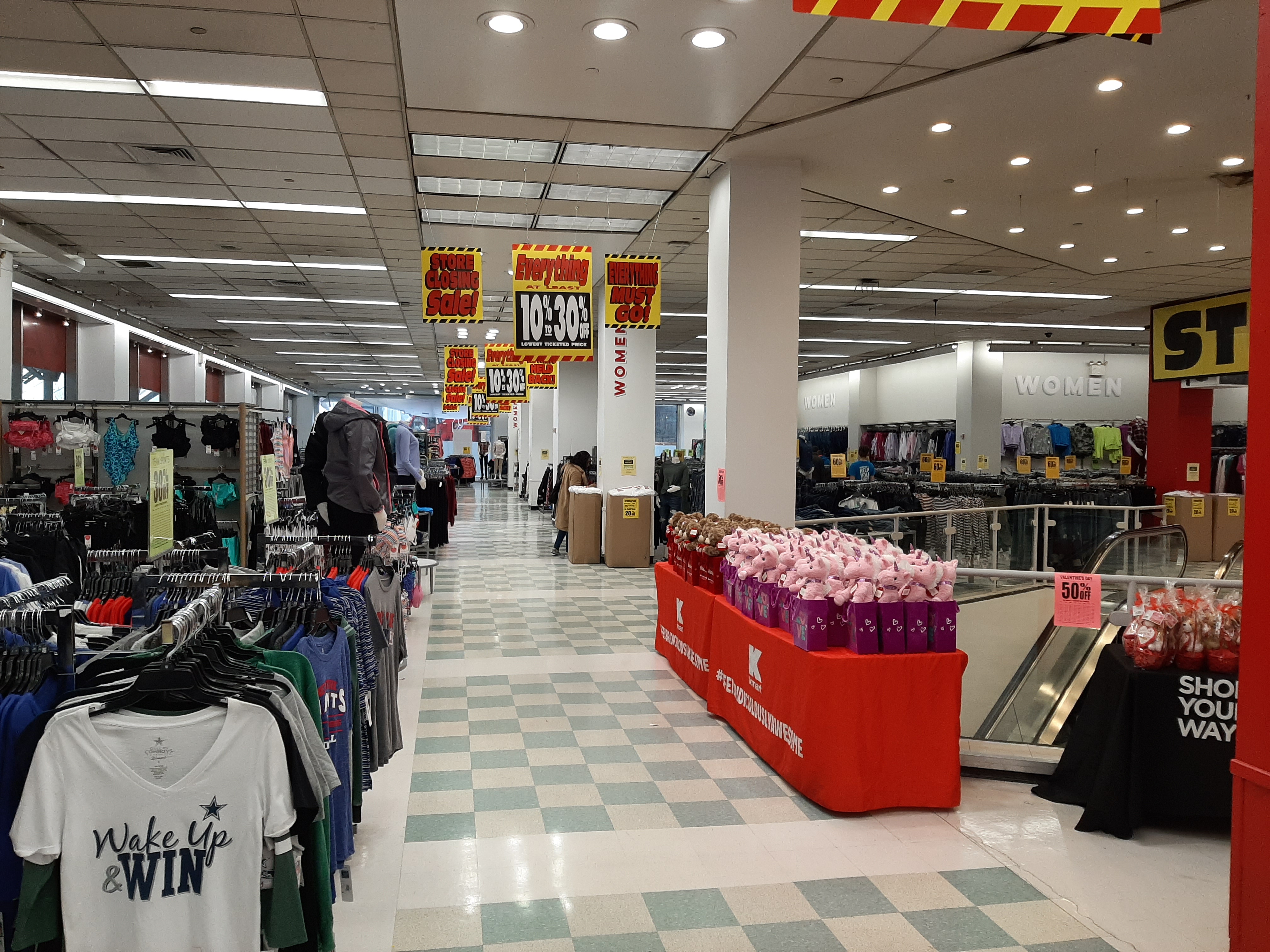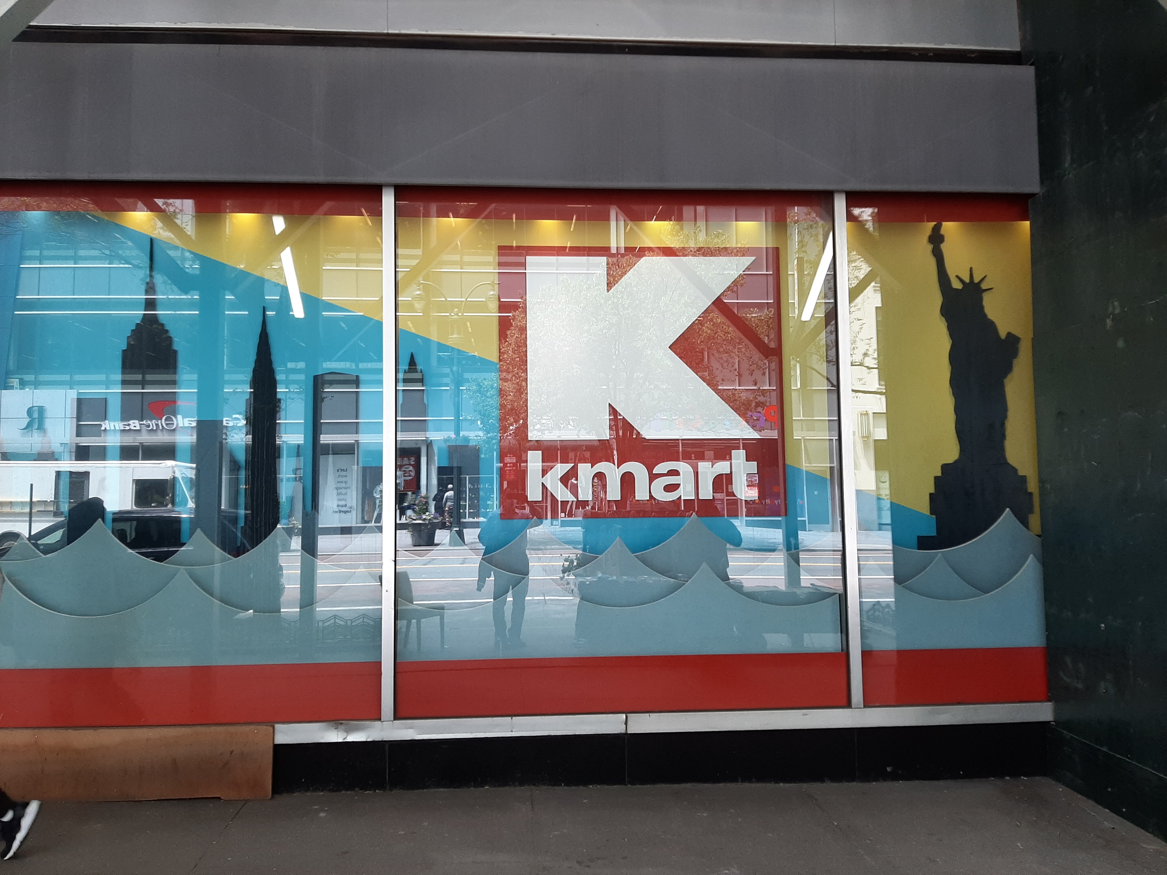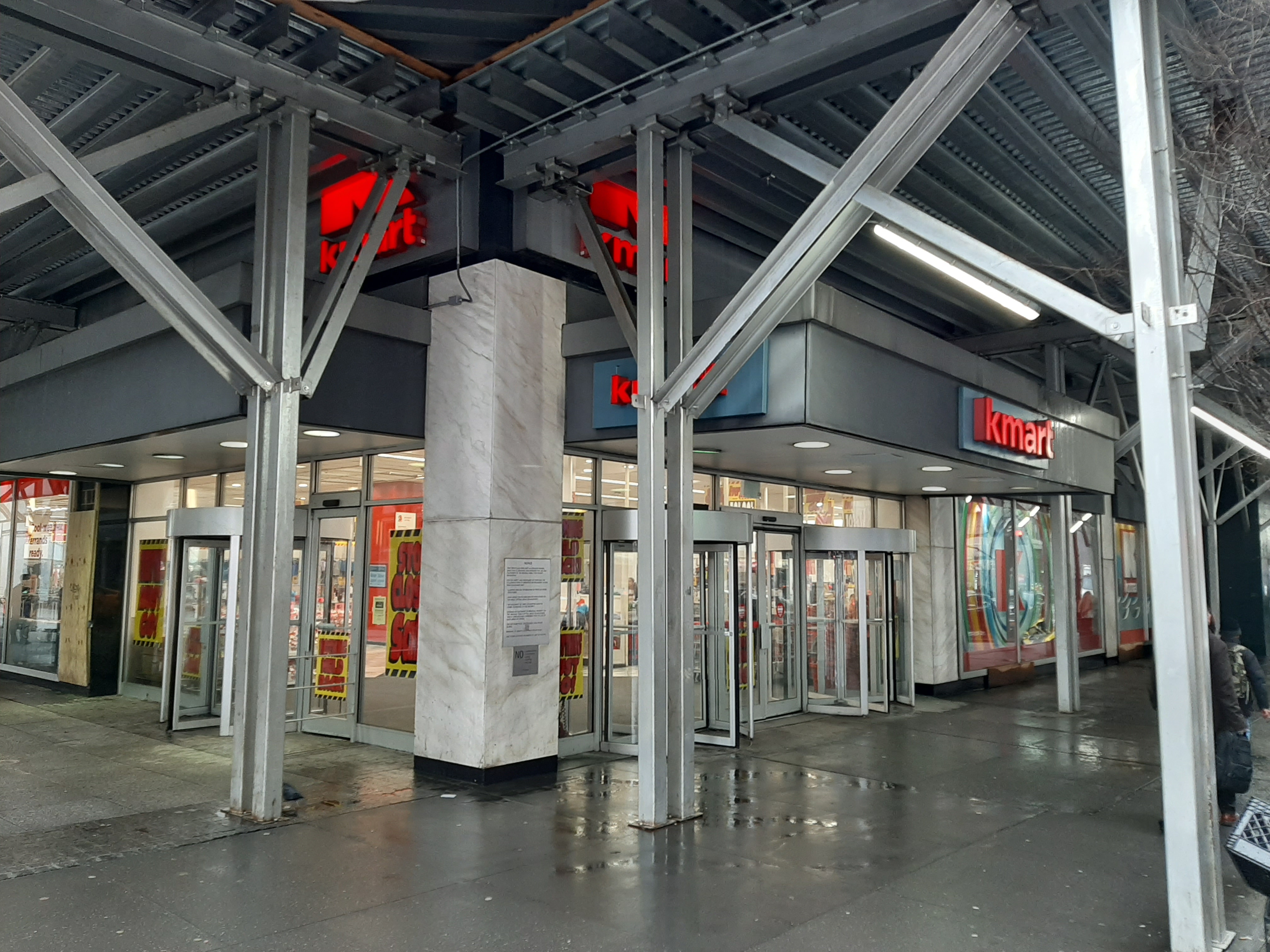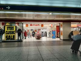 Big box retailer Kmart had a 141,000 square foot store in Penn Station that opened on 3 October 1996 just after the peak of Kmart's profitibility and sales. The company subsequently struggled to compete in the big box marketplace and suffered through years of declining sales, failed rebrandings and mergers, and a bankruptcy. The Penn Station store closed in March of 2020, coincidentally at the start of the COVID-19 pandemic.