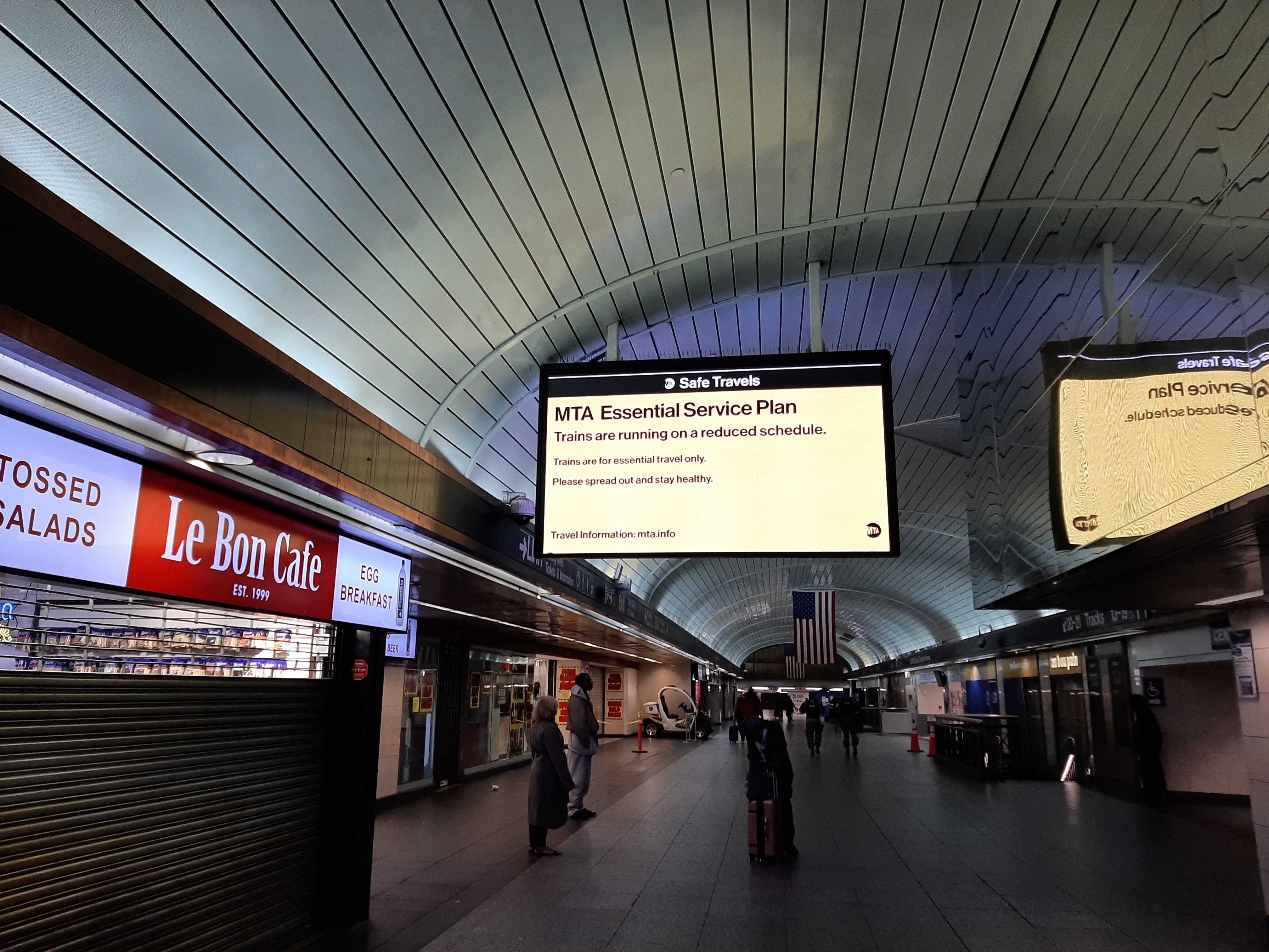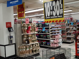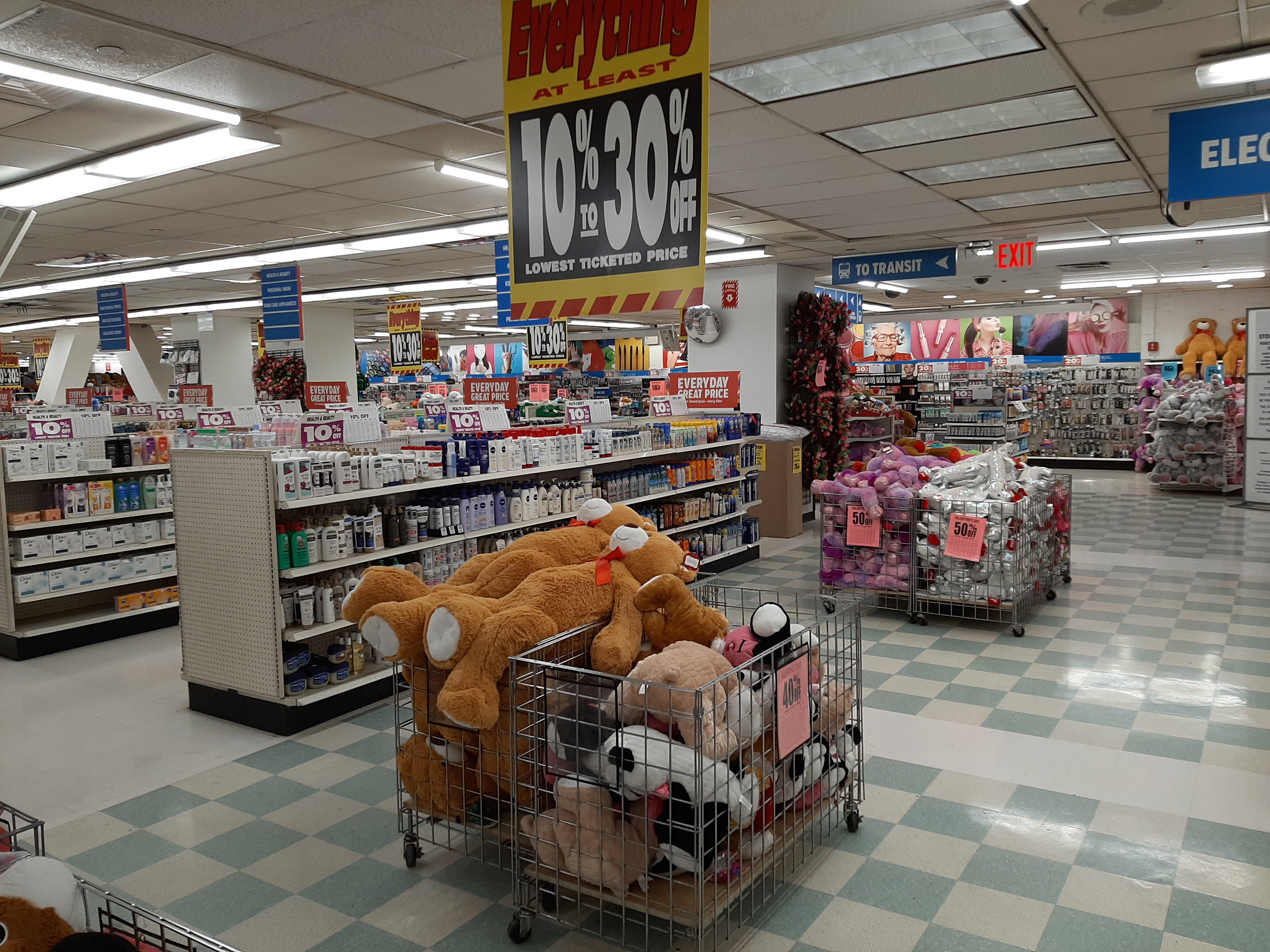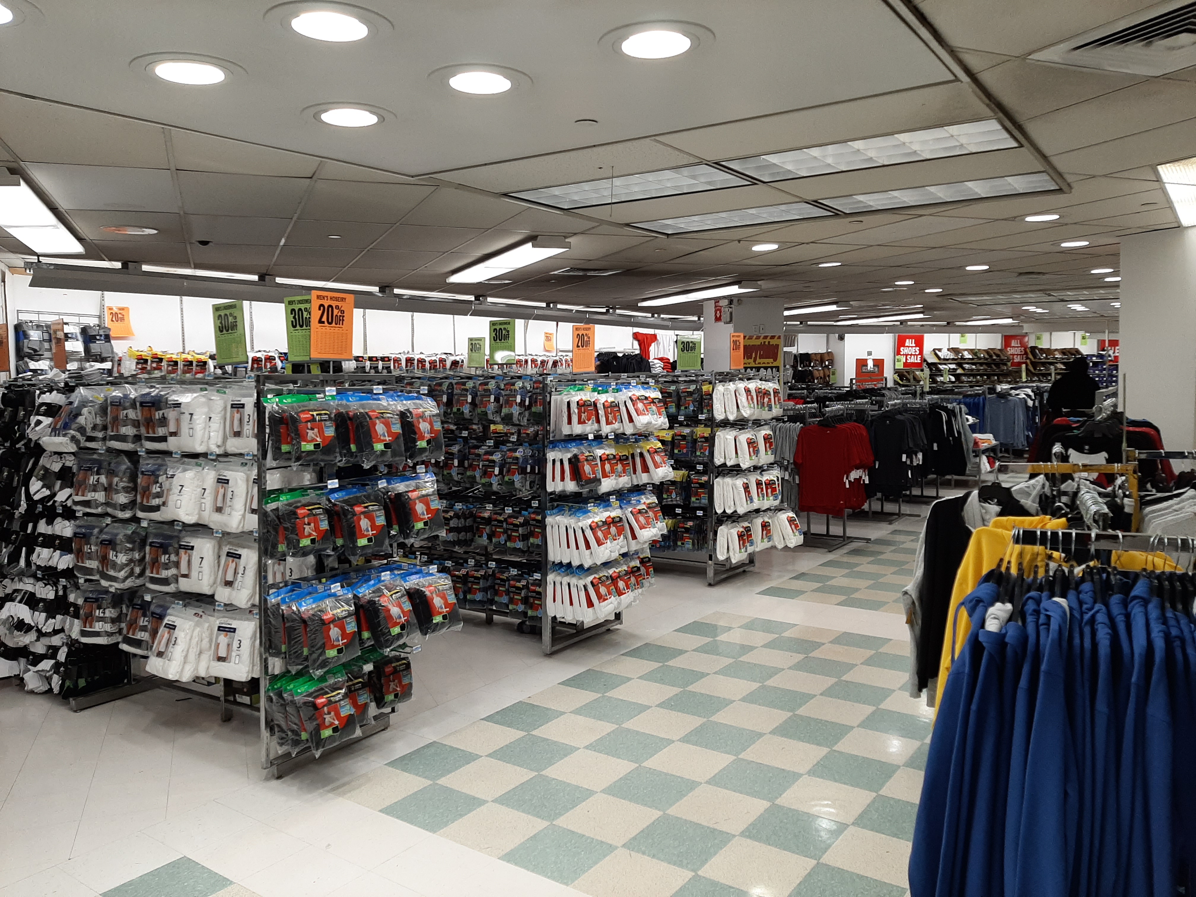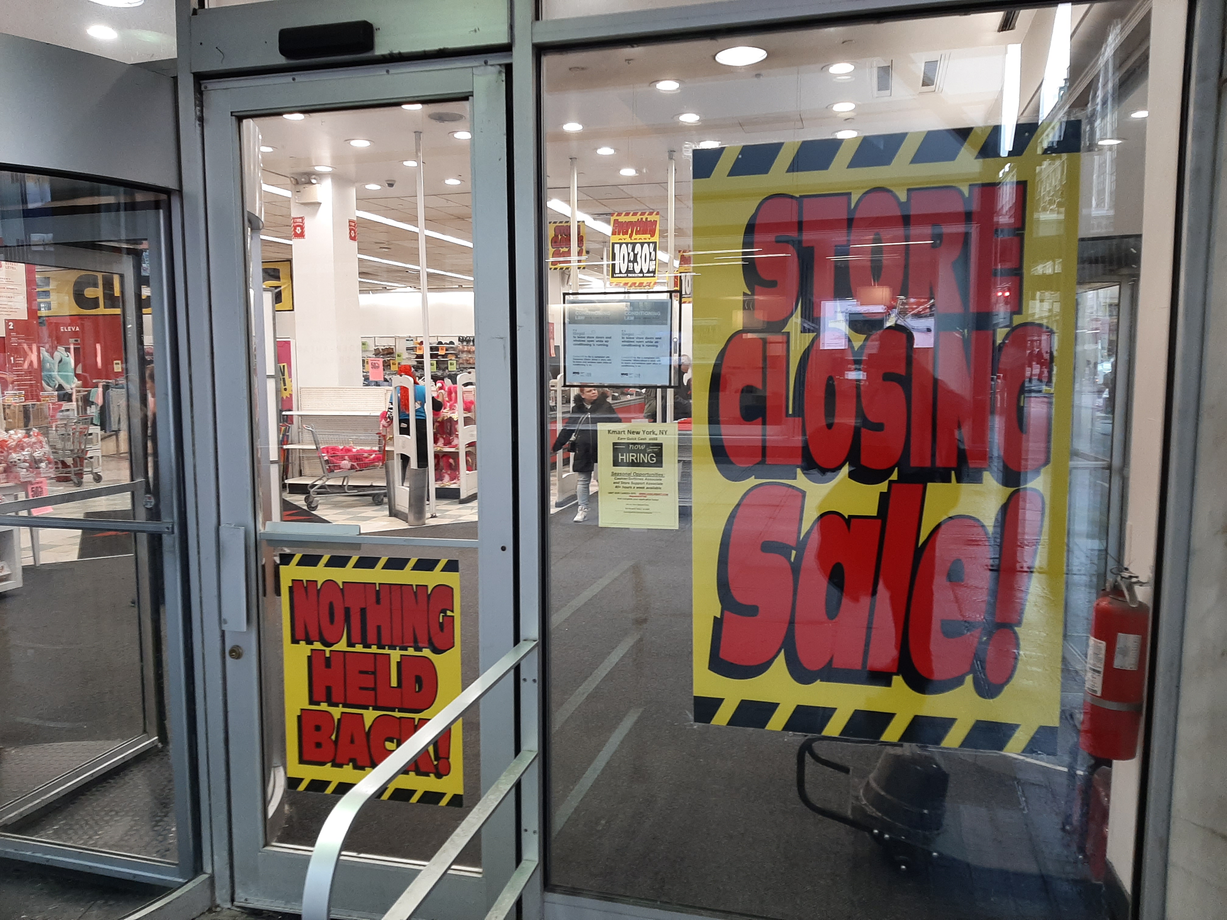 Big box retailer Kmart had a 141,000 square foot store in Penn Station that opened on 3 October 1996 just after the peak of Kmart's profitibility and sales. The company subsequently struggled to compete in the big box marketplace and suffered through years of declining sales, failed rebrandings and mergers, and a bankruptcy. The Penn Station store closed in March of 2020, coincidentally at the start of the COVID-19 pandemic.