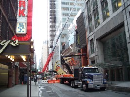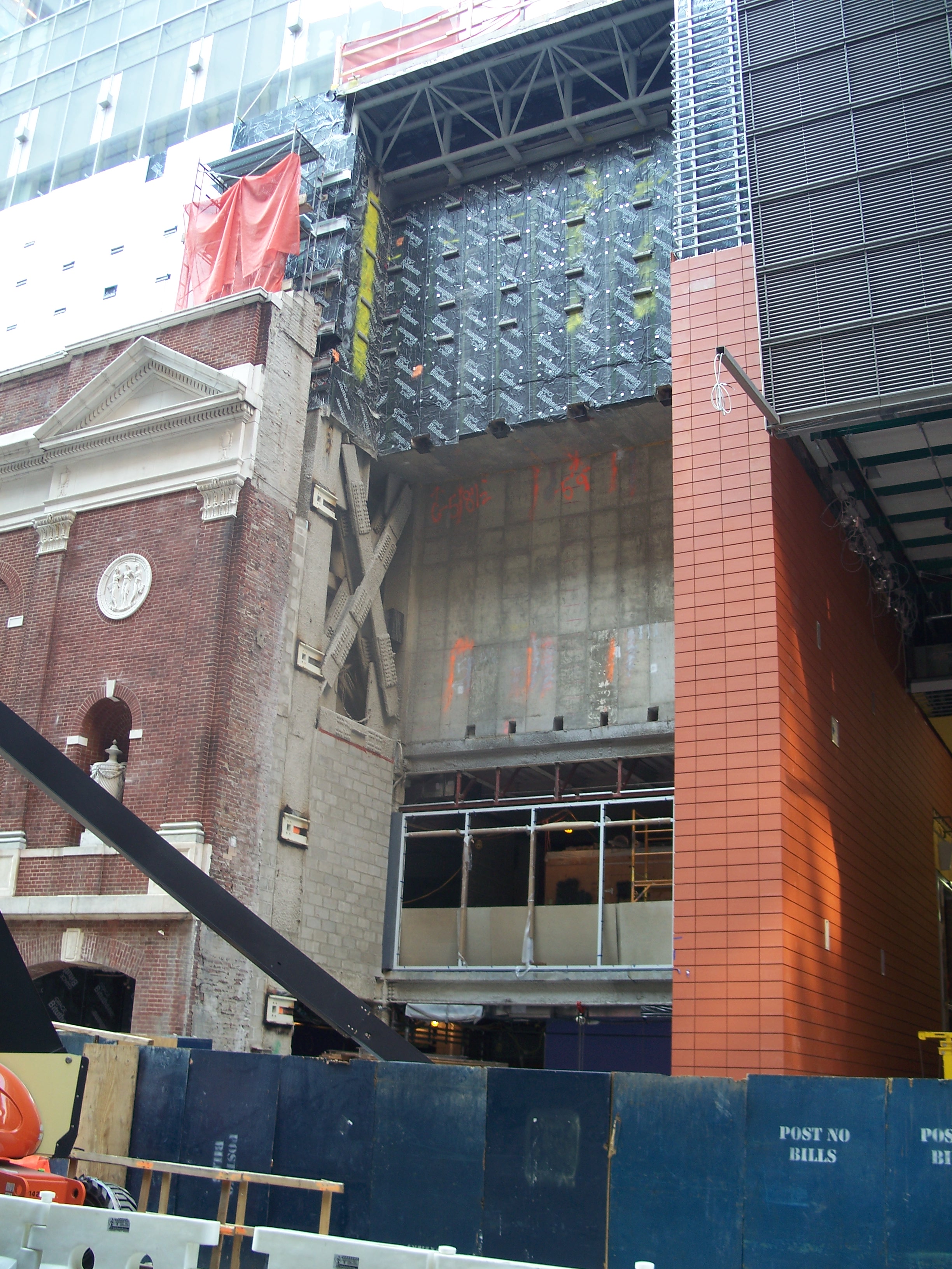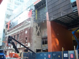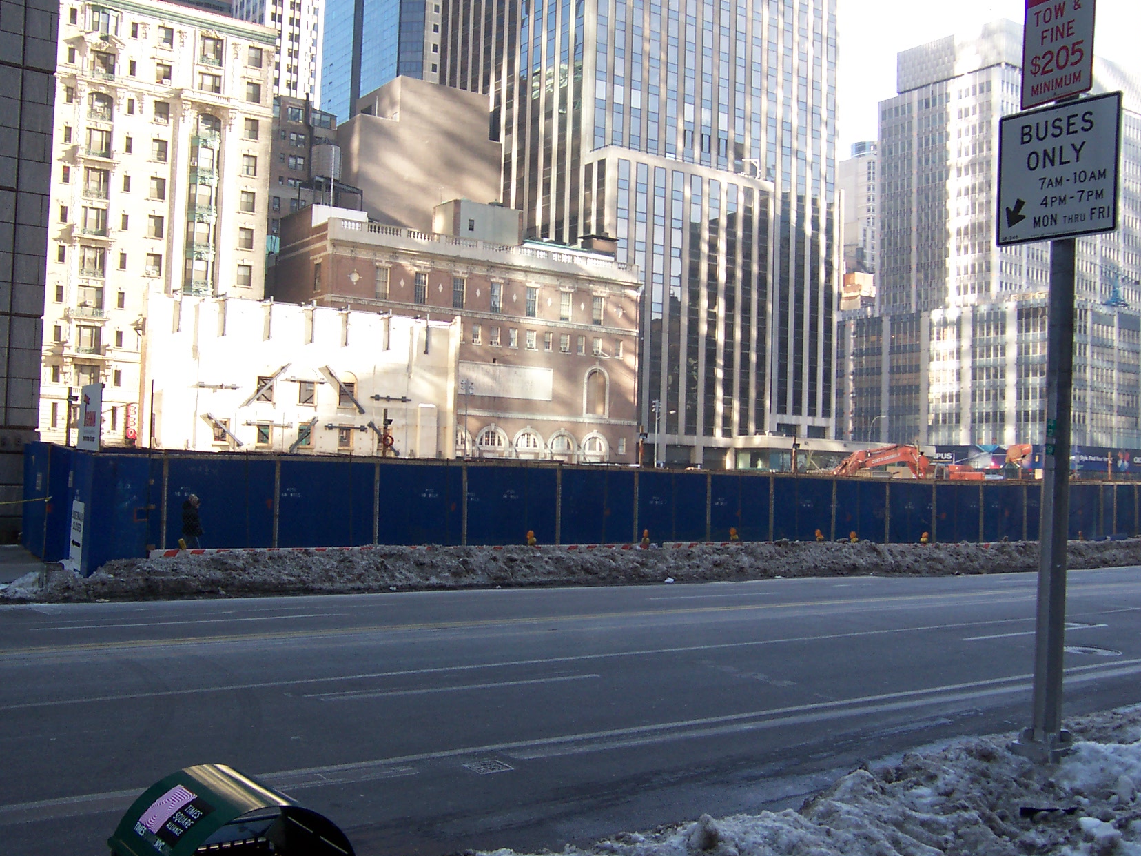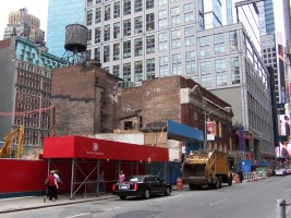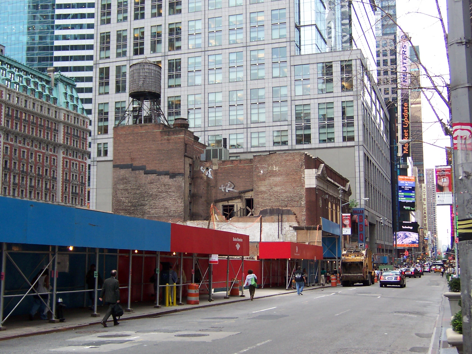 The location of the building was originally occupied by a nondescript collection of mostly low-rise buildings, although block included a narrow 22-floor tower, the Remington Building. The intimate, tiered Henry Miller's Theatre (built in 1918) on 43rd Street was also demolished, although the facade and some lobby fixtures were preserved for incorporation into a larger 1,000-seat theatre that will be included in the new building.