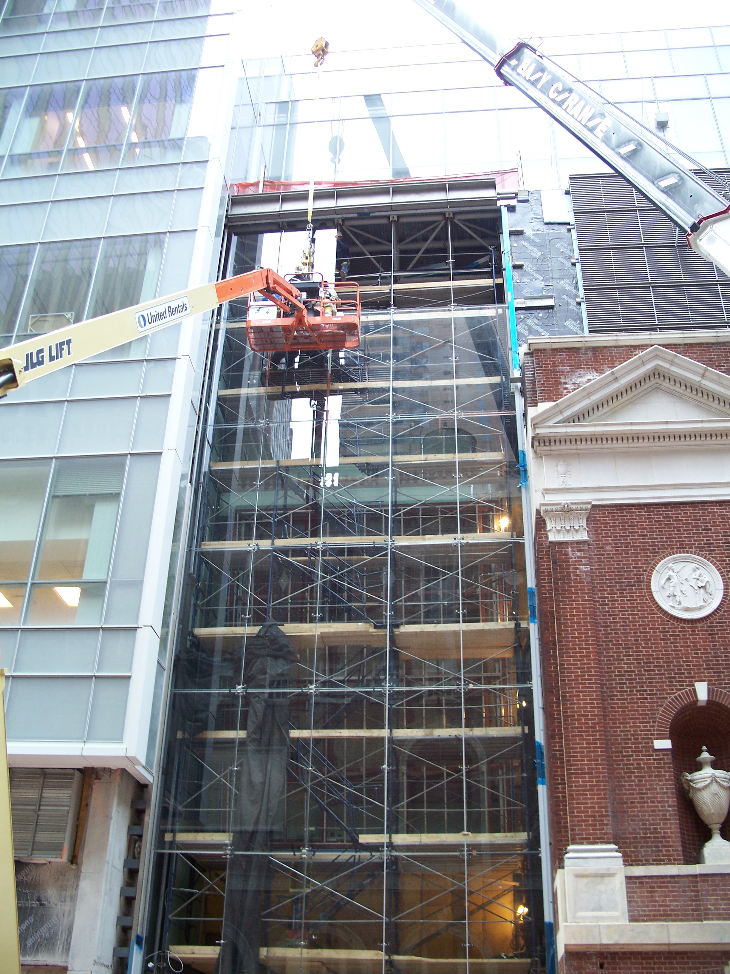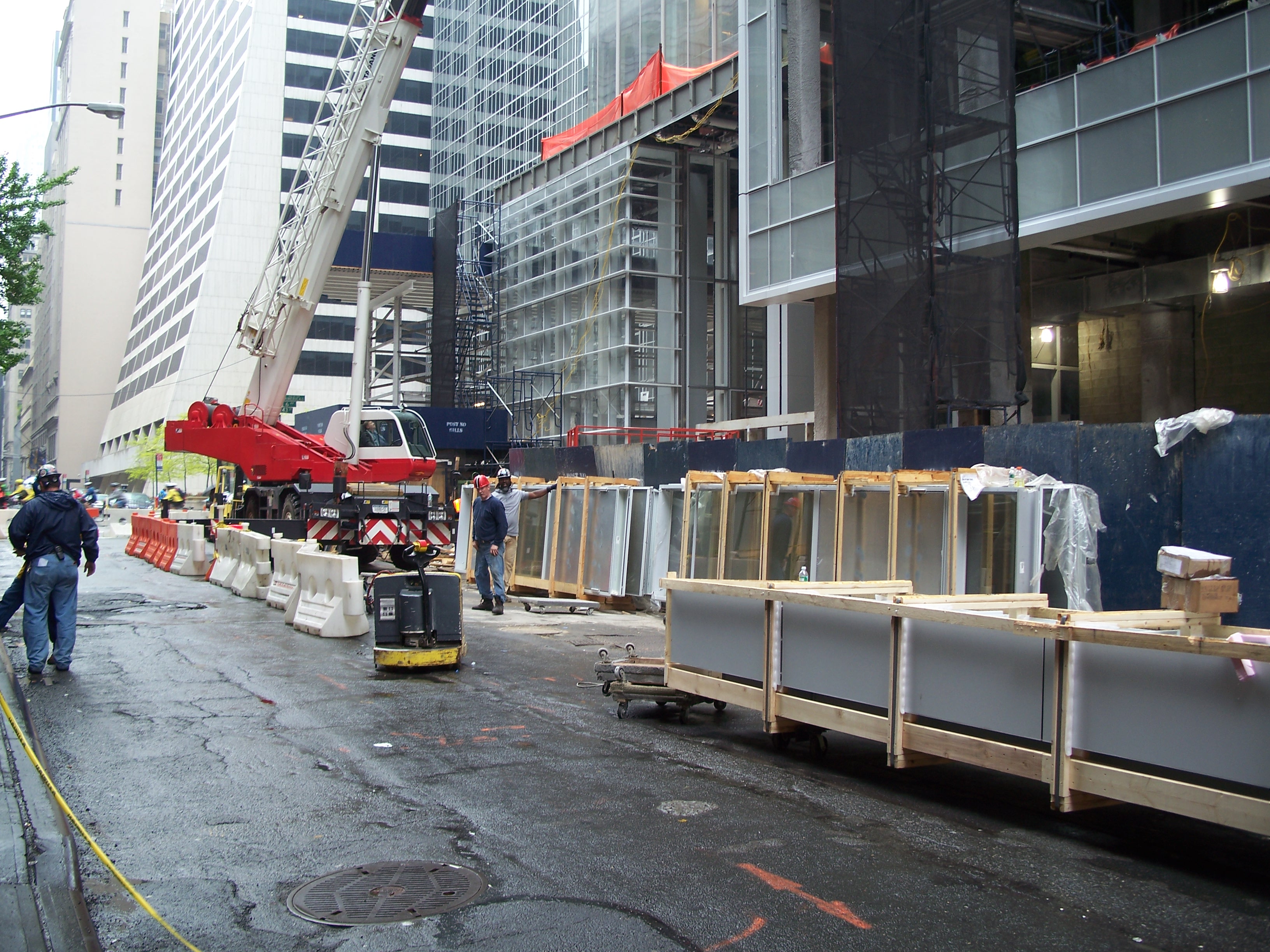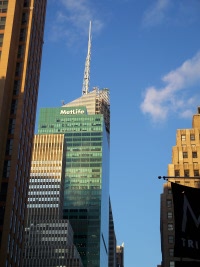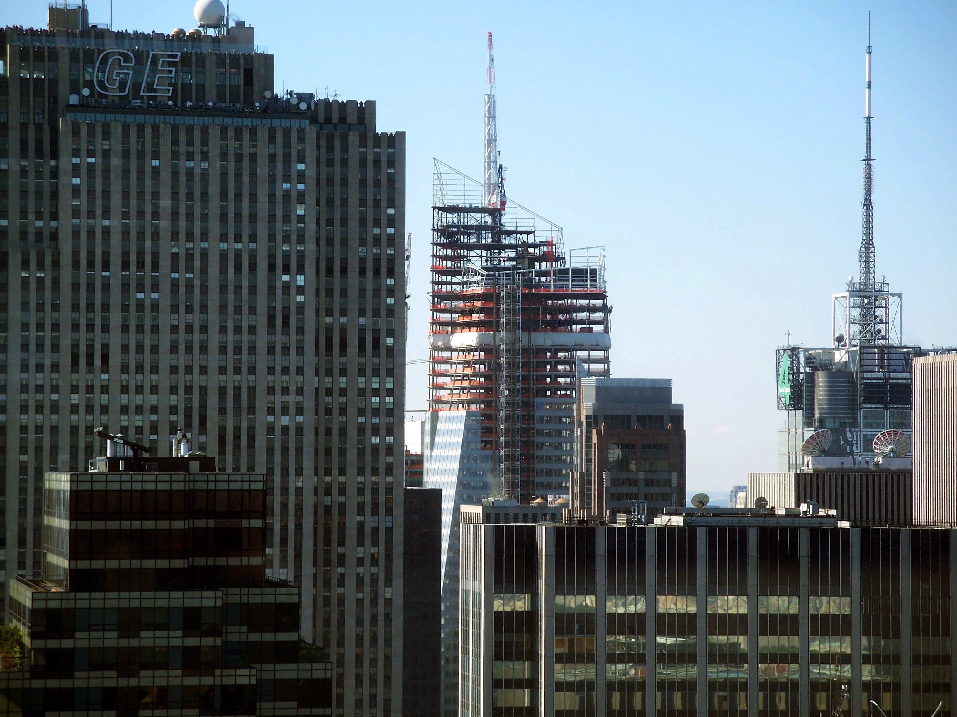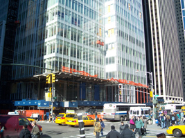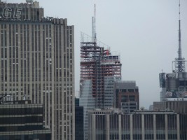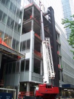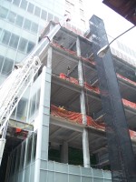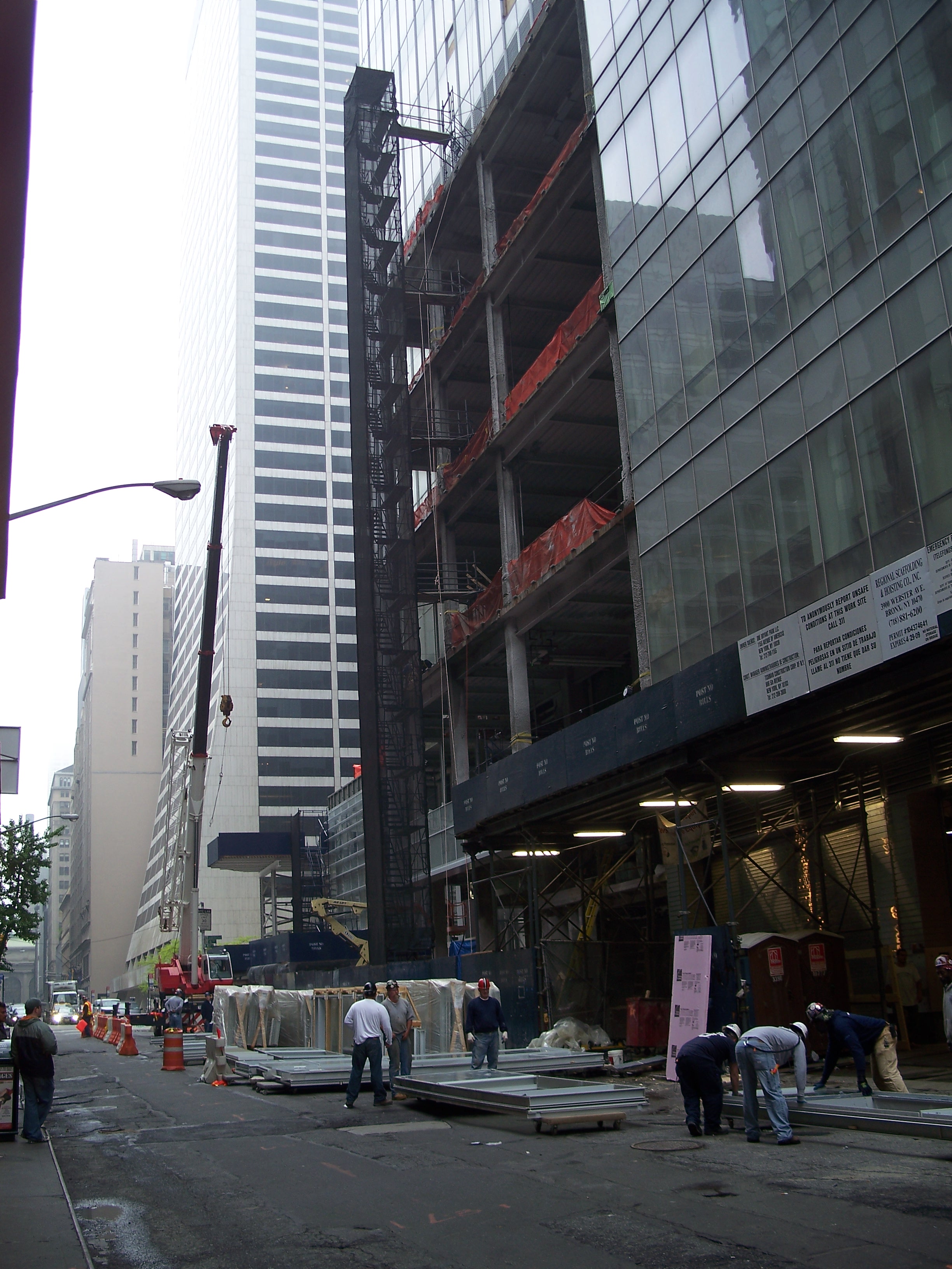 The Bank of America Tower at One Bryant Park was designed by Cook+Fox Architects and is scheduled for completion in 2009. The 54-story building has around 2.1 million square feet of office space and stands 1,200 feet tall at its architectural spire, making it, arguably, the second tallest building in New York City. (BofA press release)