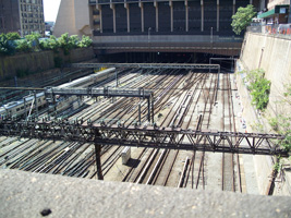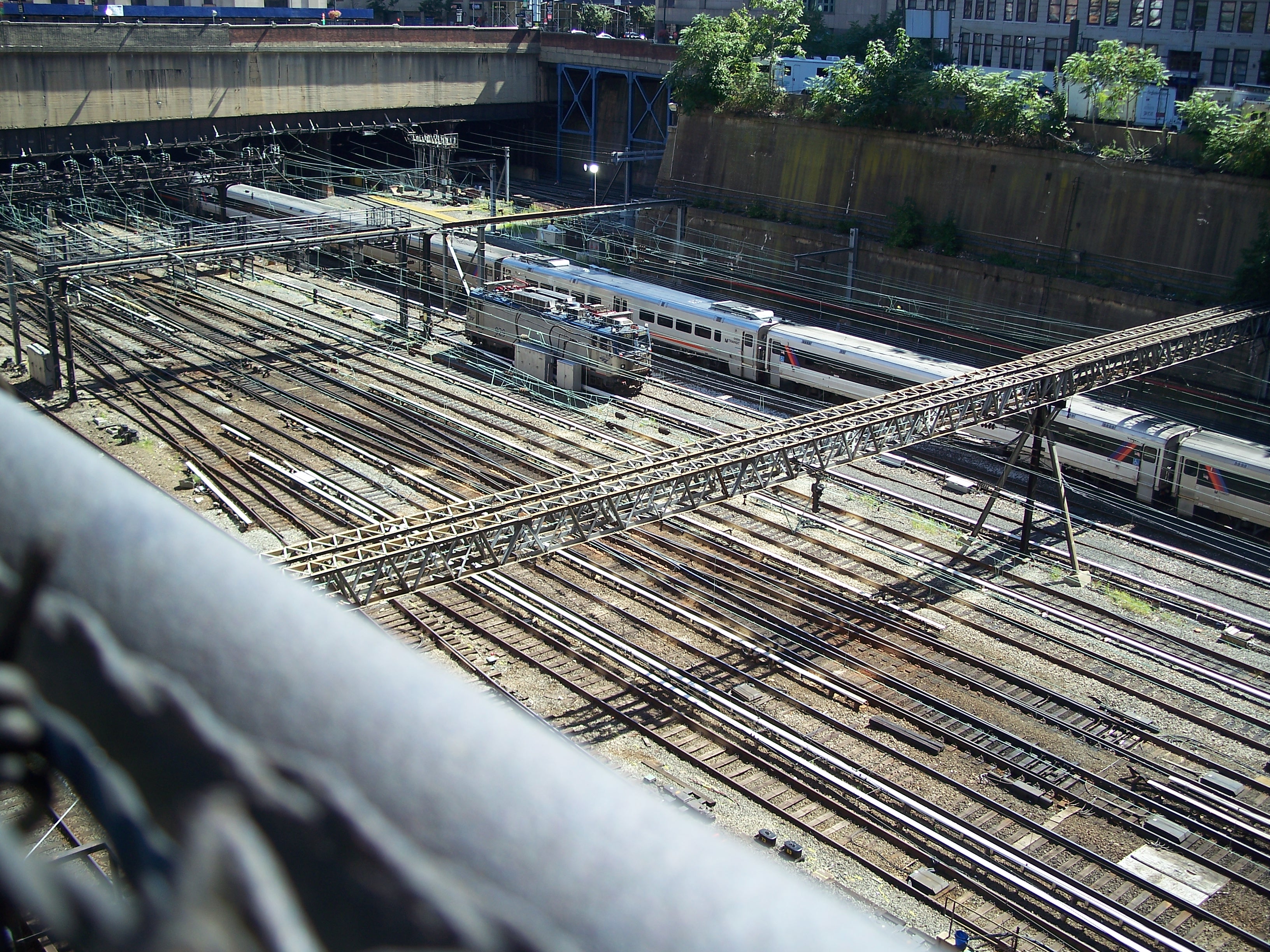 As the rail tracks head toward the Hudson River tunnels, they pass through under buildings and through an open air yard between 9th and 10th Avenues.