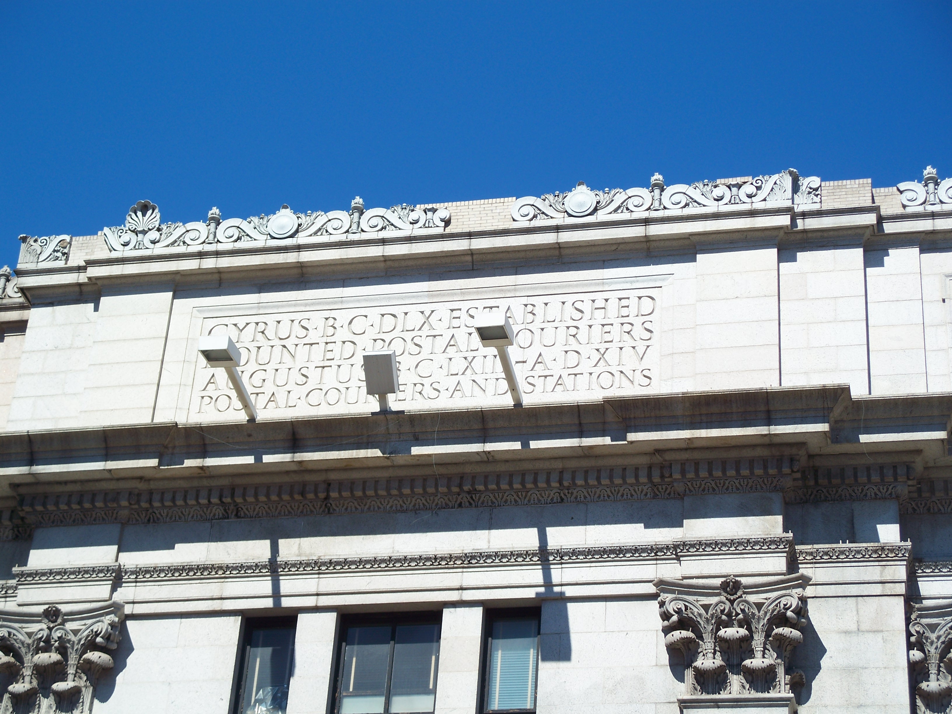 Engraved sign on the south side of the post office