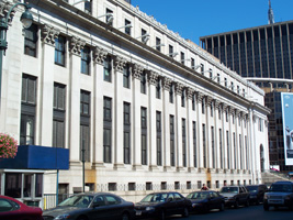 The James A. Farley Post Office, which sits just west of Penn Station across Eighth Avenue, was designed by the same architects as the old Penn Station and built around the same time. Since the tracks run directly under the building, the building presents the prospect of at least partially undoing the mistake of history and building a new Penn Station in the old building. Former NY Senator Daniel Patrick Moynihan was a champion of the idea, although, as of this writing, the project is stalled due to a lack of funding and real estate developers trying to find a way to add to their fortunes with this public project.