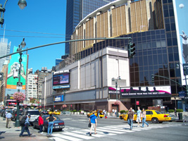 Madison Square Garden is three lies in one. It's round, it's ten blocks north of Madison Square and you don't want to eat anything that grows there. This is actually the fourth Madison Square Garden. The first Madison Square Garden was an open air arena built in 1879 at 26th Street and Madison Avenue on the site of the old New York and Harlem Railroad passenger depot (which was replaced by Grand Central Terminal). The second Garden was a Moorish building designed by Stanford White built in 1890 on the same site. The second Garden was demolished in 1924 for the construction of the New York Life Insurance Building. The third Garden was built in 1925 at 50th Street and Eighth Avenue on the site of the city's former streetcar barns. The third Garden was architecturally unremarkable and the building was notable primarily as a venue for hockey and boxing. The third Garden was demolished in 1976 and replaced in 1984 by Worldwide Plaza. The fourth Garden (pictured here) opened in 1968.