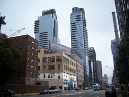 This building was built as a garage. The rezoning of the block led to its demolition for a 31-story 190-unit residential building that included a middle school.