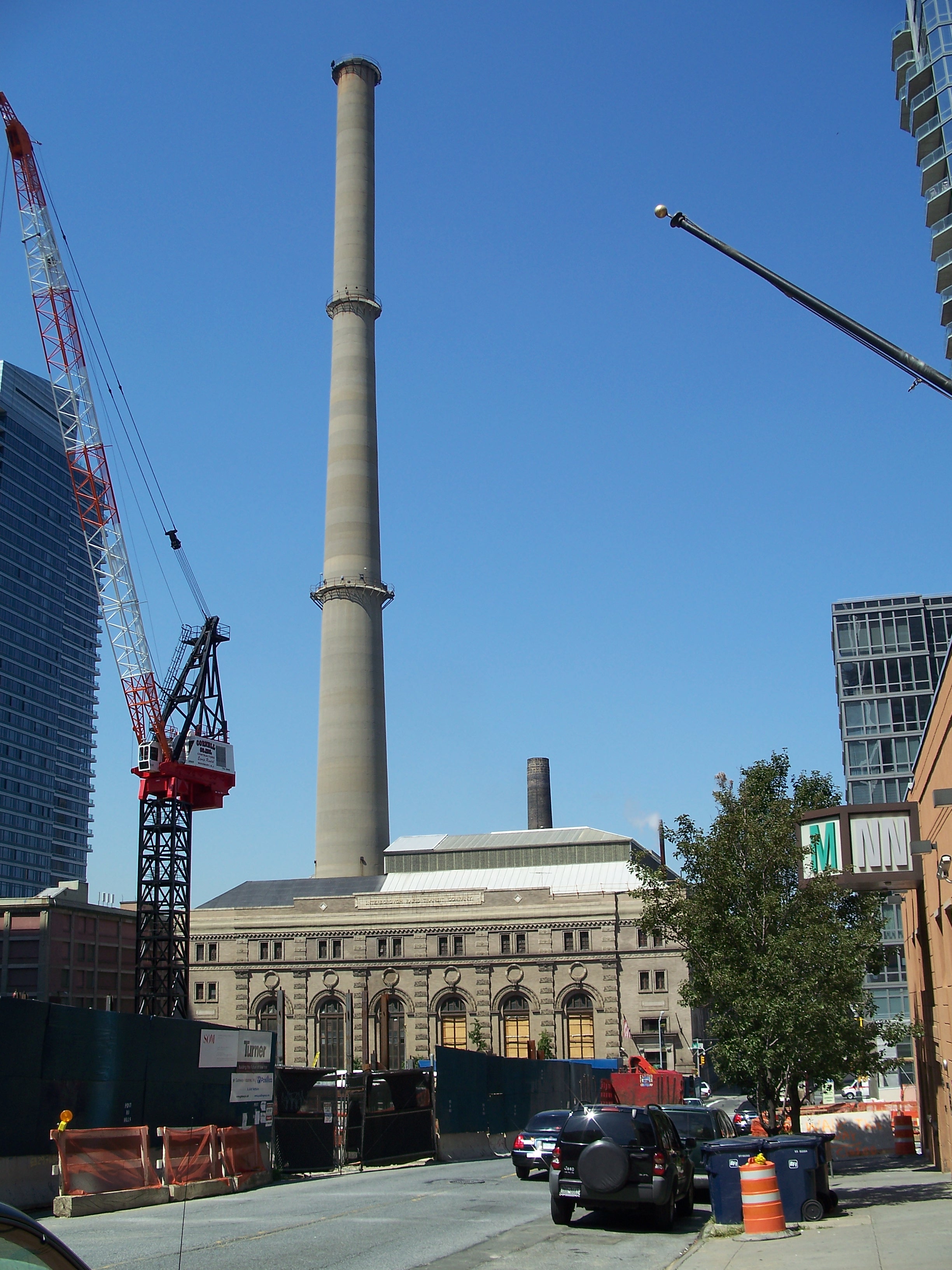 The IRT Generating Plant on 11th Avenue (WEA) between 58th/59th Streets (just to the southwest of San Juan Hill) was built in 1904 to supply power to the new Interborough Rapit Transit Company subway which opened that year. The location was chosen in part to permit ready access to coal shipments via the Hudson River just to the west and in its heyday, used 1,000 tons of coal per day to generate 132,000 horsepower. The exterior has undergone numerous modifications over the years, including replacement of the original five smokestack with a single concrete stack. The city sold the facility to Con Edison in 1959 which integrated it into the power grid and sold the steam to neighborhood customers for heating.