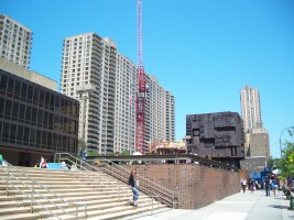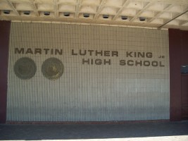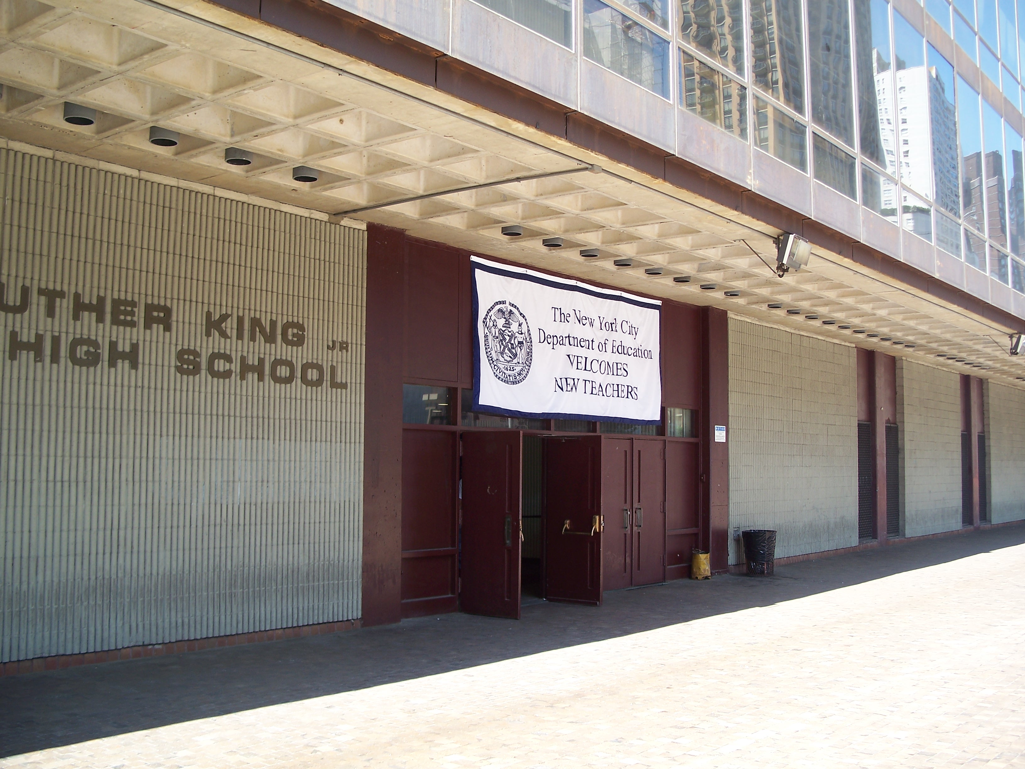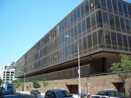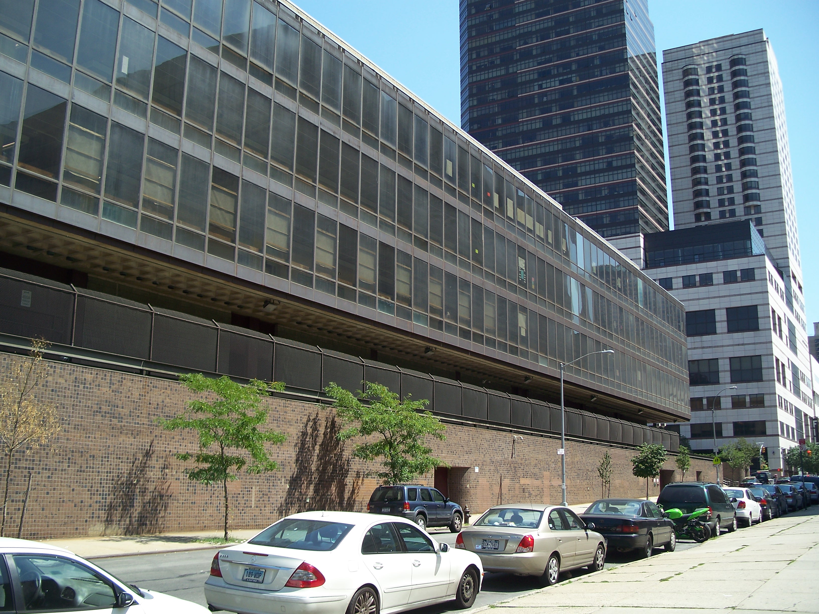 The street level of this building again reflects the aesthetic (and fear) of its time by presenting a brick wall protecting (and isolating) the building from its surroundings and giving it a cold fortress appearance despite the incorporation of bright colors in the interior design. The exterior is a glass curtain wall surrounding dreary classrooms that have no access to natural light. Add in the dysfunctional bureaucracy of the New York public school system and social issues from the housing projects next door and you have a building that isn't terribly conducive to educational excellence.