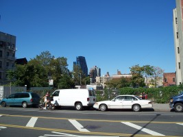 Vacant parking area on the southwest corner of the block
