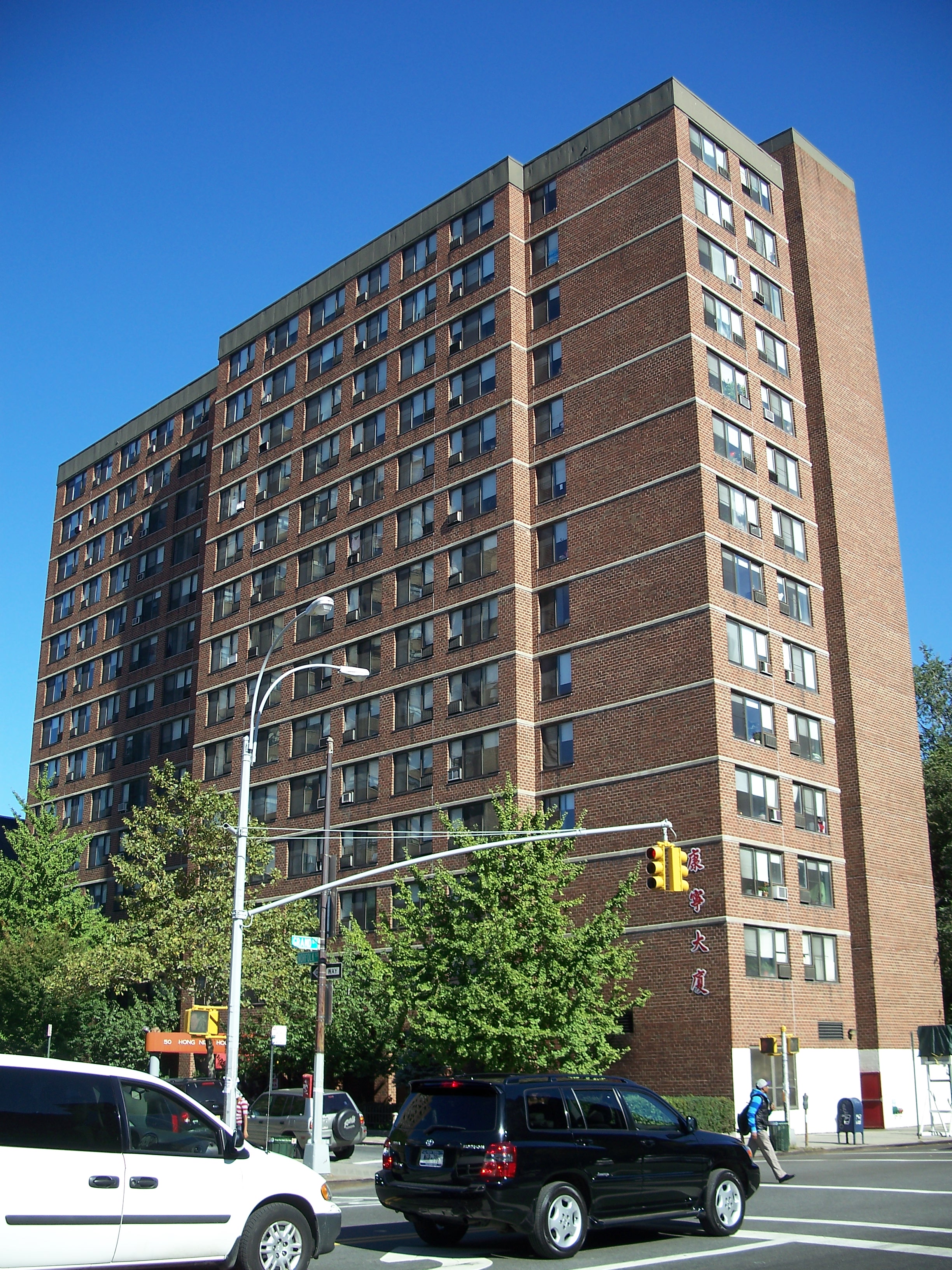The block bordered by Broom, Norfolk, Grand and Suffolk Streets (south of the undeveloped SPURA blocks) is home to a church, an apartment tower of fairly recent vintage (with Chinese lettering on it), and an older, solid-looking five-story apartment building that seems to be a survivor of the SPURA demolitions.