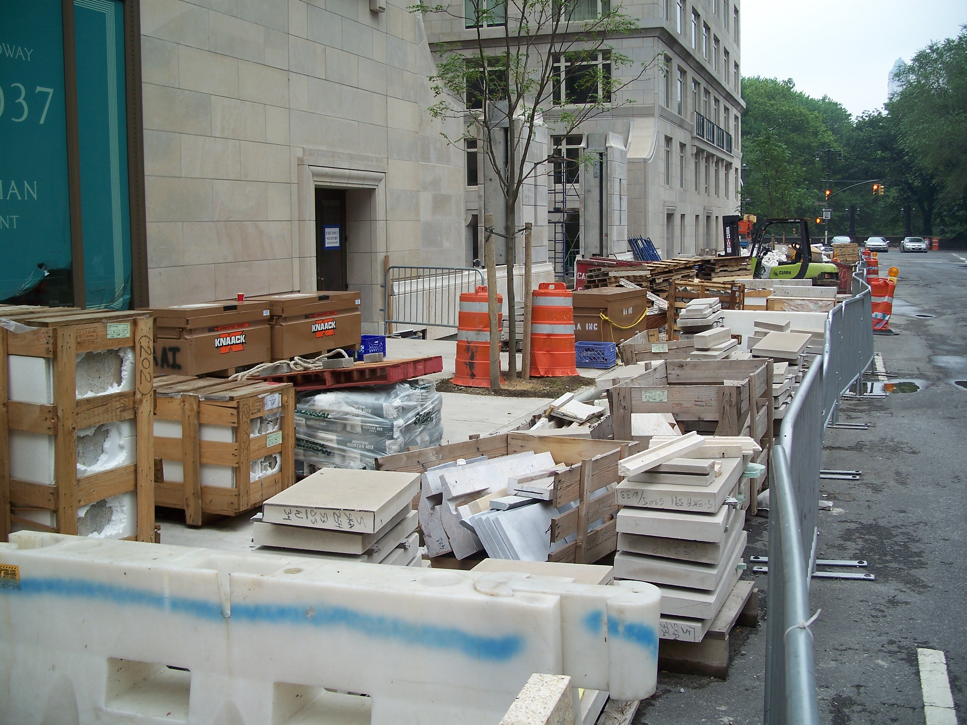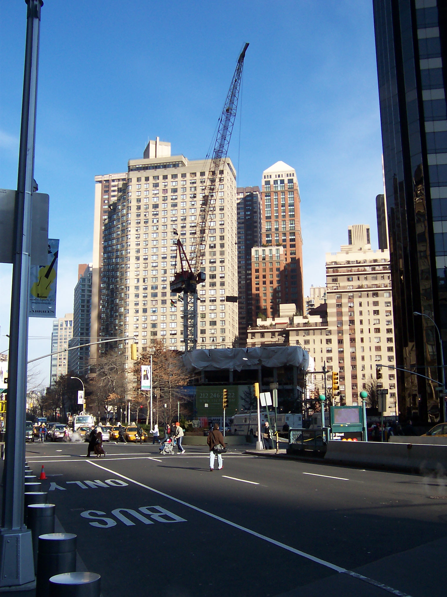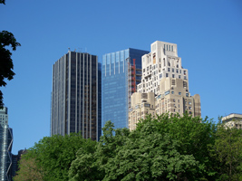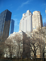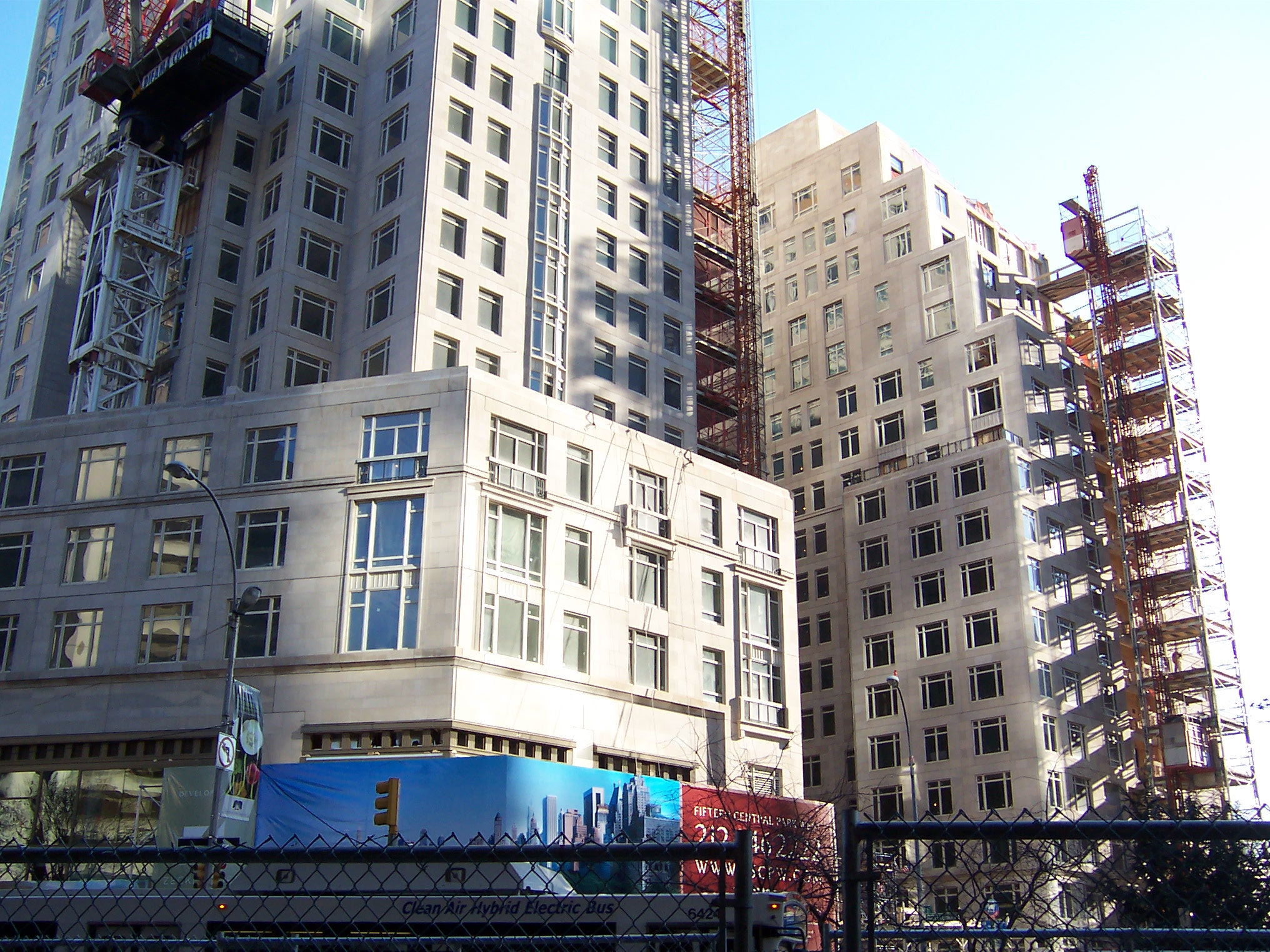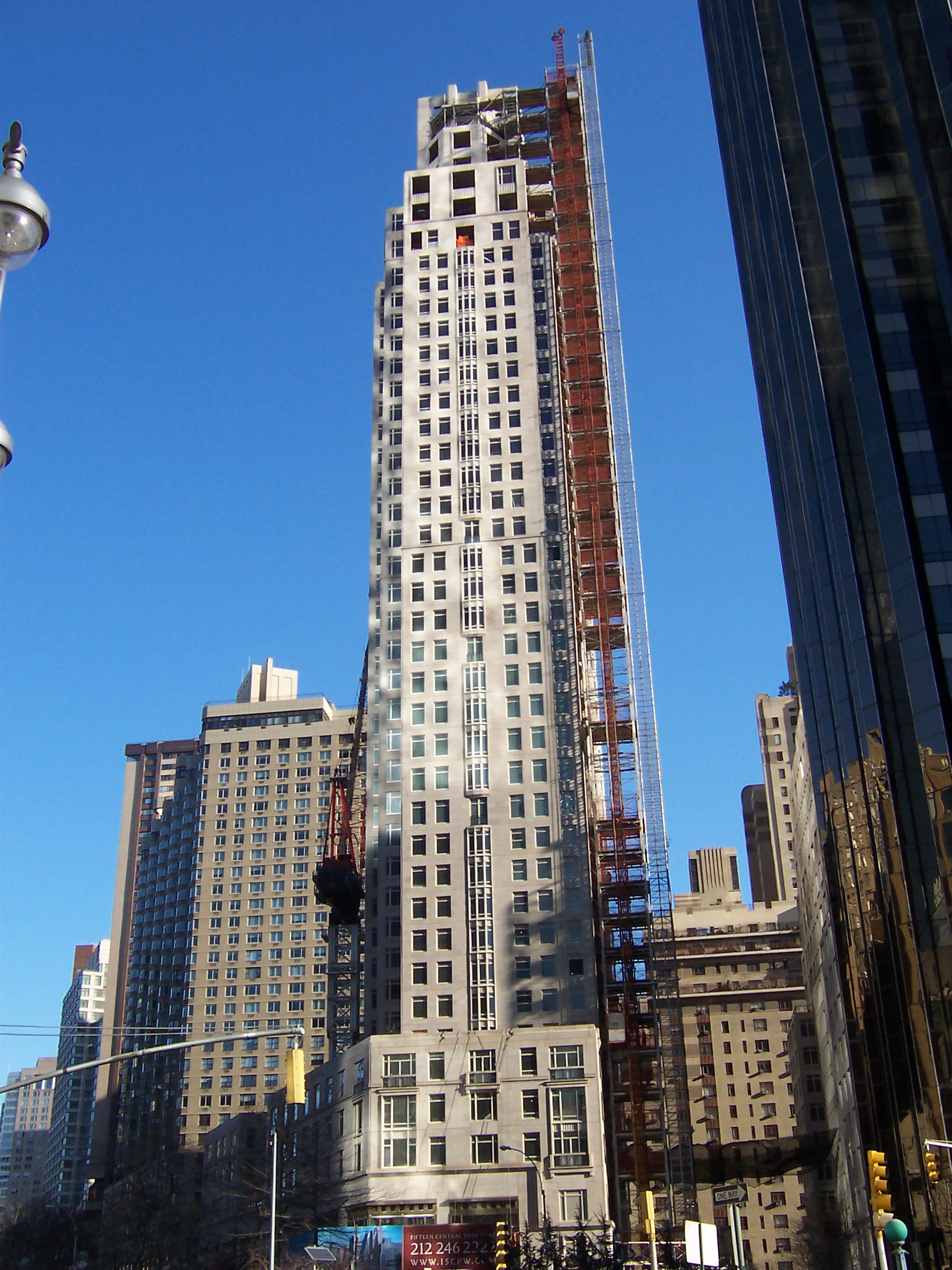 Fifteen Central Park West is bounded by West 61st and 62nd streets, Broadway on the west and Central Park West on the east. The east side of this irregular block was the home of the Mayflower Hotel and the west side had been a vacant lot since I moved to the city in the early 1990s. I followed construction of of the building since the beginning of the excavation for the foundation in 2005. In contrast to the numerous asymmetrical glass curtain-wall microtowers that were, unfortunately, very fashionable during this time period for new construction, the twin 15 CPW buildings as designed by Robert A.M. Stern Associates has a very formidable limestone exterior, which is harmonious with many of the other magnificent early 20th century residential towers on CPW. Unfortunately, that also means I will never be able to afford to live there on any of the 43 floors.