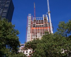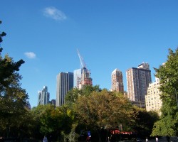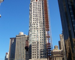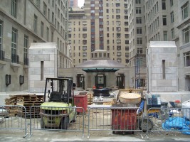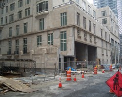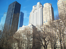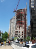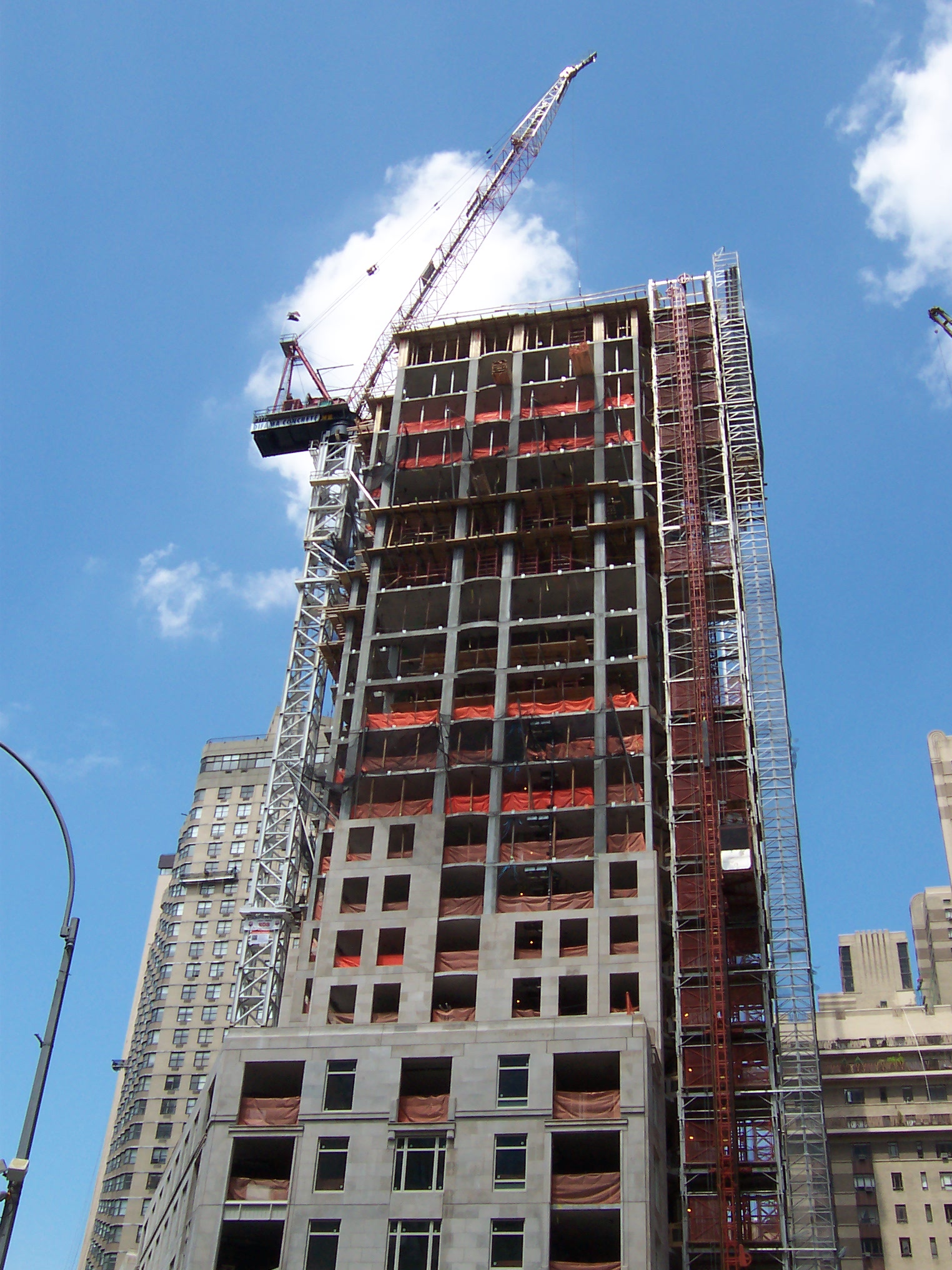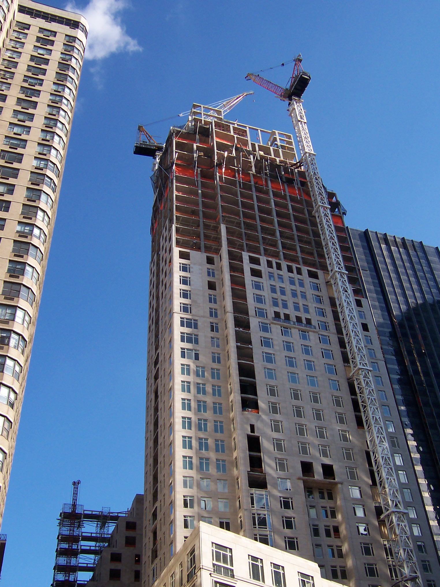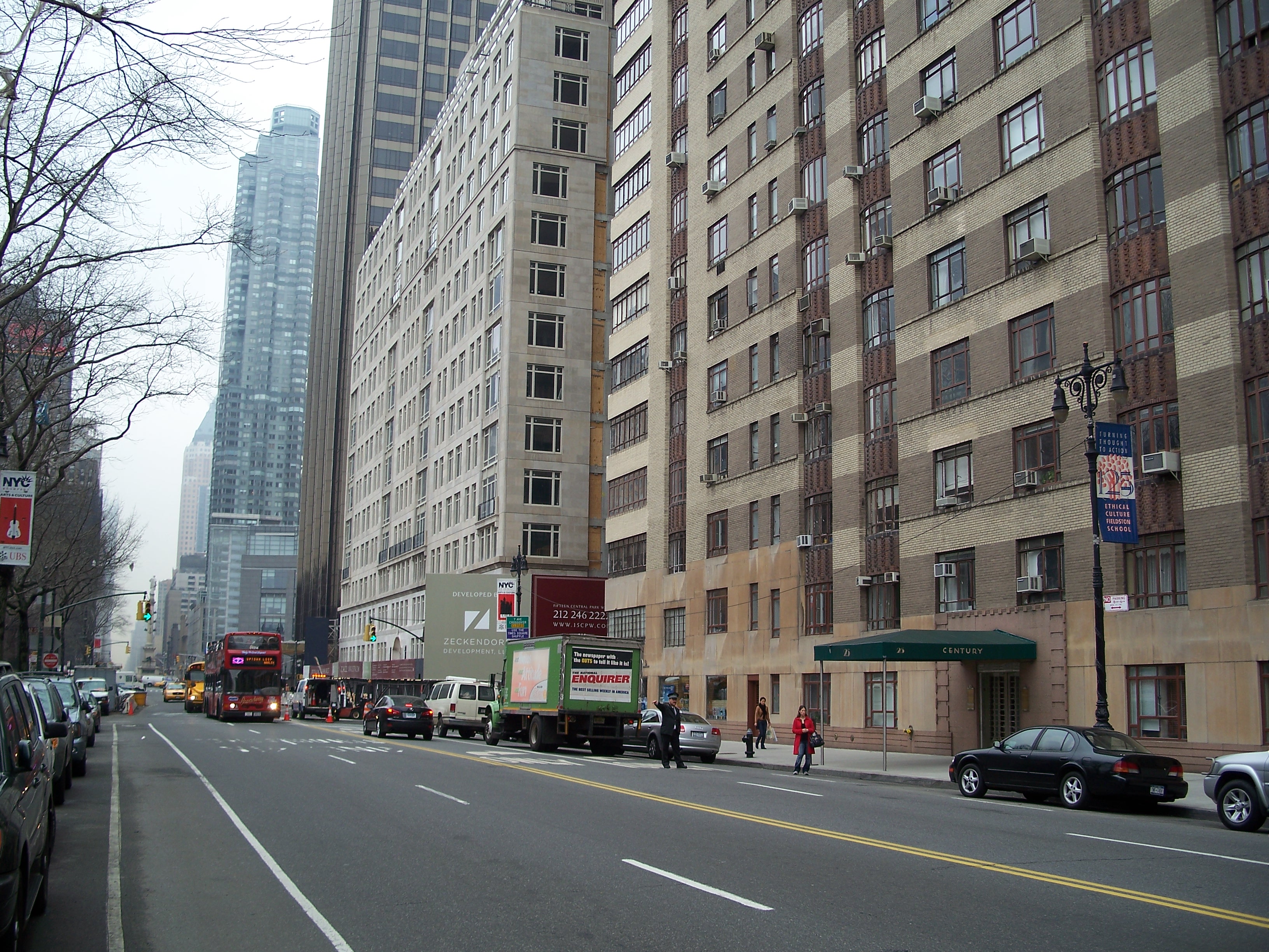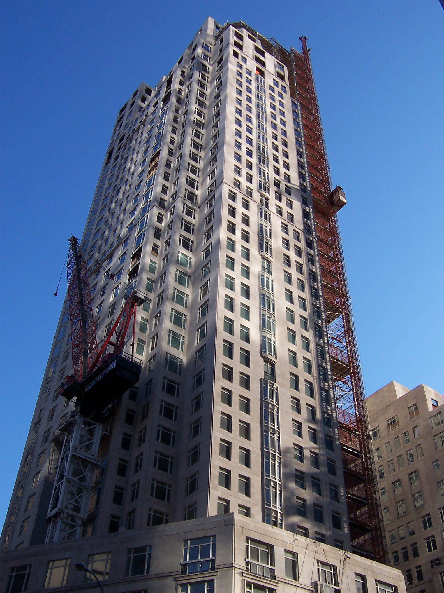 Fifteen Central Park West is bounded by West 61st and 62nd streets, Broadway on the west and Central Park West on the east. The east side of this irregular block was the home of the Mayflower Hotel and the west side had been a vacant lot since I moved to the city in the early 1990s. I followed construction of of the building since the beginning of the excavation for the foundation in 2005. In contrast to the numerous asymmetrical glass curtain-wall microtowers that were, unfortunately, very fashionable during this time period for new construction, the twin 15 CPW buildings as designed by Robert A.M. Stern Associates has a very formidable limestone exterior, which is harmonious with many of the other magnificent early 20th century residential towers on CPW. Unfortunately, that also means I will never be able to afford to live there on any of the 43 floors.