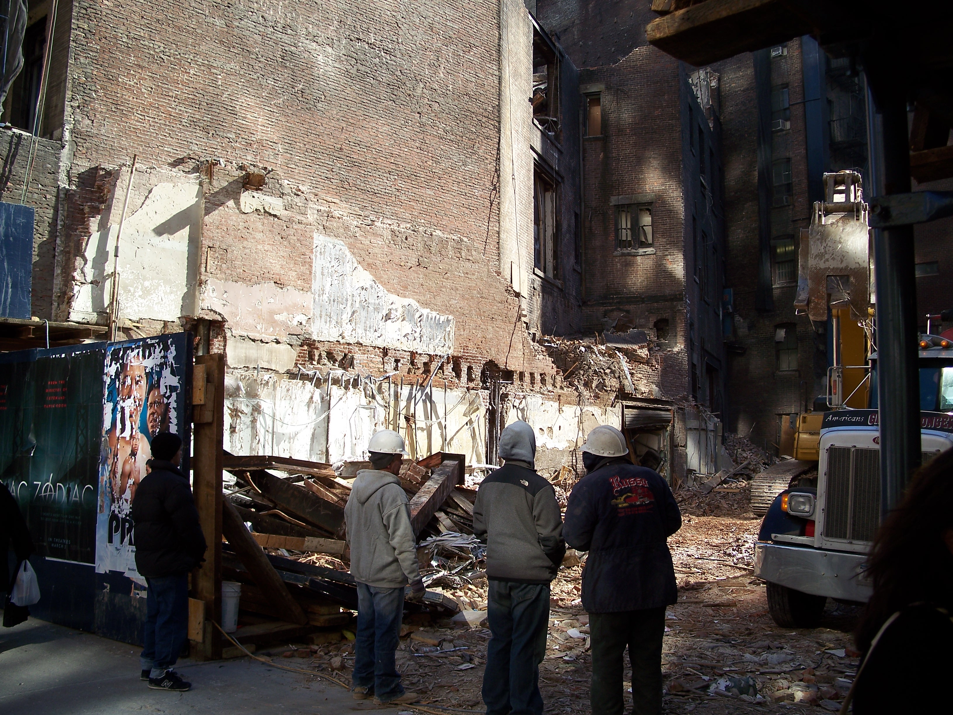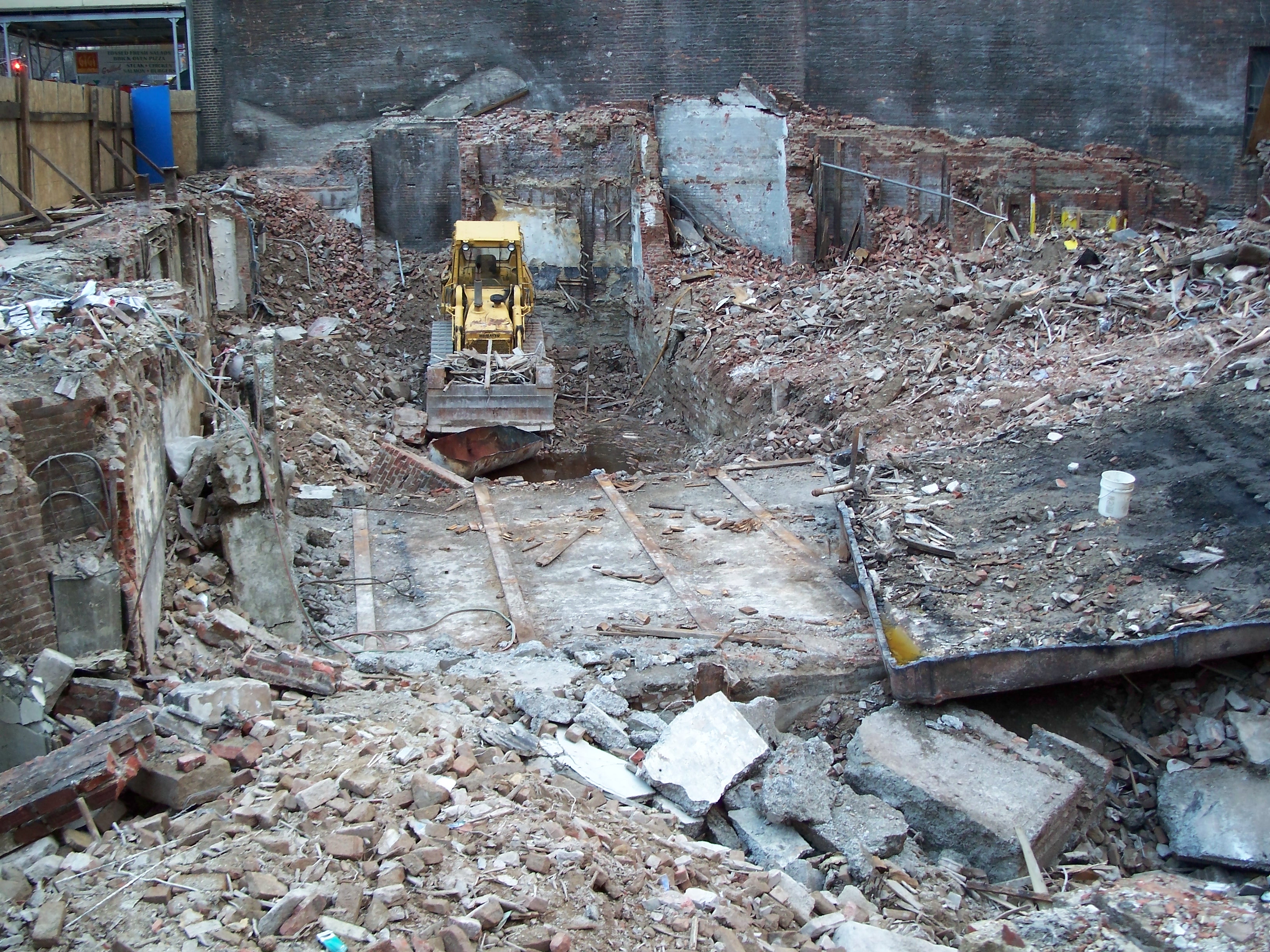 The much-modified, underused and crumbling building had been the target of developers since the late 1980's real-estate boom, although the collapse of that bubble extended its life for another 20 years until the mid 2000's boom brought it down. Strangely, the site then sat dormant for a significant period of time, possibly due to damage to surrounding buildings incurred during demolition, before becoming a residential building containing a Trader Joe's on the ground floor.