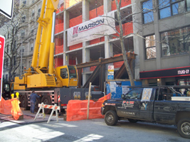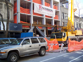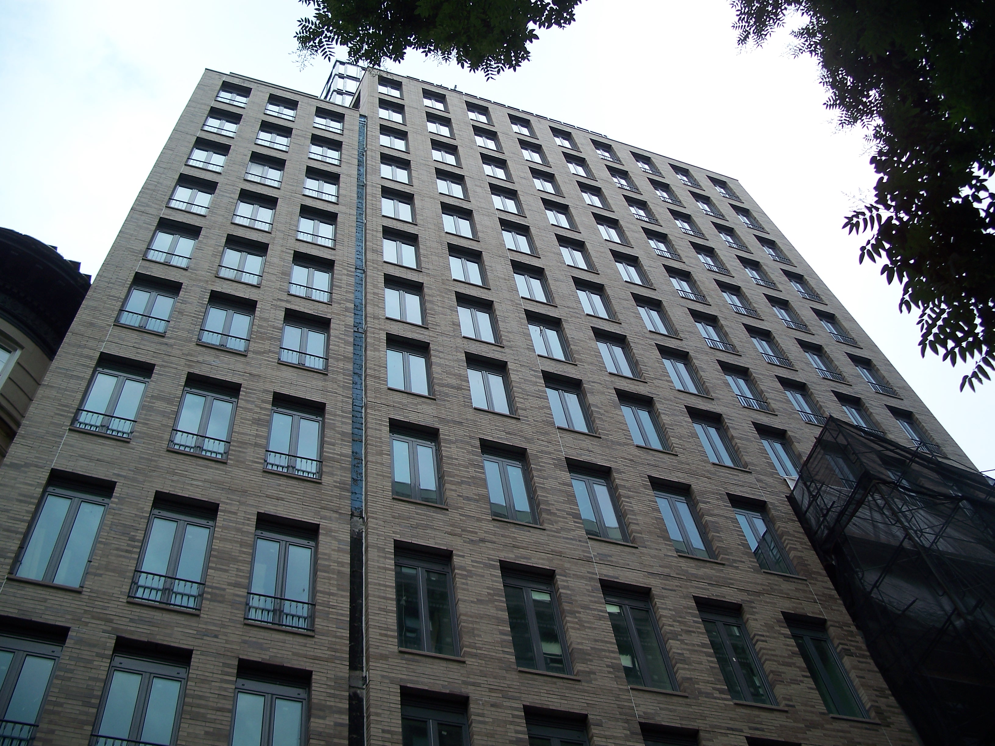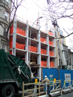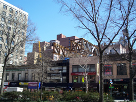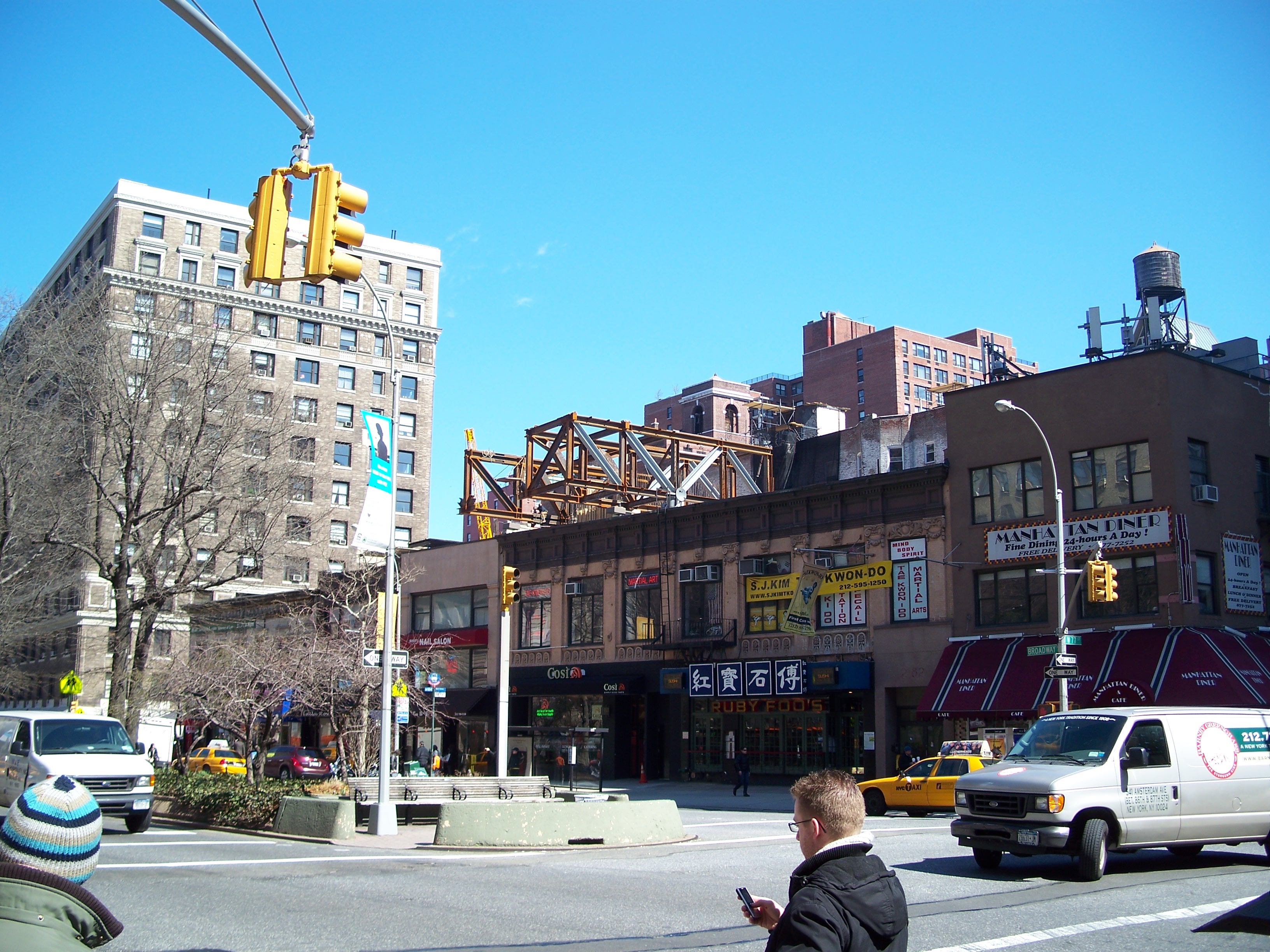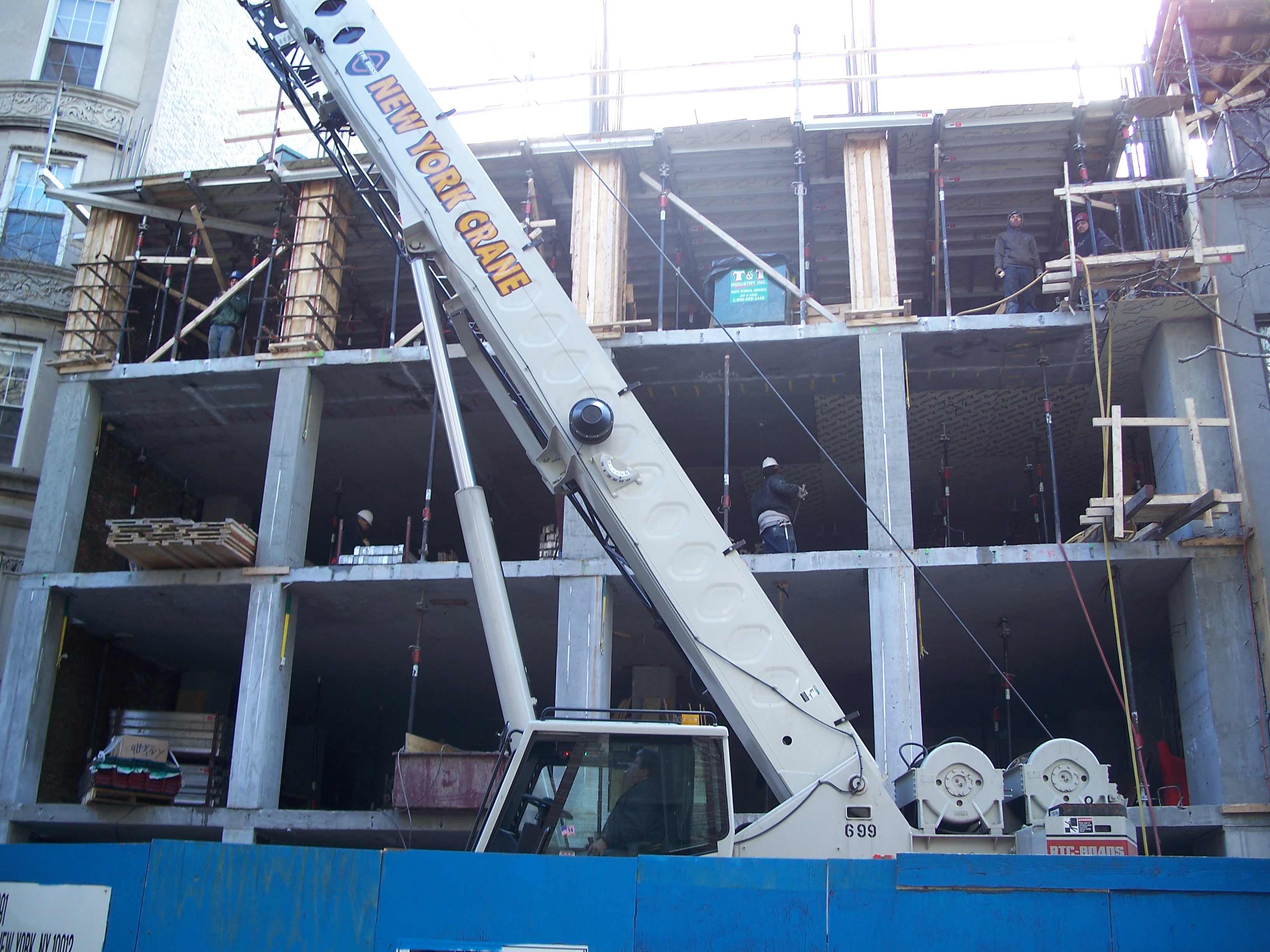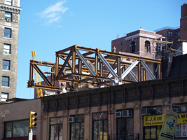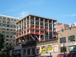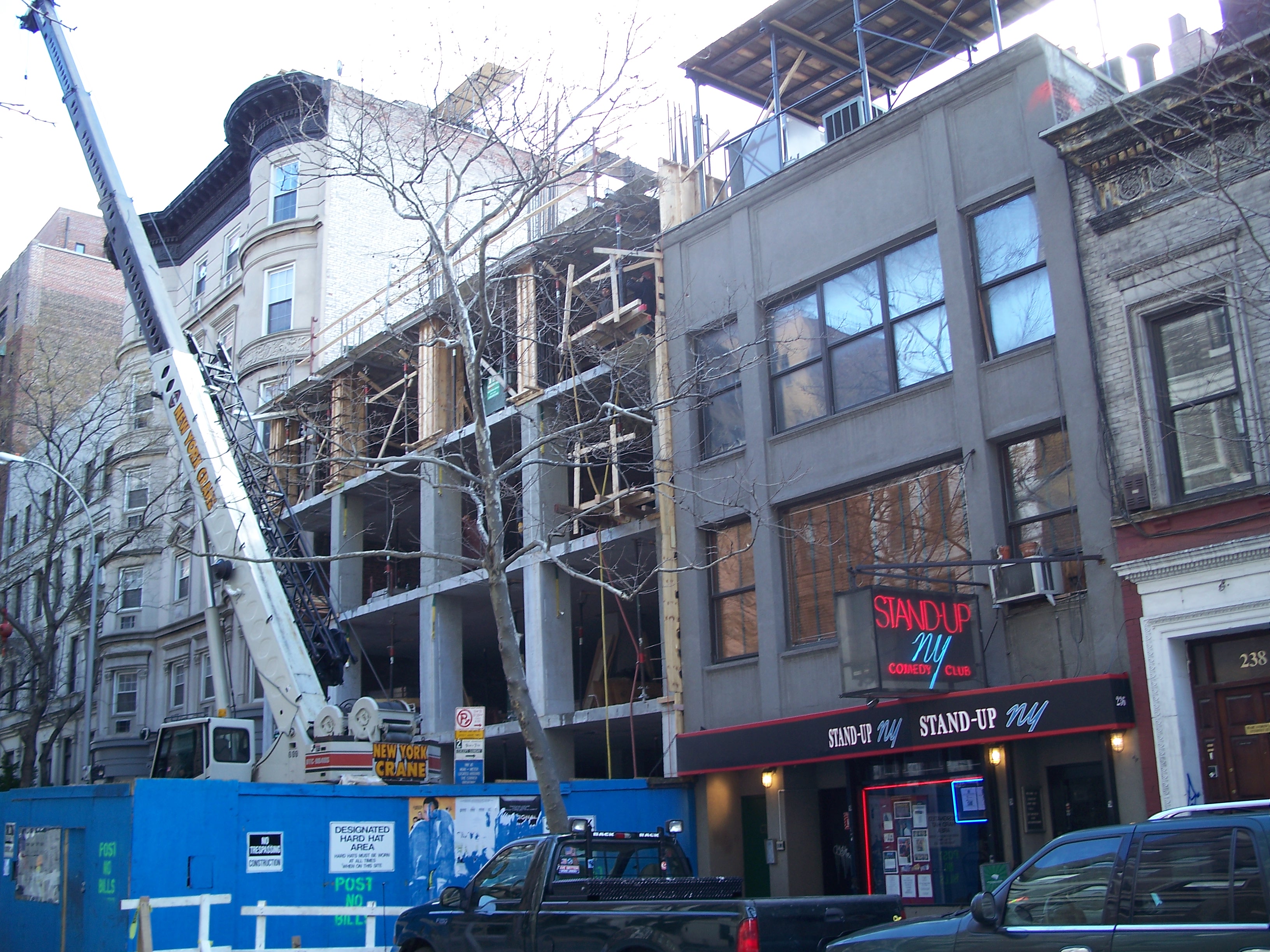The Linden 78. Perhaps most notable for it's use of an internal truss to cantilever the western part of the building over an adjacent brownstone (housing the 78th Street Theatre Lab and StandUp NY Comedy Club). The brownstone was purchased with air rights in the 1970s when this was a much less expensive neighborhood. Presumably, this was a way to use the air rights while preserving his own building.