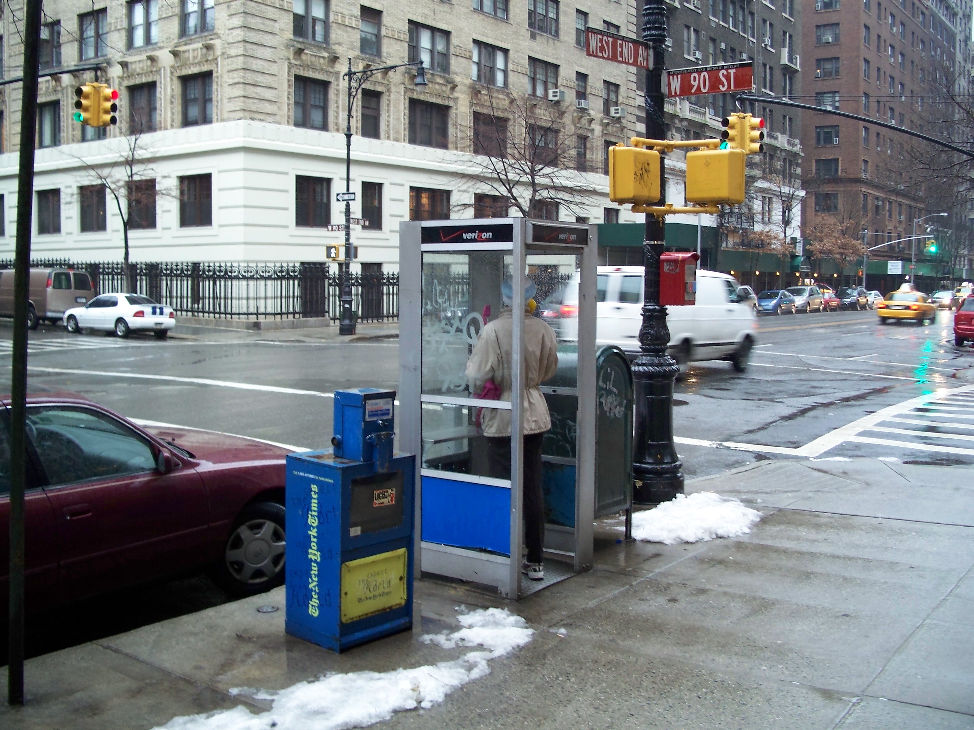 This may have been the last enclosed outdoor phone booth in Manhattan, located on the Upper West Side - West End Avenue at West 90th Street. The remaining holdout of a once-numerous breed, I have no idea how it has managed to survive as long as it did.