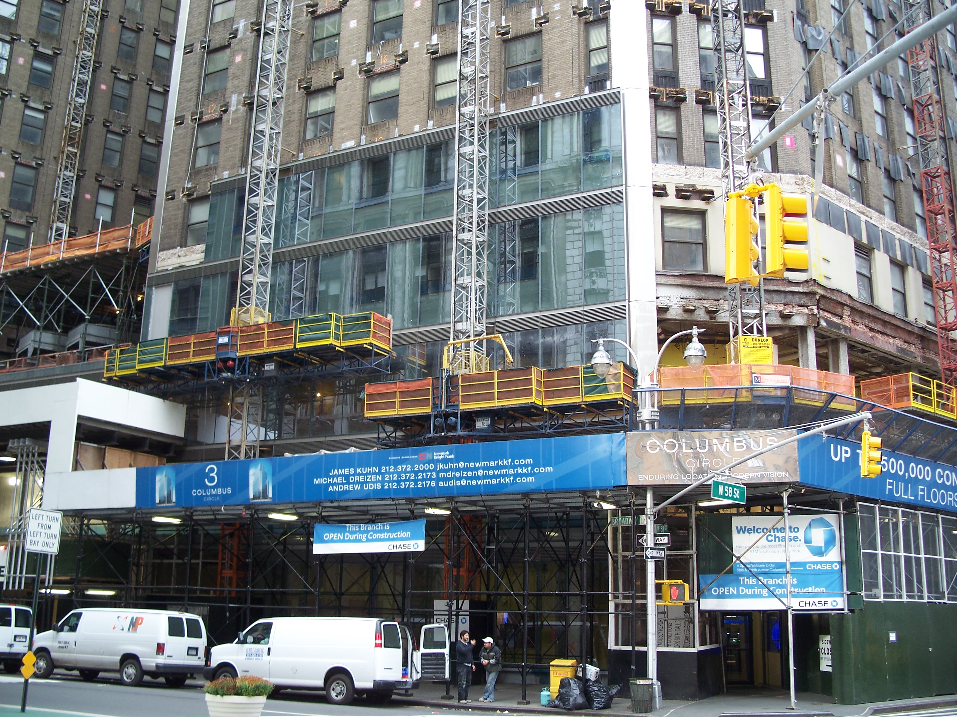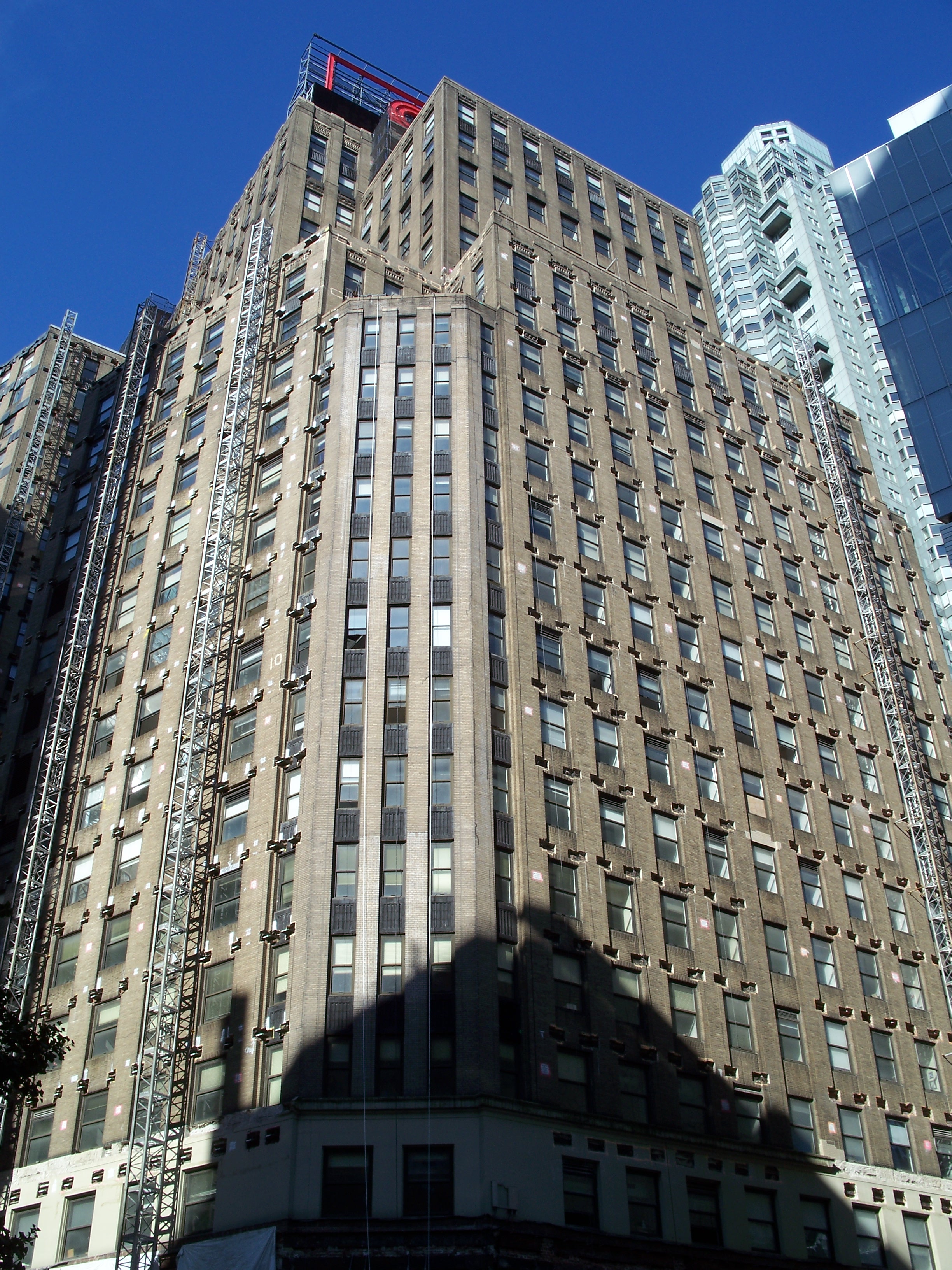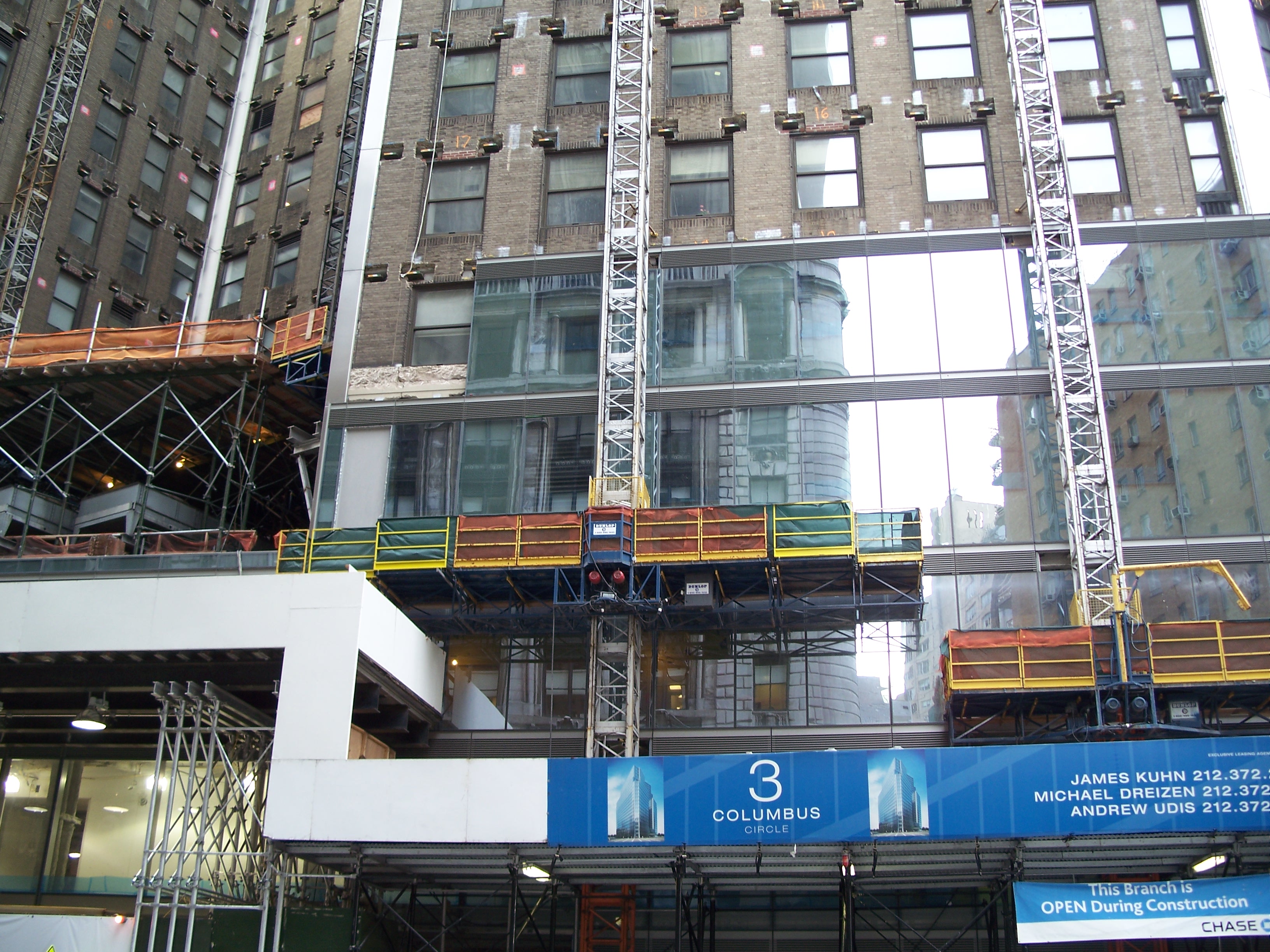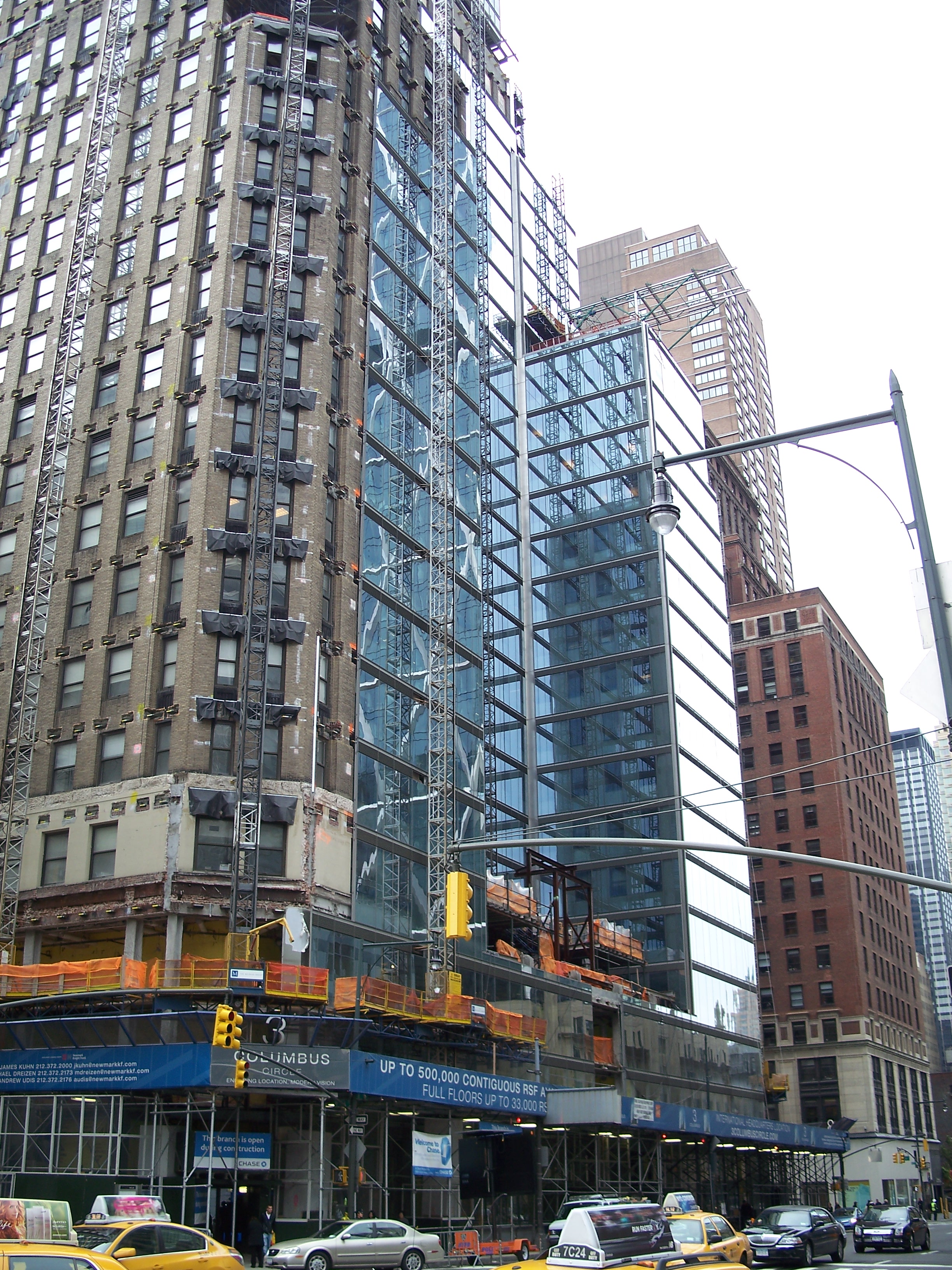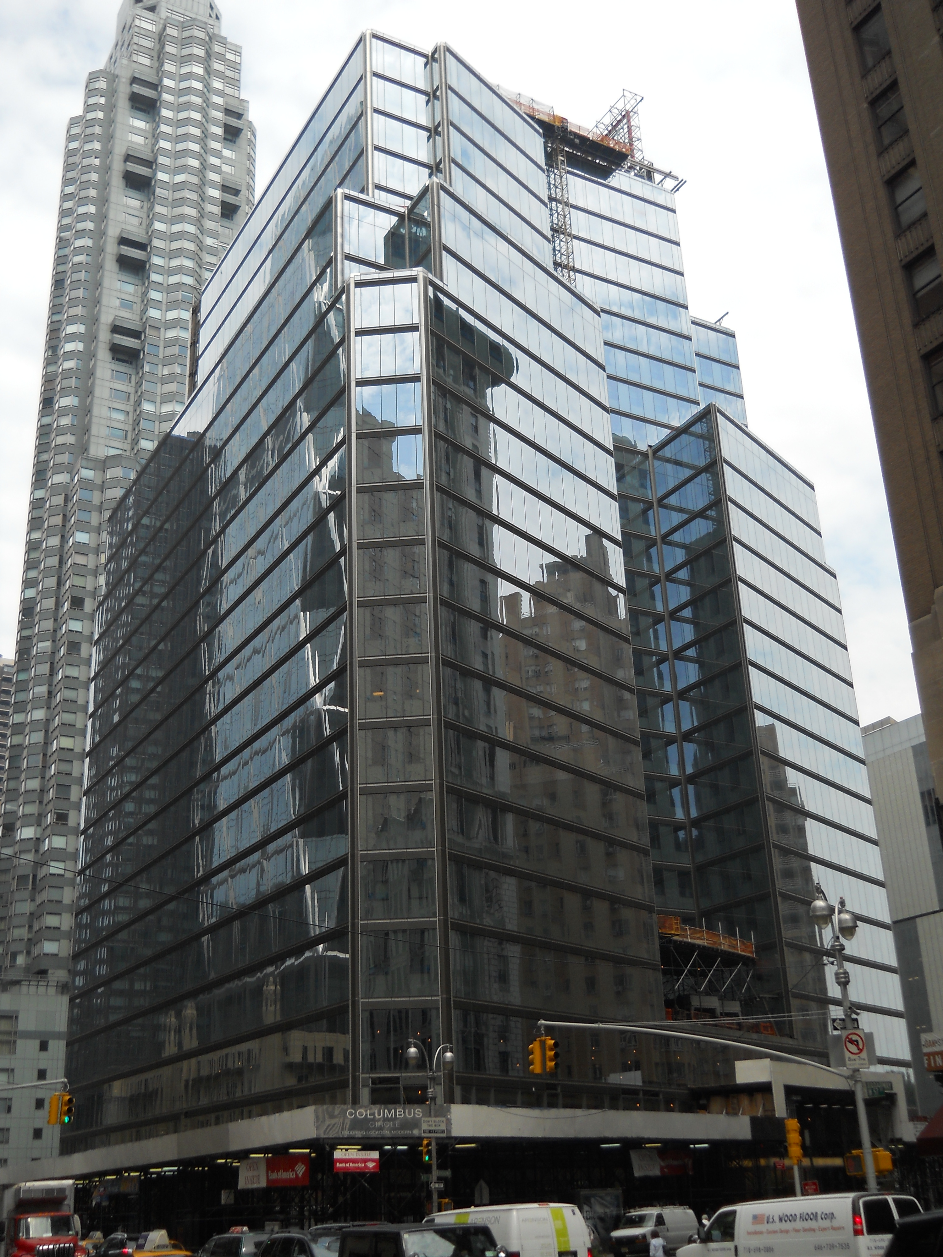 3 Columbus Circle was a fairly-conventional brick office building until glass curtain-wall madness took over midtown in the early 2000s. With bricks becoming as out-of-fashion as bell-bottoms, the owners covered the old building with glass and, undoubtedly, jacked the rents up to match. Could repointing really have been that hard?