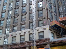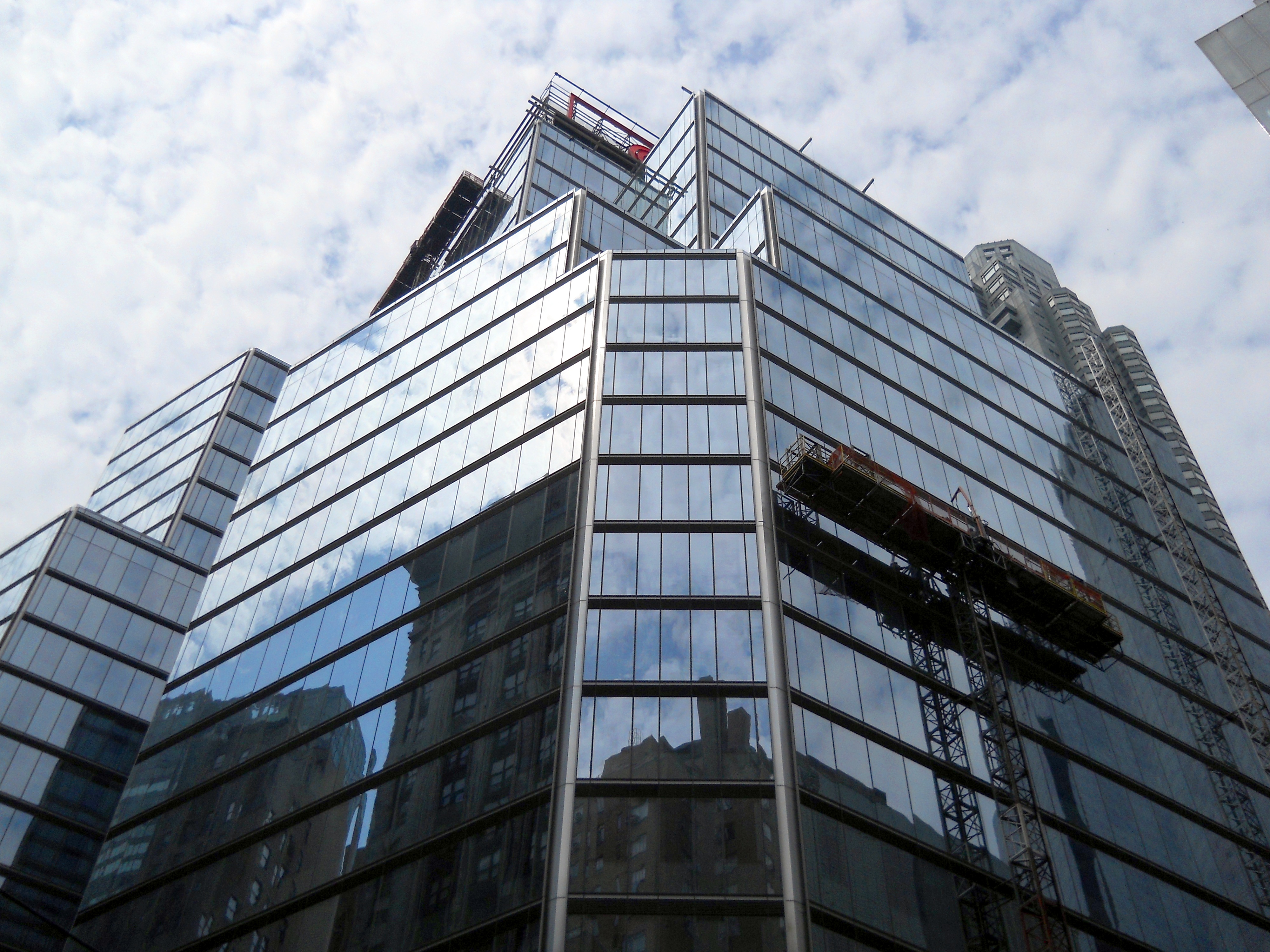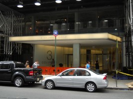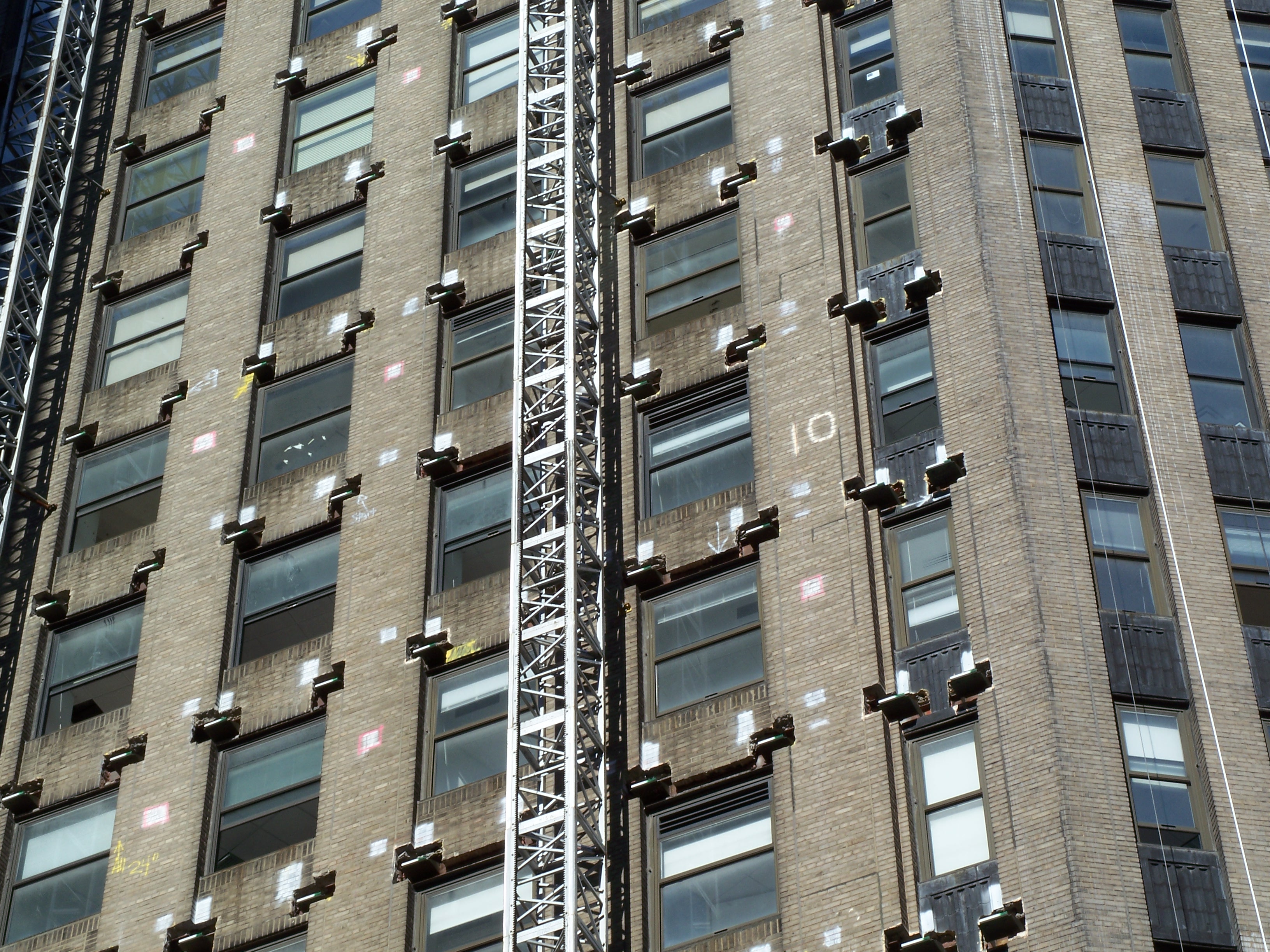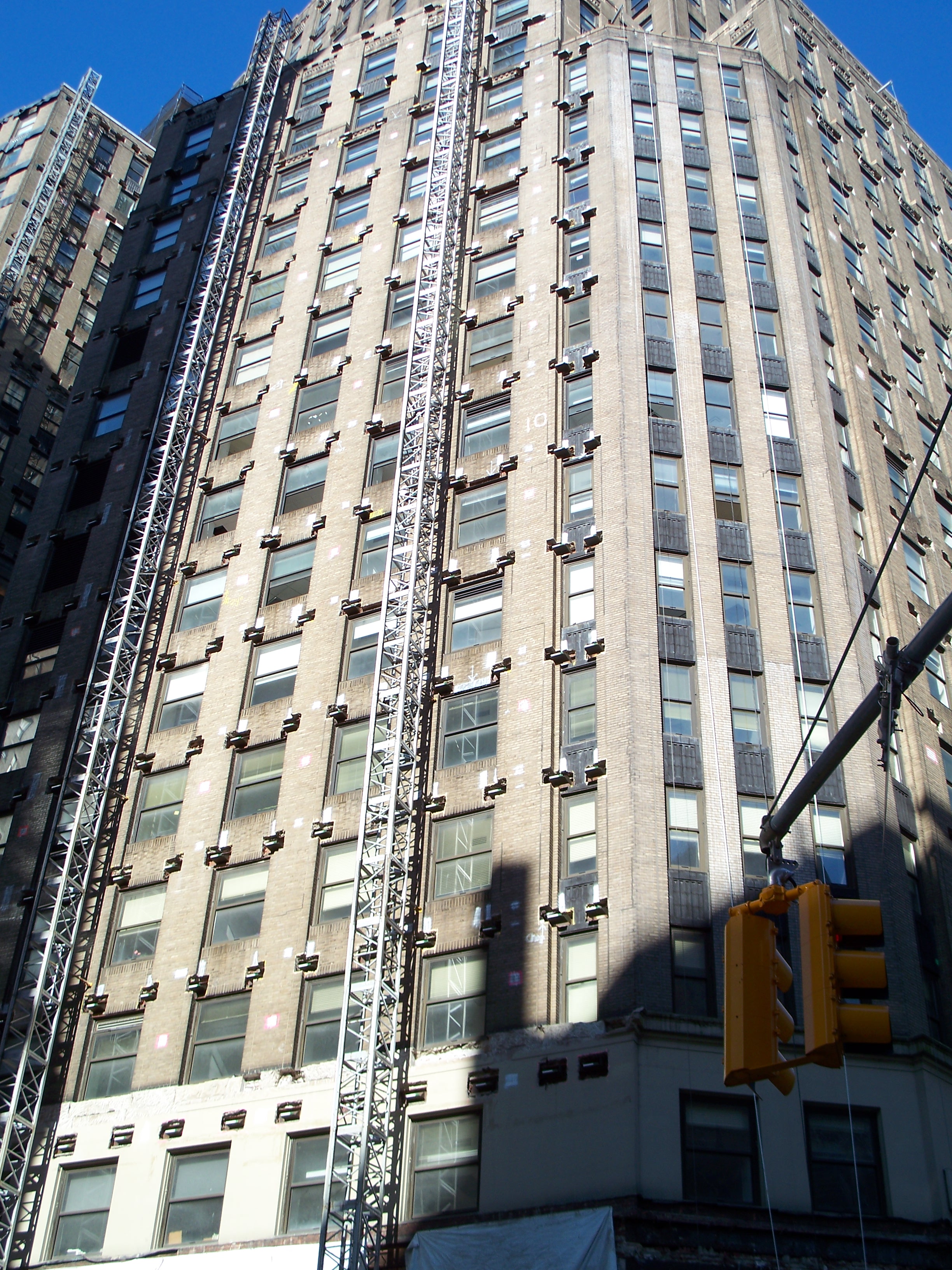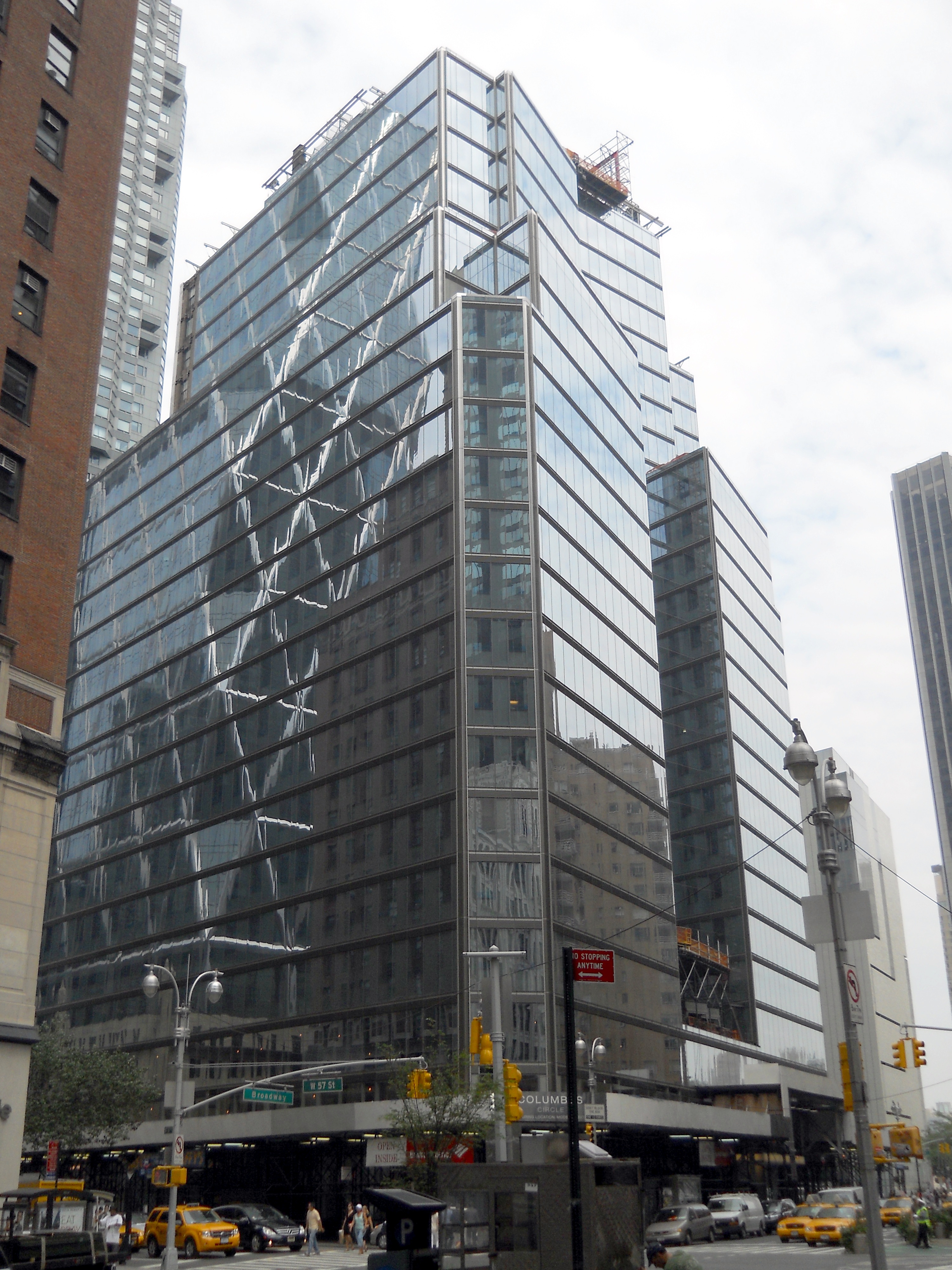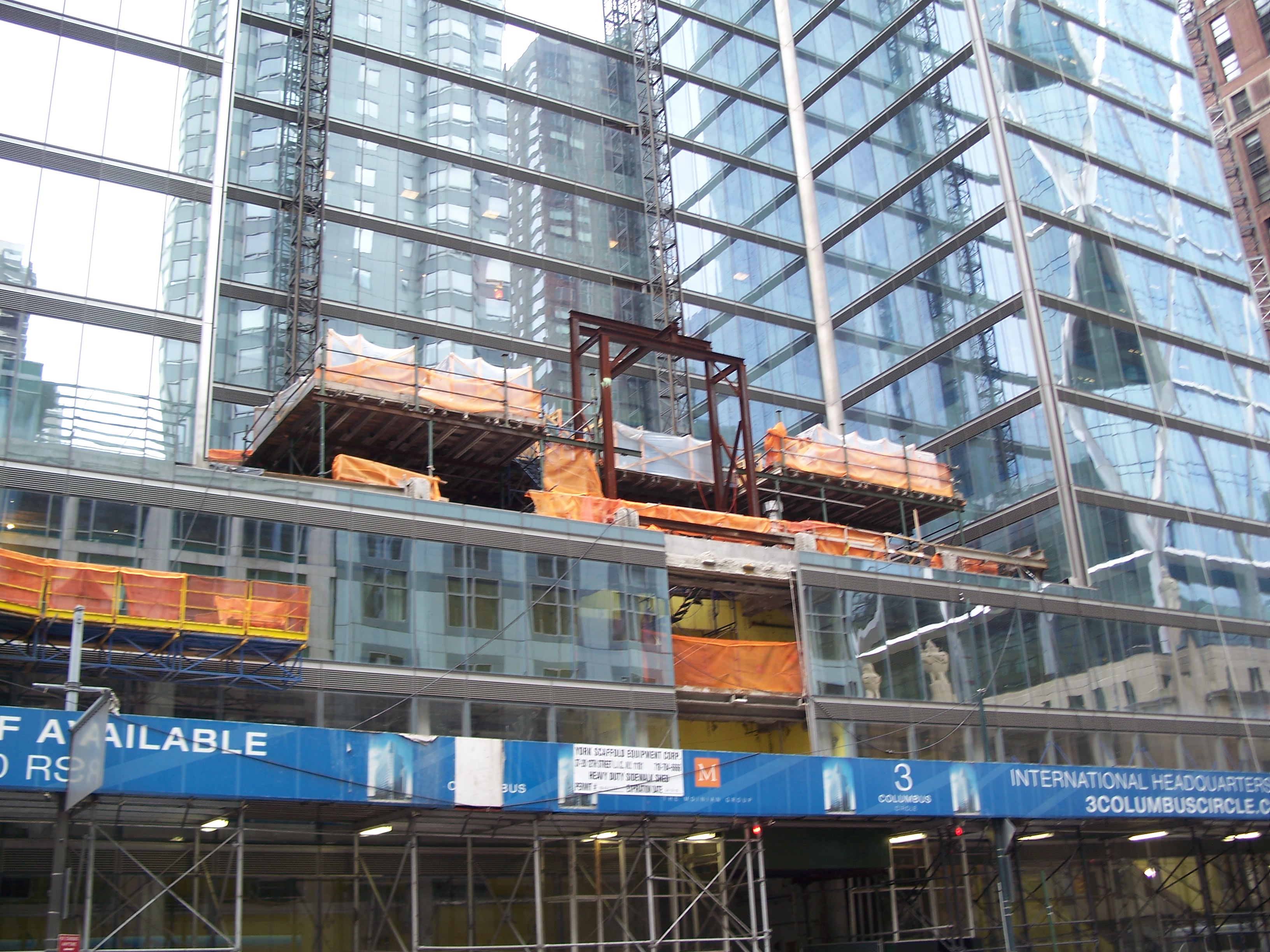 3 Columbus Circle was a fairly-conventional brick office building until glass curtain-wall madness took over midtown in the early 2000s. With bricks becoming as out-of-fashion as bell-bottoms, the owners covered the old building with glass and, undoubtedly, jacked the rents up to match. Could repointing really have been that hard?
