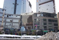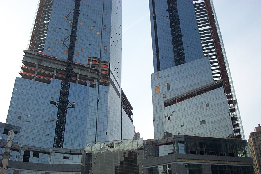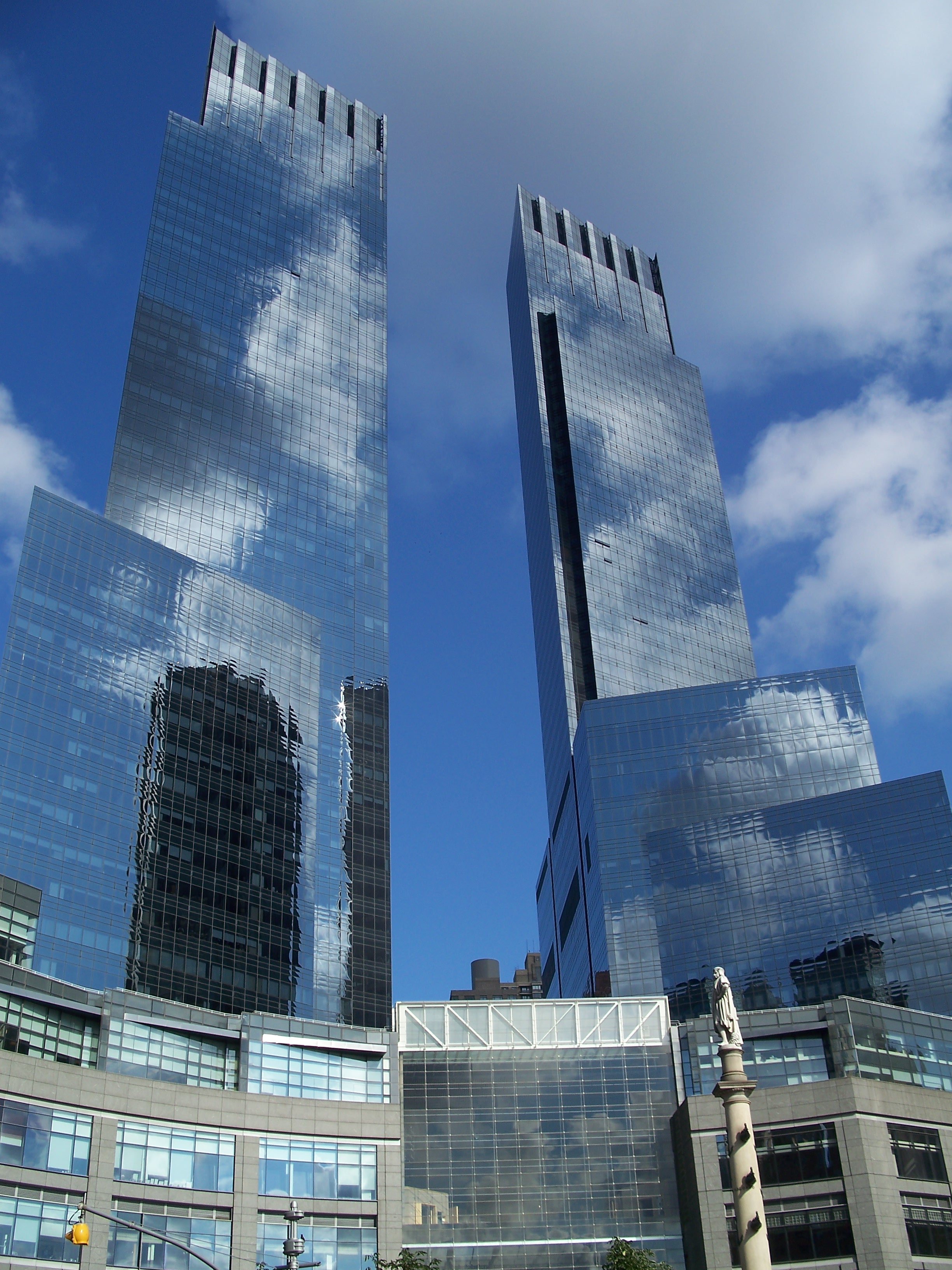 This mixed-use skyscraper consists of two 229 m (750 ft) towers bridged by a multi-story atrium, and initially contained upscale retail shops, studios for CNN and a theatre for Jazz at Lincoln Center. The total floor area of 2.8 million square feet included offices, residential concominiums and the Mandarin Oriental hotel.