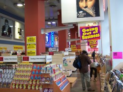 Once upon a time, there were large stores where you could buy music on overpriced plastic disks. One of the large national chains was Tower Records and they had a large store at the corner of 66th Street and Broadway, just north of Lincoln Center. I got some pictures of the store just before they closed in the wake of a bankruptcy filing.