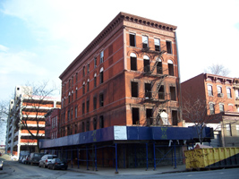 This site just off the FDR Drive between 116th and 118th Streets in East Harlem was the site of the Washburn Wire Factory. The complex was built in 1903 and included six buildings making wire products like springs, piano strings and fence wire. The company was founded by Ichabod Washburn (1798-1868) in Worcester, MA. Washburn was at one time the largest employer in Manhattan but the facility closed in 1976 and sat derelict and decaying for almost three decades ( Bell 2003).