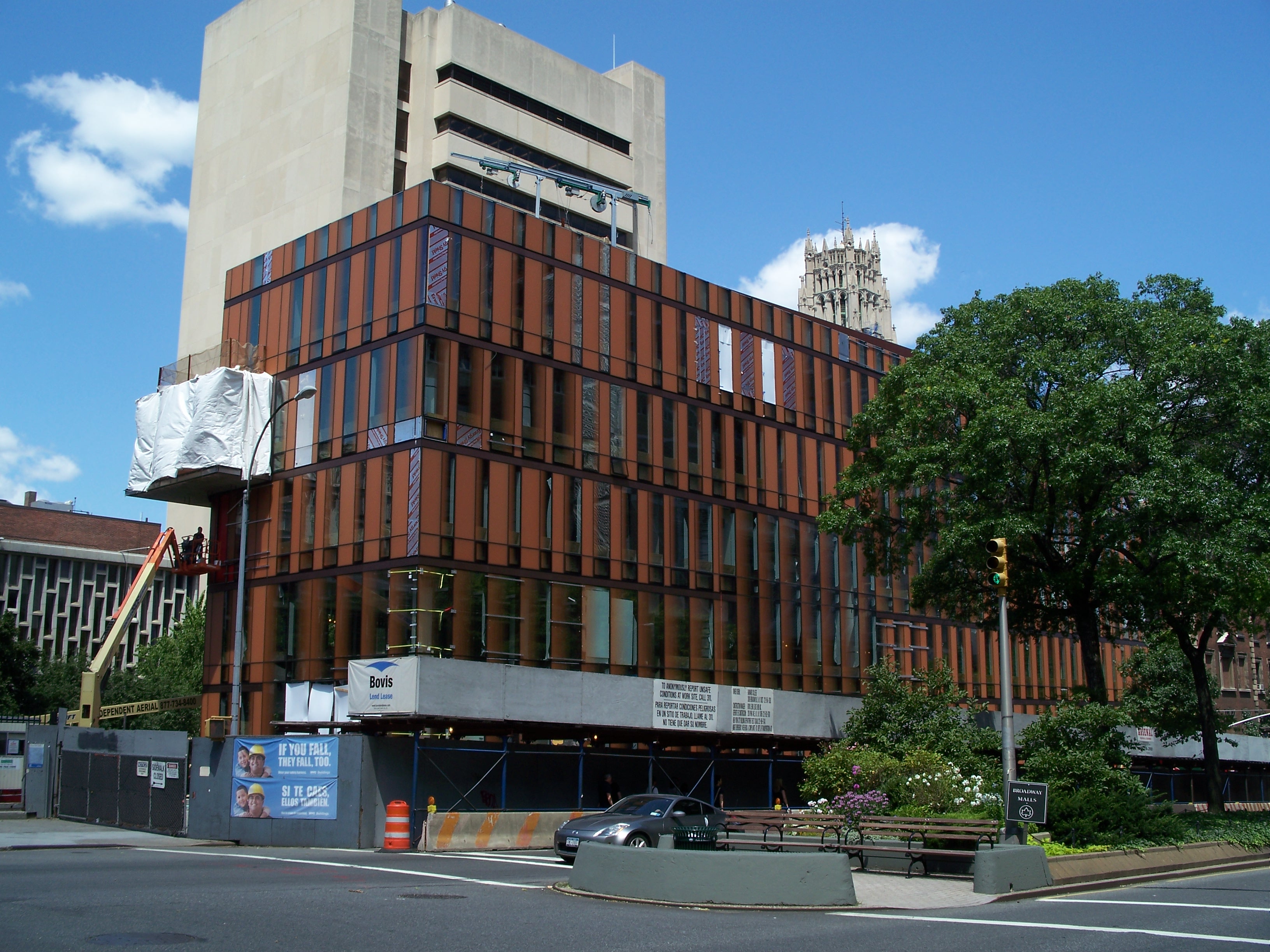 The Millicent McIntosh Student Center at Bernard Collage was a structure with a rather barren plaza over two dark, subterranean floors that housed a dining hall and facilities for student activities. Aside from using space very inefficiently, it was butt-ugly. As the beginning of a significant campus redesign in 2007, the school decided to replace this piece of '60s modernist dreck with a six-story multi-purpose building providing a more spacious, inviting environment for students and a more embracing facade toward Broadway. (reference)
