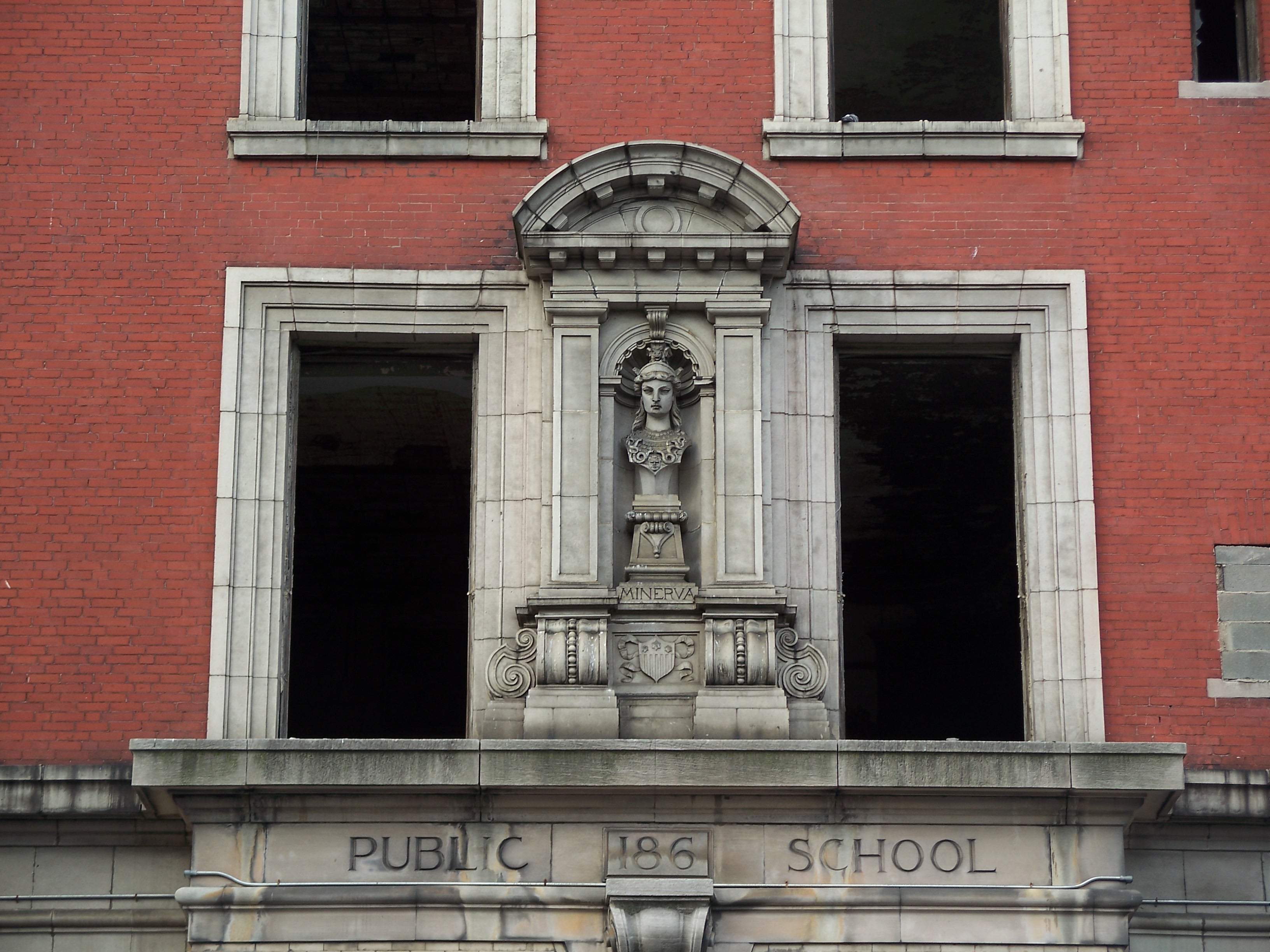 PS 186 served the children of the city for 72 years before succumbing to neglect and closure in 1975 during the heart of NYC's financial crisis. It was purchased from the city by the M.L Wilson Boys and Girls Club in 1986 for $215,000 with the provision that the building be reopened within three years - which never happened. In 2007 a proposal was presented for redevelopment of the site as a co-op with a fairly high percentatage of "affordable" units also never went anywhere.