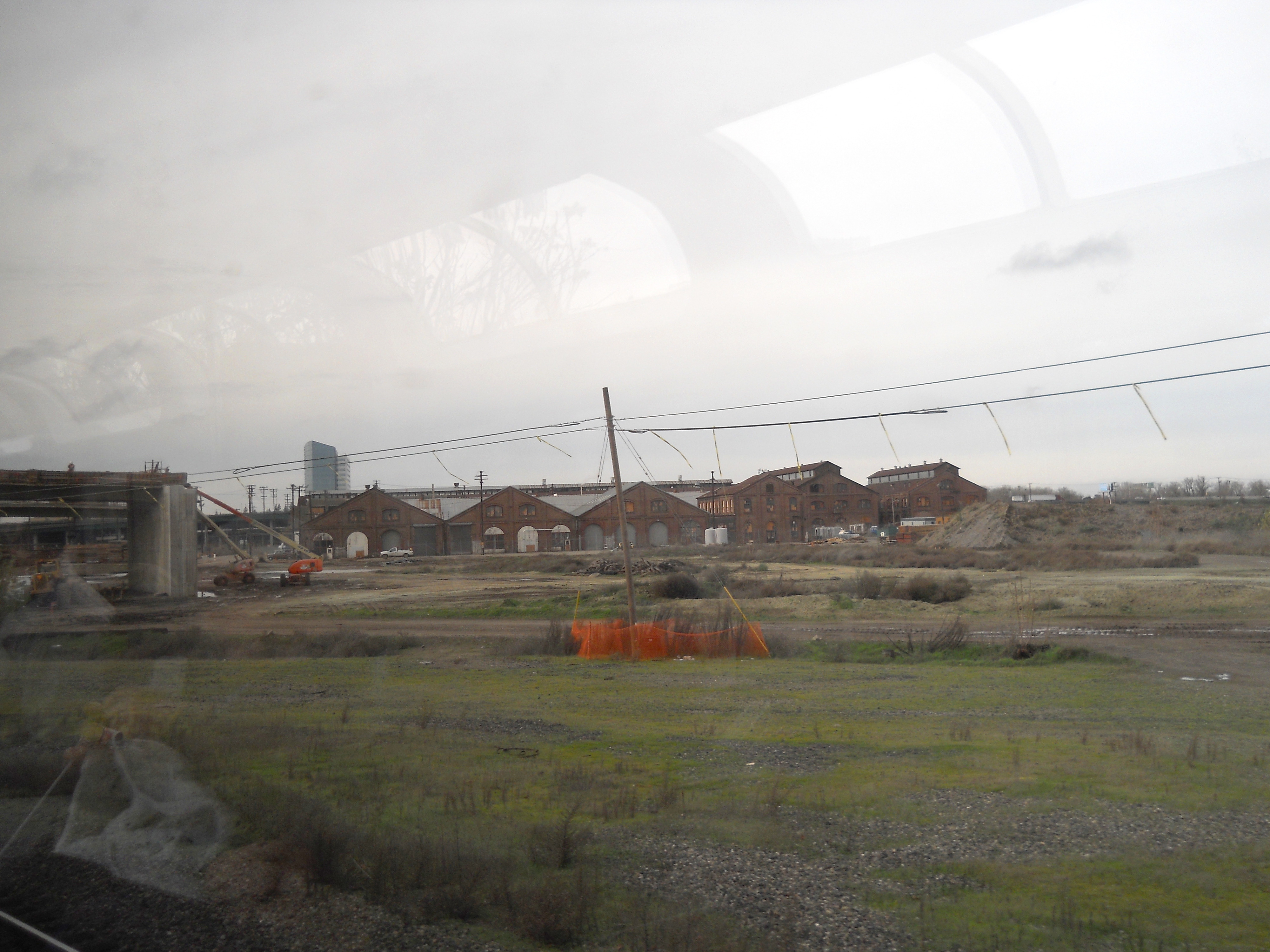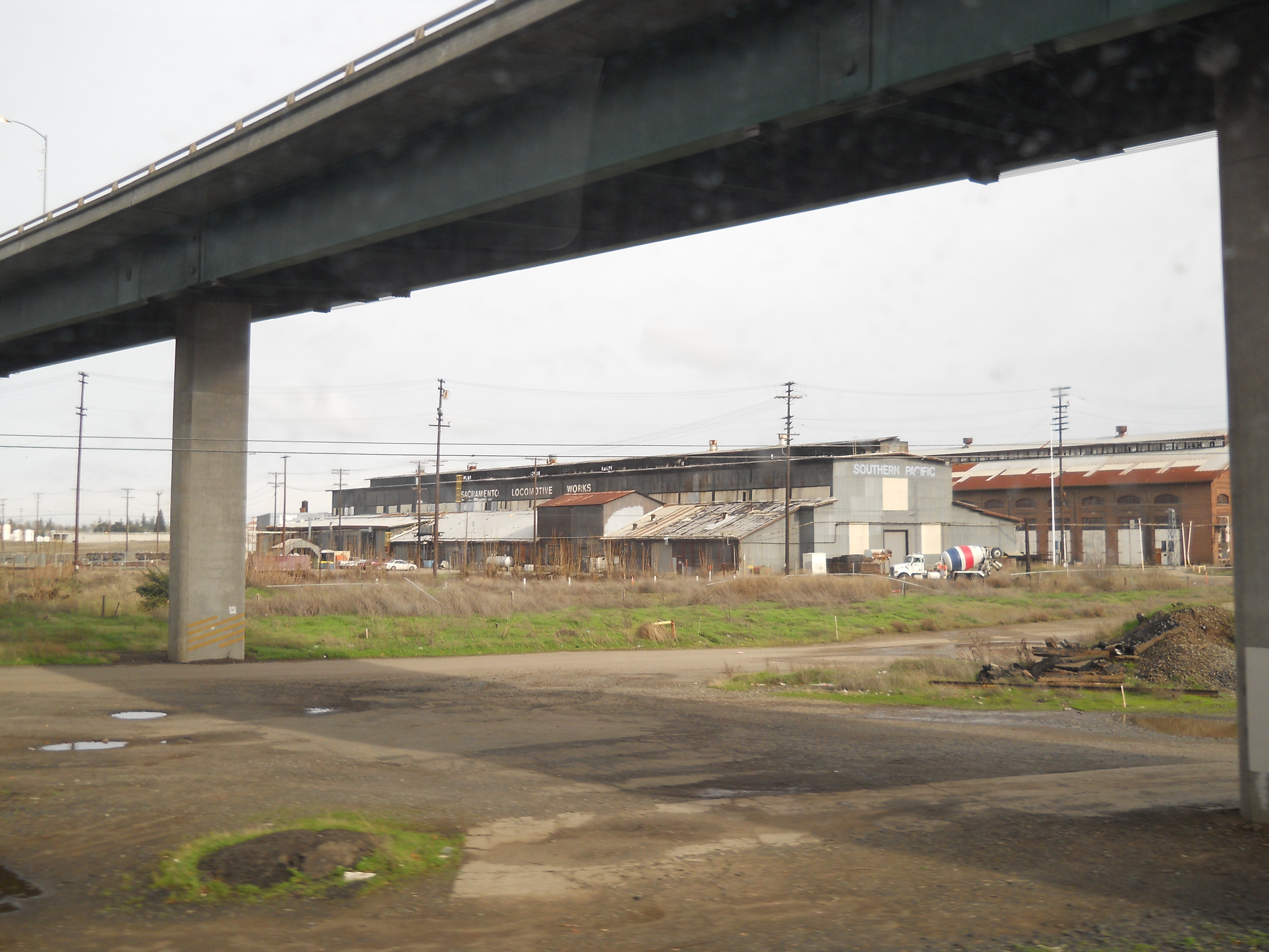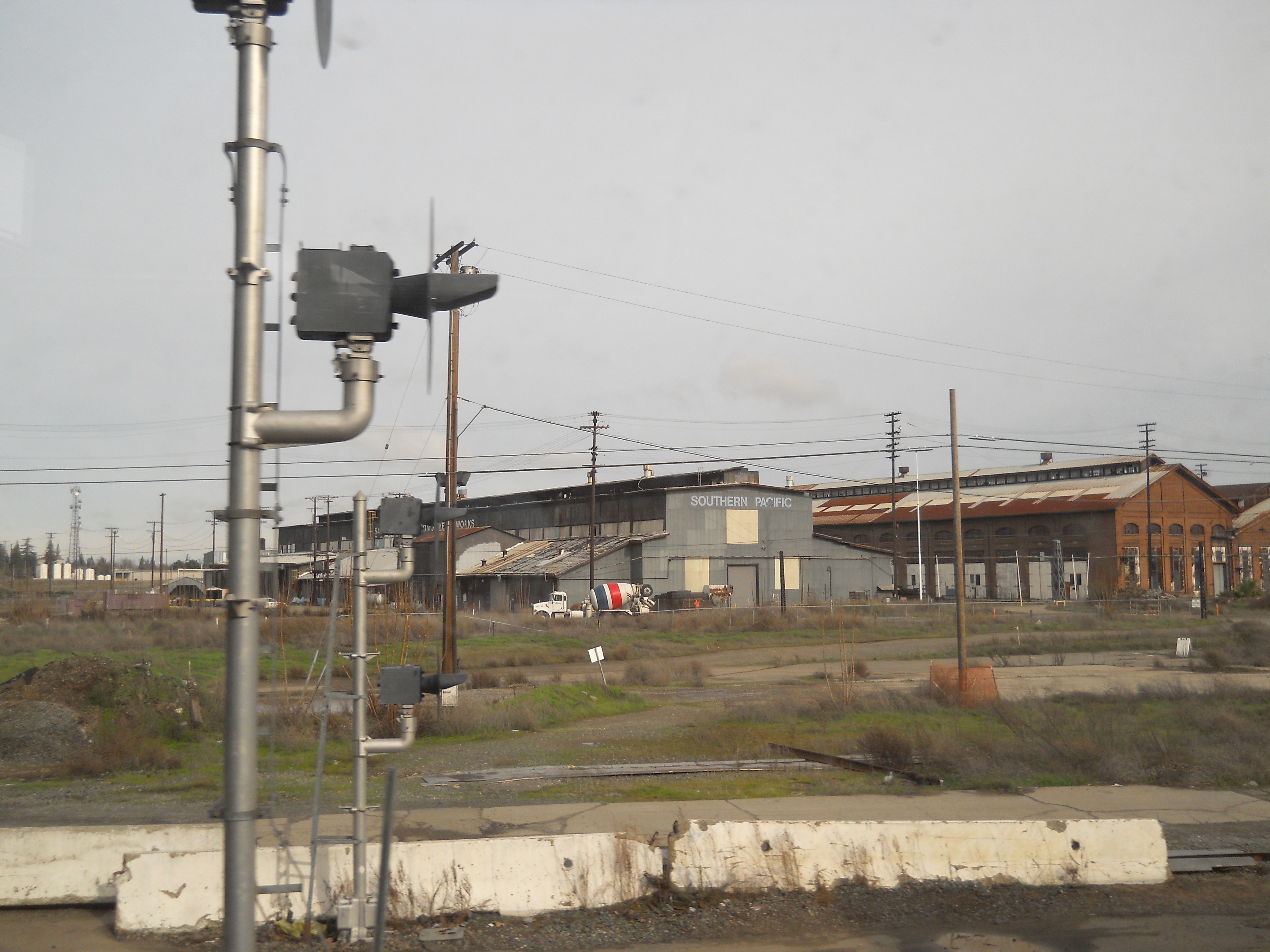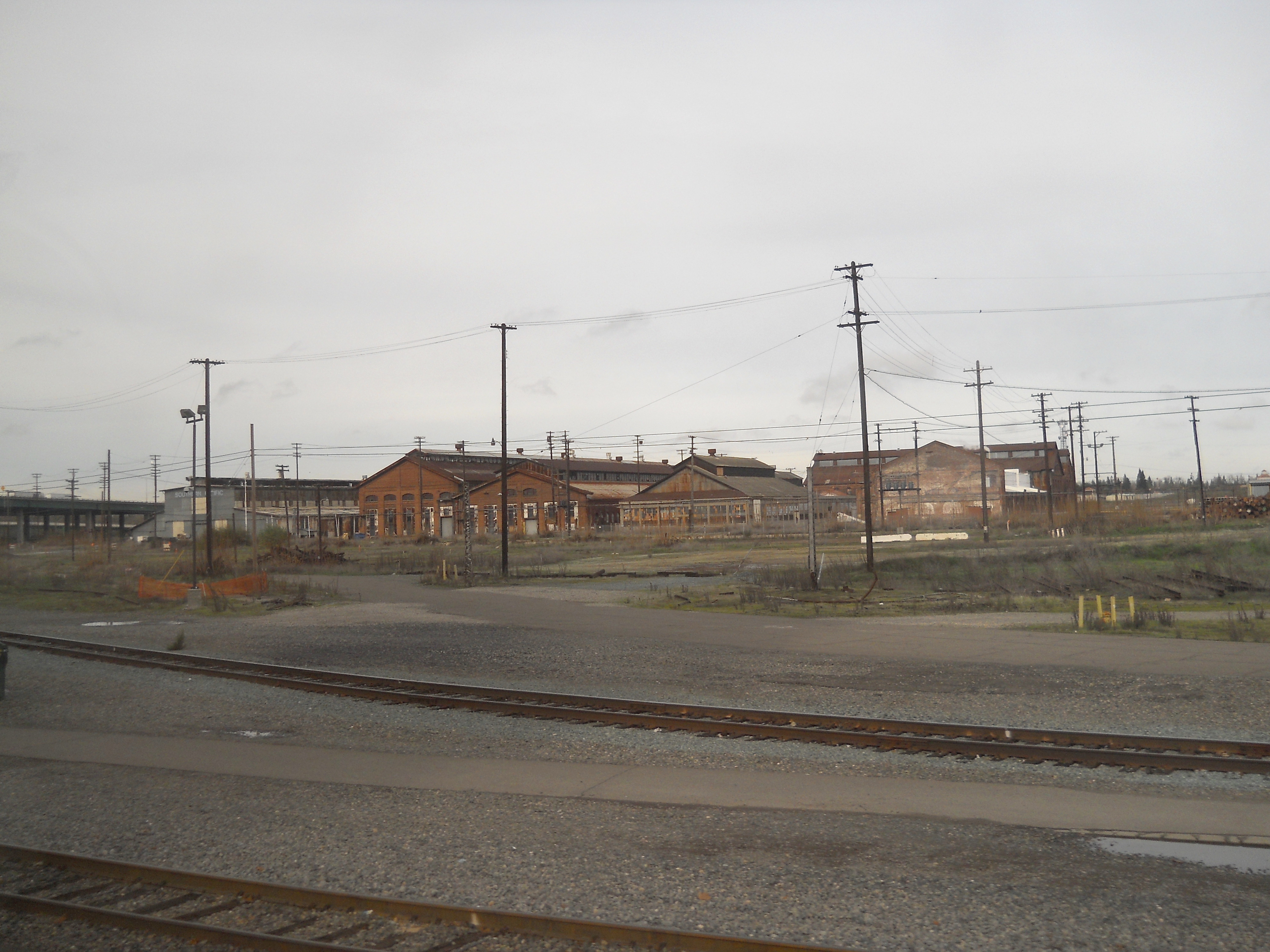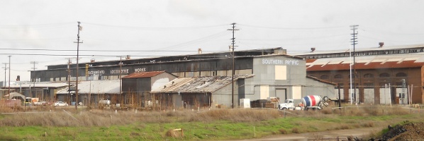 Just north of the Sacramento station are the eight surviving buildings from a massive maintenance facility for the Southern Pacific and Central Pacific Railways. The Central Pacific first began using the site in 1863 and at its height in the 1930s the site had over 90 buildings on 200 acres. Steam locomotives required constant maintenance to stay in operating condition and this was the primary activity on this site, although there was some new construction as well. The facility remained in operation until 1999 and future plans for the site include a museum and high speed rail station.