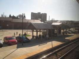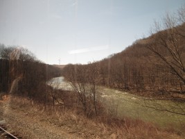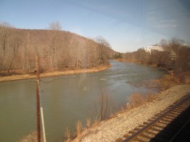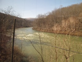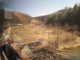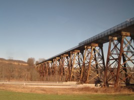 Connellsville was founded in 1793 and later became a major center for coal mining. The Great Allegheny Passage, is a rail-trail that runs between Pittsburg and Cumberland, MD. It is based on an abandoned roadbed that runs parallel (usually to the south) of the former Baltimore and Ohio RR line which became part of CSX and which is the line used by Amtrak for the Capitol Limited. Between Connellsville and Cumberland, the trail runs on the abandoned Connellsville subdivision of the defunct Western Maryland Railway, and portions of that trail are occasionally visible from the Capitol Limited.