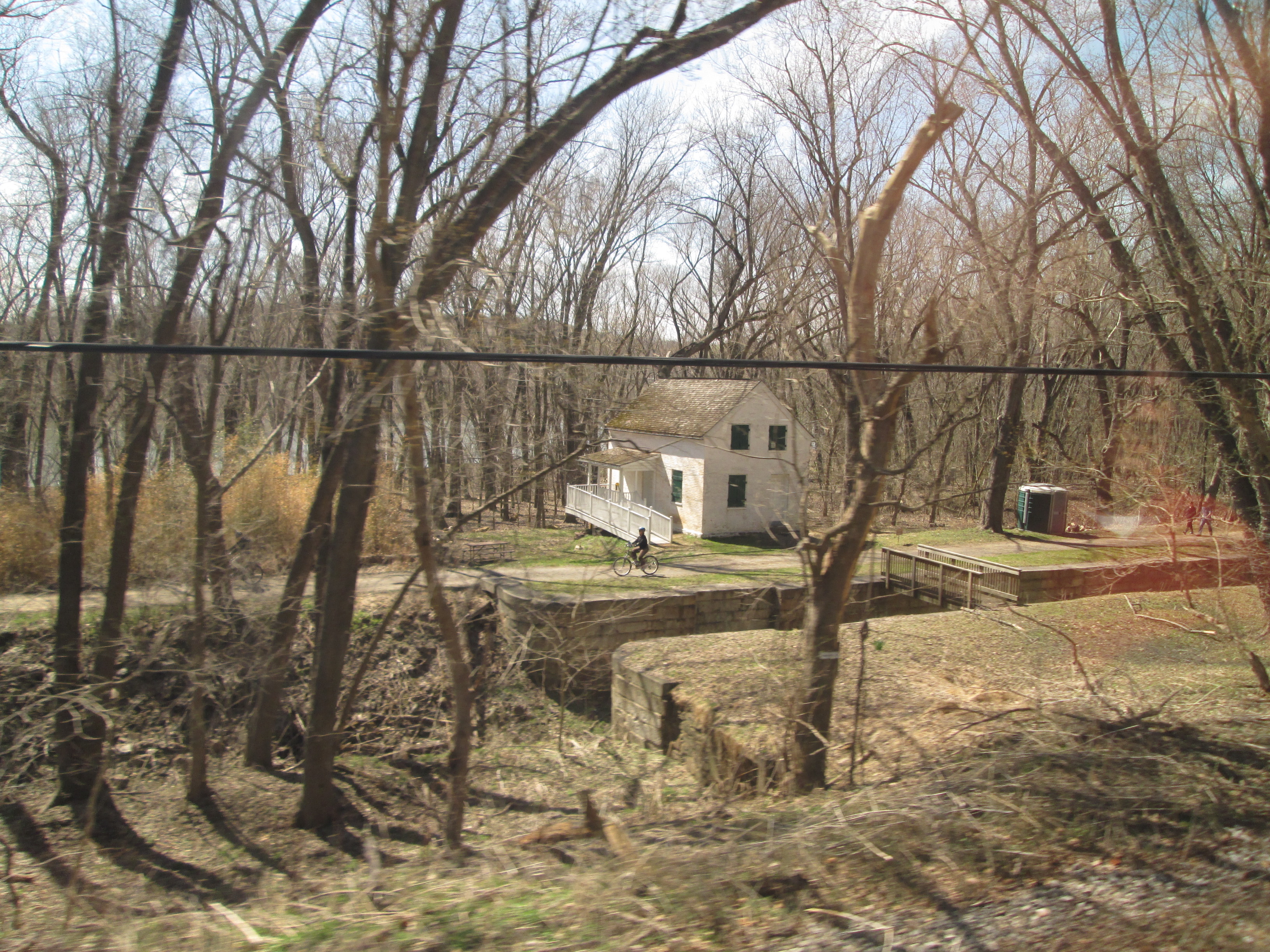 Construction of the 185-mile Chesapeake and Ohio Canal began in 1828 and portions of the canal were in operation from 1830 until declining traffic and a major flood led to abandonment in 1924. The canal was transferred to the federal government in 1938 and partially used for recreational purposes. The facility became a national park in 1971. Remnants of the canal and towpaths are visible alongside the tracks from Point of Rocks to Harper\'s Ferry.