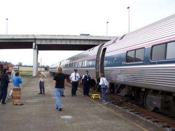 Meridian became a major rail junction in the mid 19th century and a Mission Revival Style depot was built here in 1906. It was almost entirely demolished in the late 1940s and in 1966. In 1991, the city was awarded $5.1 million in federal ISTEA funds to reconstruct the depot as a multimodal facility, which was dedicated on 11 December 1997.