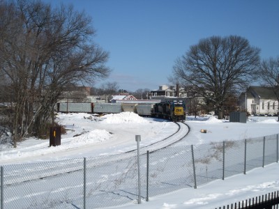 CSX freight from railyard north of the station