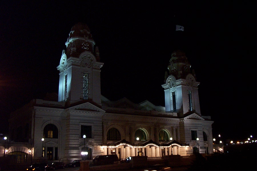 Worcester Union Station is a French Renaissance styled station built by the New York Central Railroad on the Boston and Albany Railroad main line. The station also provided service for the Providence and Worcester Railroad; Norwich and Worcester Railroad; Worcester, Nashua and Rochester Railroad; and the Boston, Barre and Gardner Railroad. The station stayed in continuous operation until the debut of Amtrak, which abandoned the station for a small brick Amshack to the east. In 1992 the non-profit Union Station Alliance began raising funds for restoration. The Worcester Redevelopment Authority acquired the property in 1994, with a subsequent $32.2MM restoration of the building to it's original condition with a reopening in 2000. The station is a hub for Amtrak and MBTA commuter train service as well as intra- and inter-city bus service. I got one photo of the station when picking up a replacement cast member on tour in 2002.