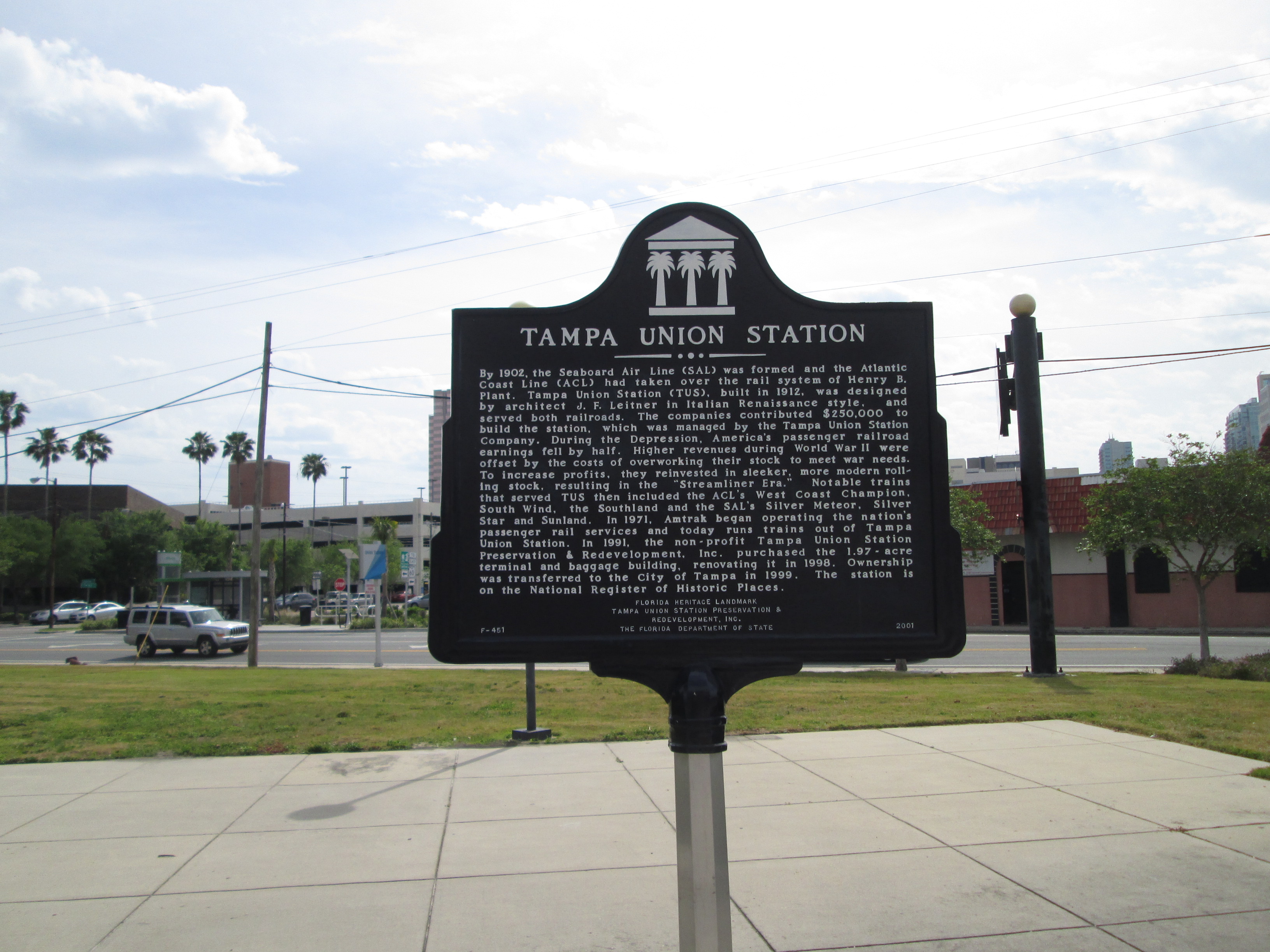 Tampa Union Station is an Italian Renaissance building that served the Atlantic Coast Line, the Seaboard Air Line, and the Tampa Northern railroads. After deterioration led to closure in 1984, Tampa Union Station Preservation and Redevelopment Corporation raised over $4 million from a variety of sources to restore the facility, which reopened in 1999.