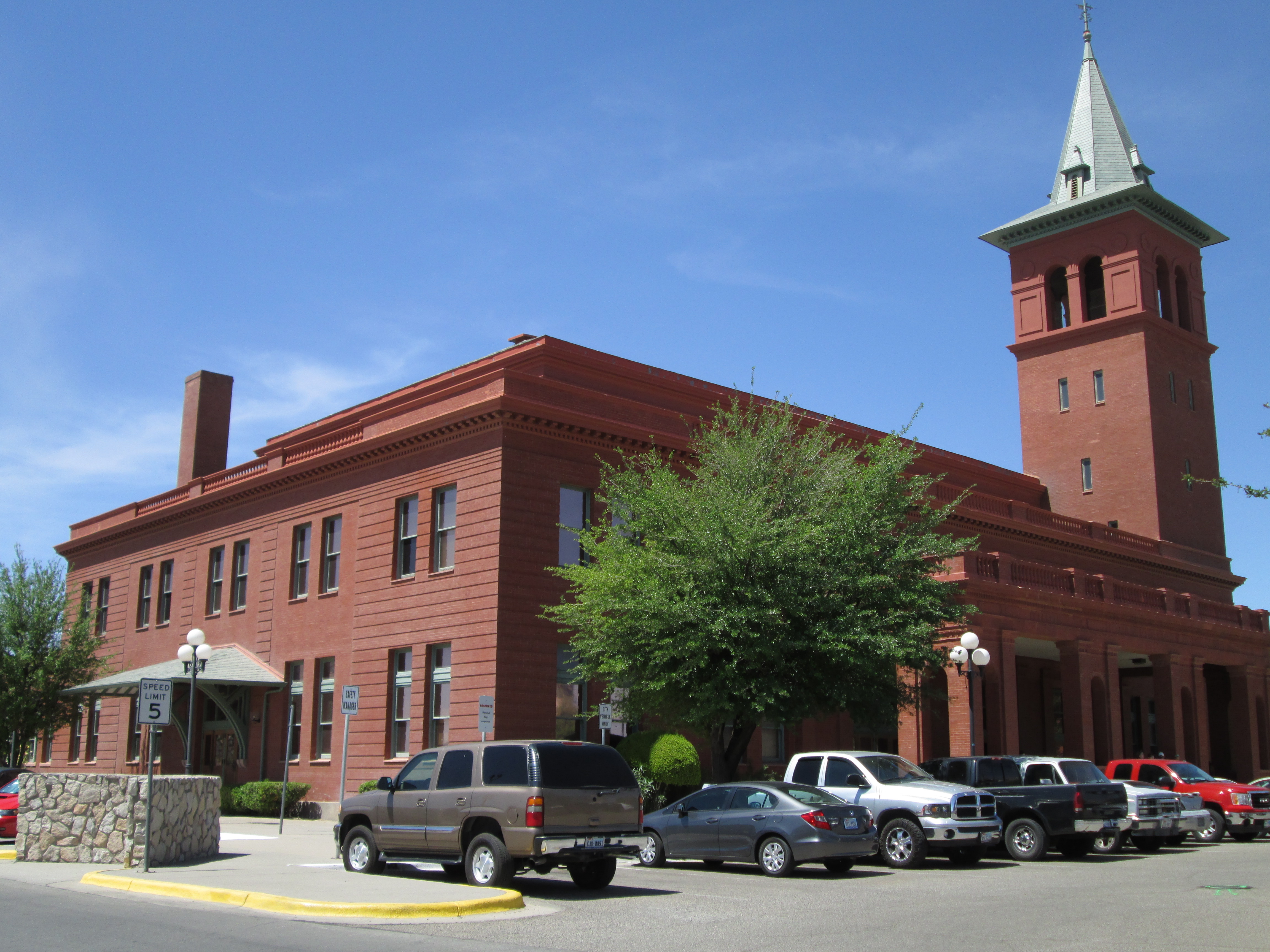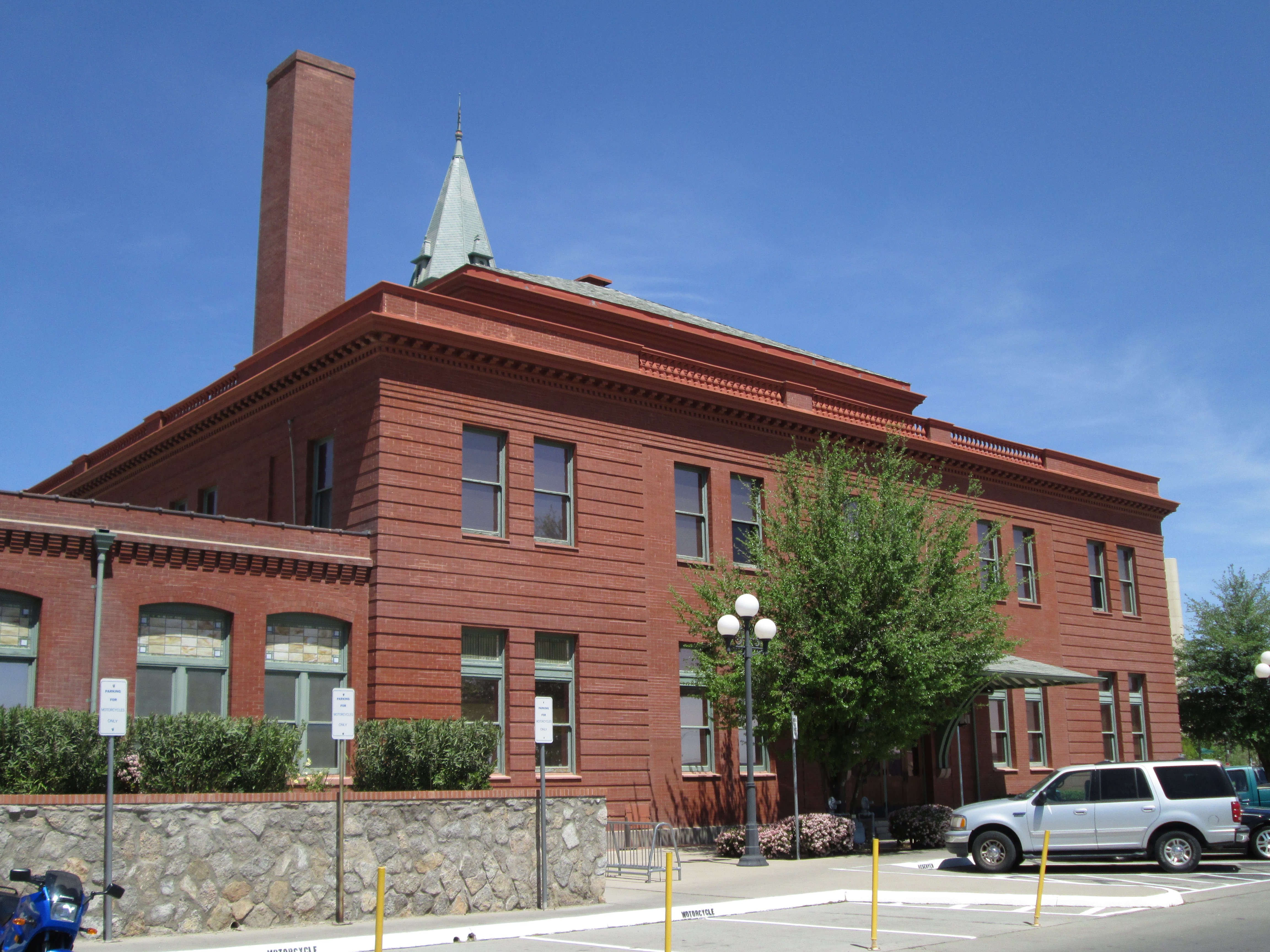 El Paso's Union Passenger Station was designed by famed Chicago architect Daniel Burnham. In 1940 the exterior was remodeled to give it a more "Southwestern look," with the steeple replaced by a small clock tower and the red brick covered in stucco.