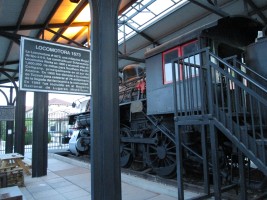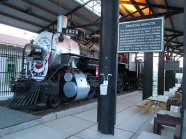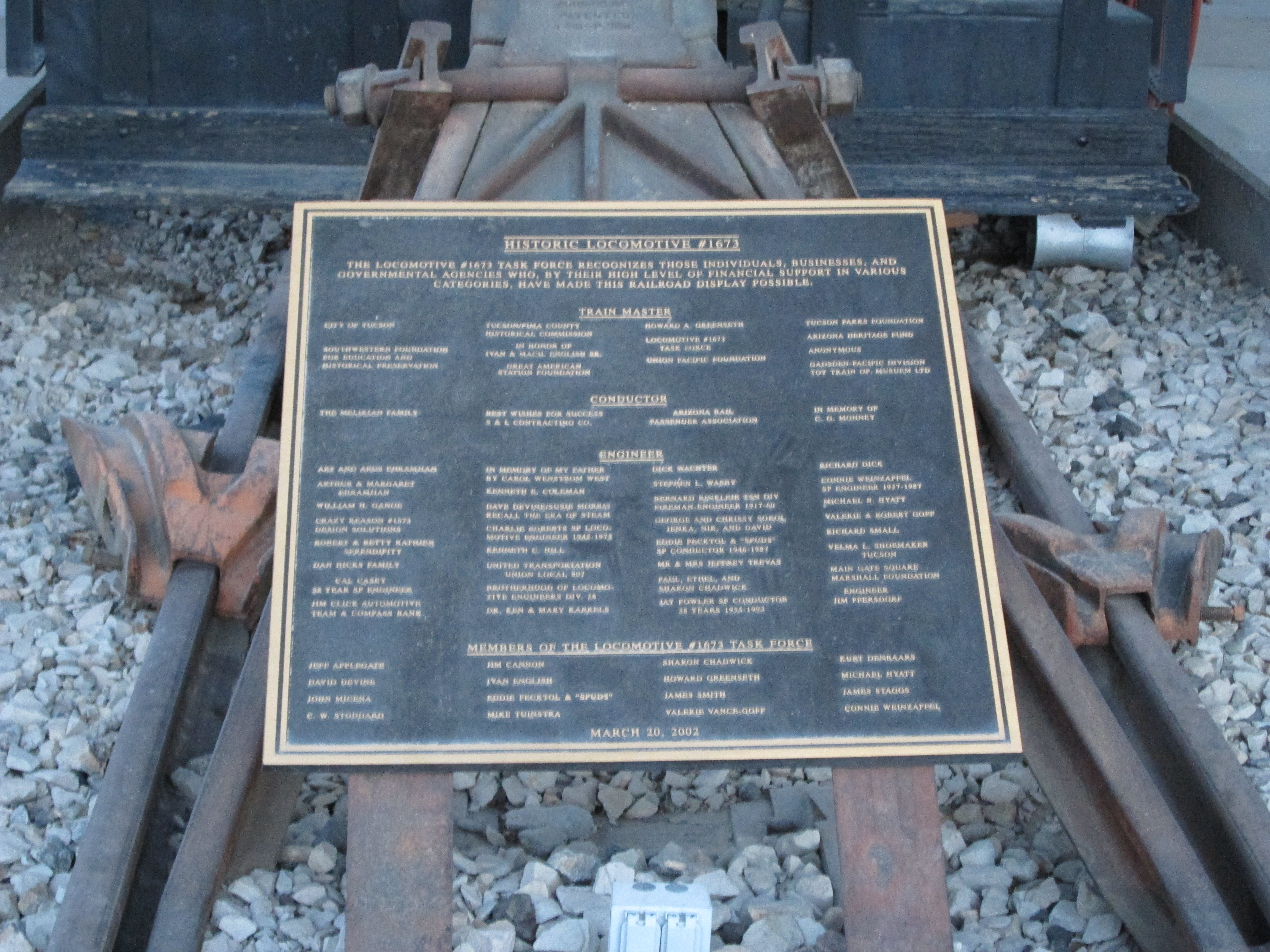 Southern Pacific locomotive 1673 was built by Schenectady Locomotive Works in New York in 1900. The mogul (2-6-2) weighed 73 tons and was converted to burn oil in 1906. This locomotive reputedly was used in the filming of the movie Oklahoma in 1954 before being retired the following year. (ref)