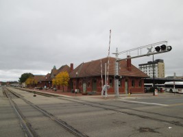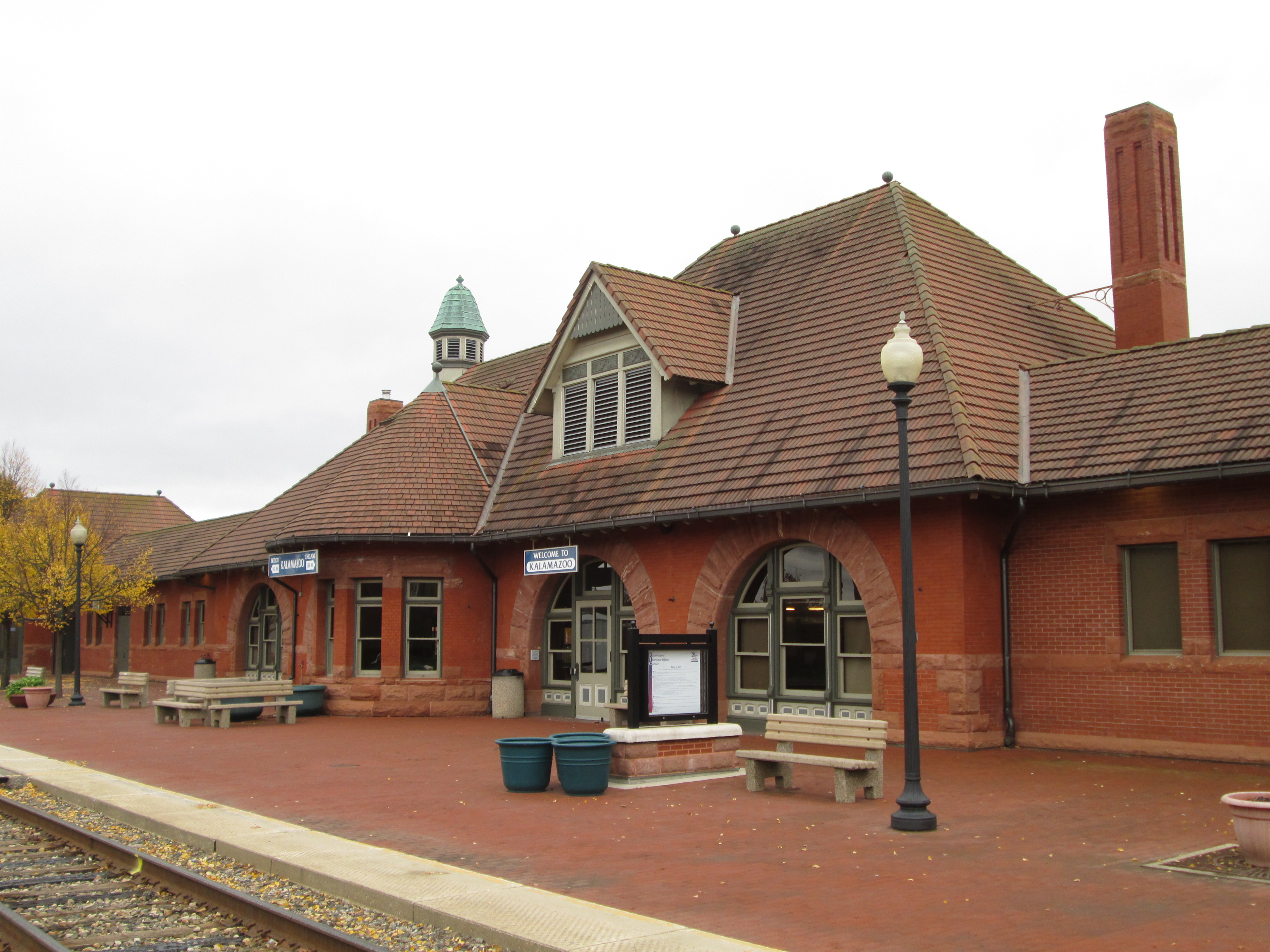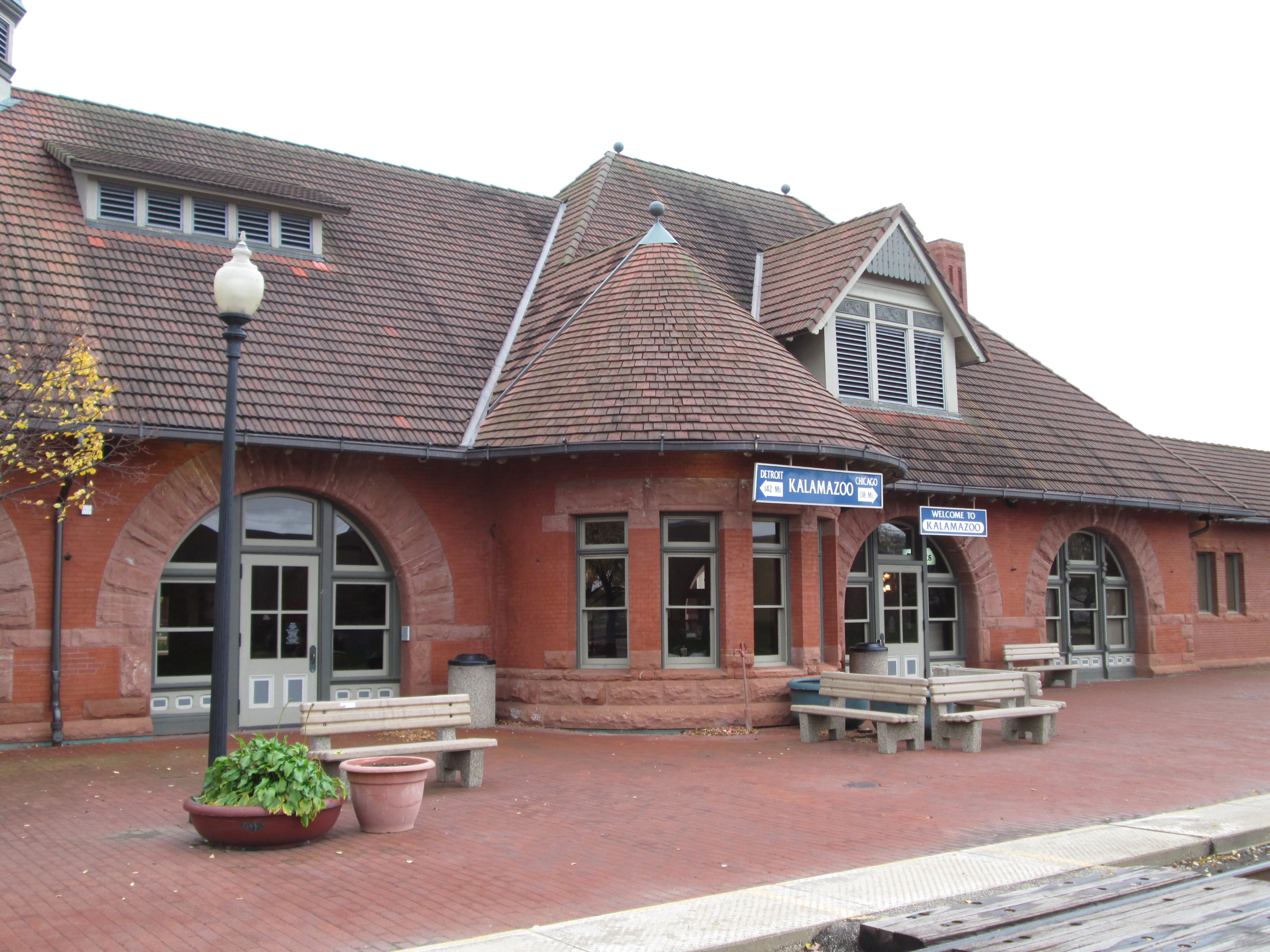 Richardson Romanesque structure built by the Michigan Central Railroad as three separate buildings. Underwent a $13M restoration and reconstruction for use as an intermodal hub that opened in 2006. The Michigan Central Railroad arrived in Kalamazoo in 1846, followed by the Lake Shore (1867), Grand Rapids and Indiana (1870), South Haven (1870), and the Fruit Belt (1906). In 1912, 75 passenger trains departed Kalamazoo daily.
