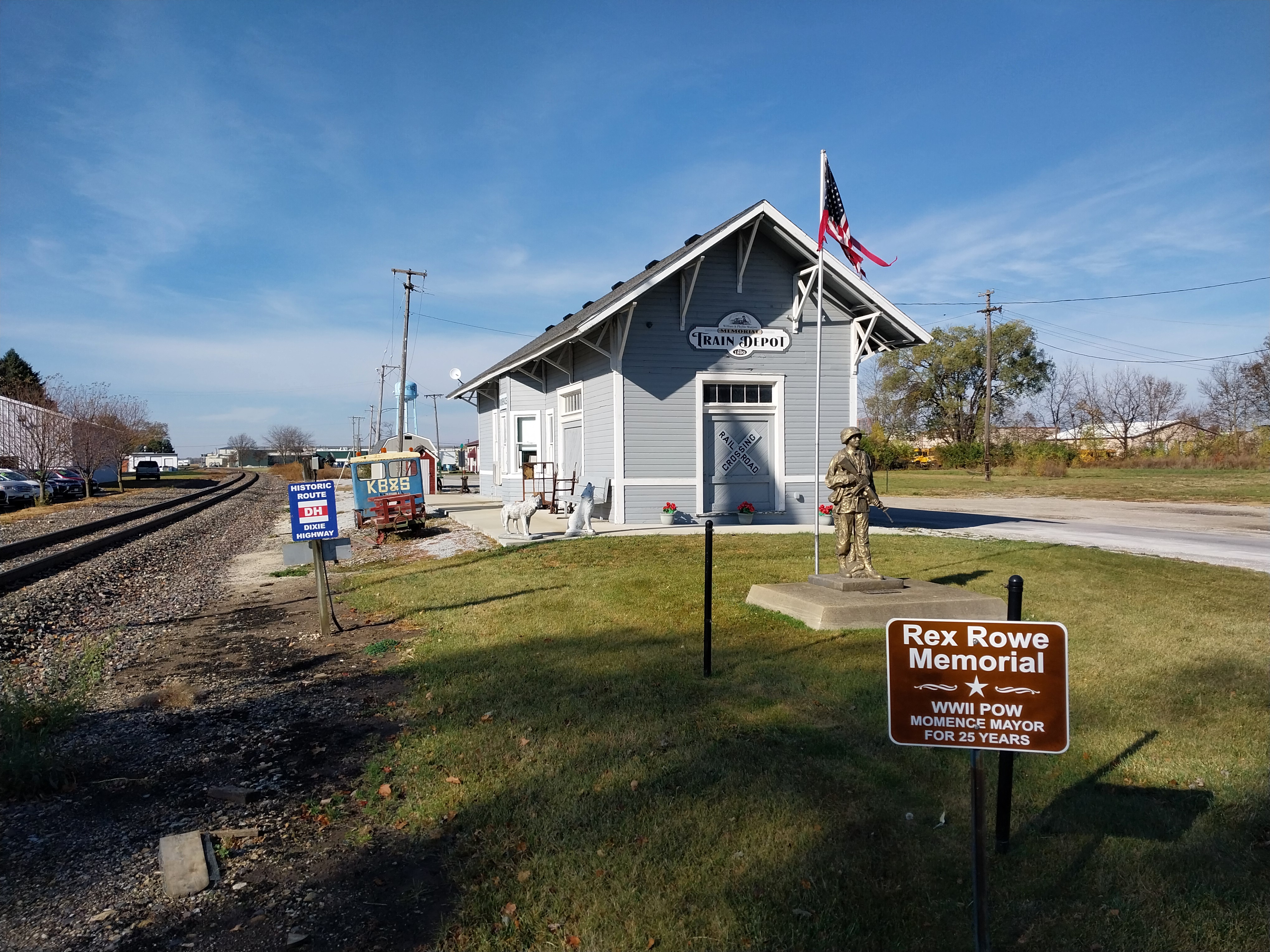 The building served as a depot from 1890 to the 1950s for the Chicago, Indiana and Southern Railroad and the New York Central lines. Restored in 2001 under private ownership.