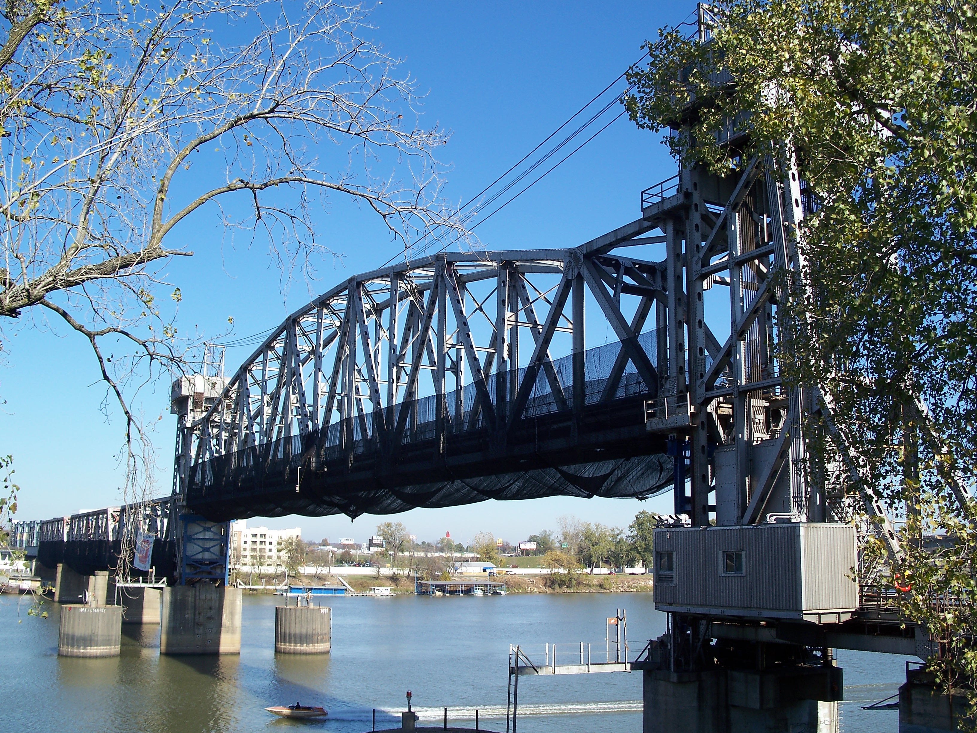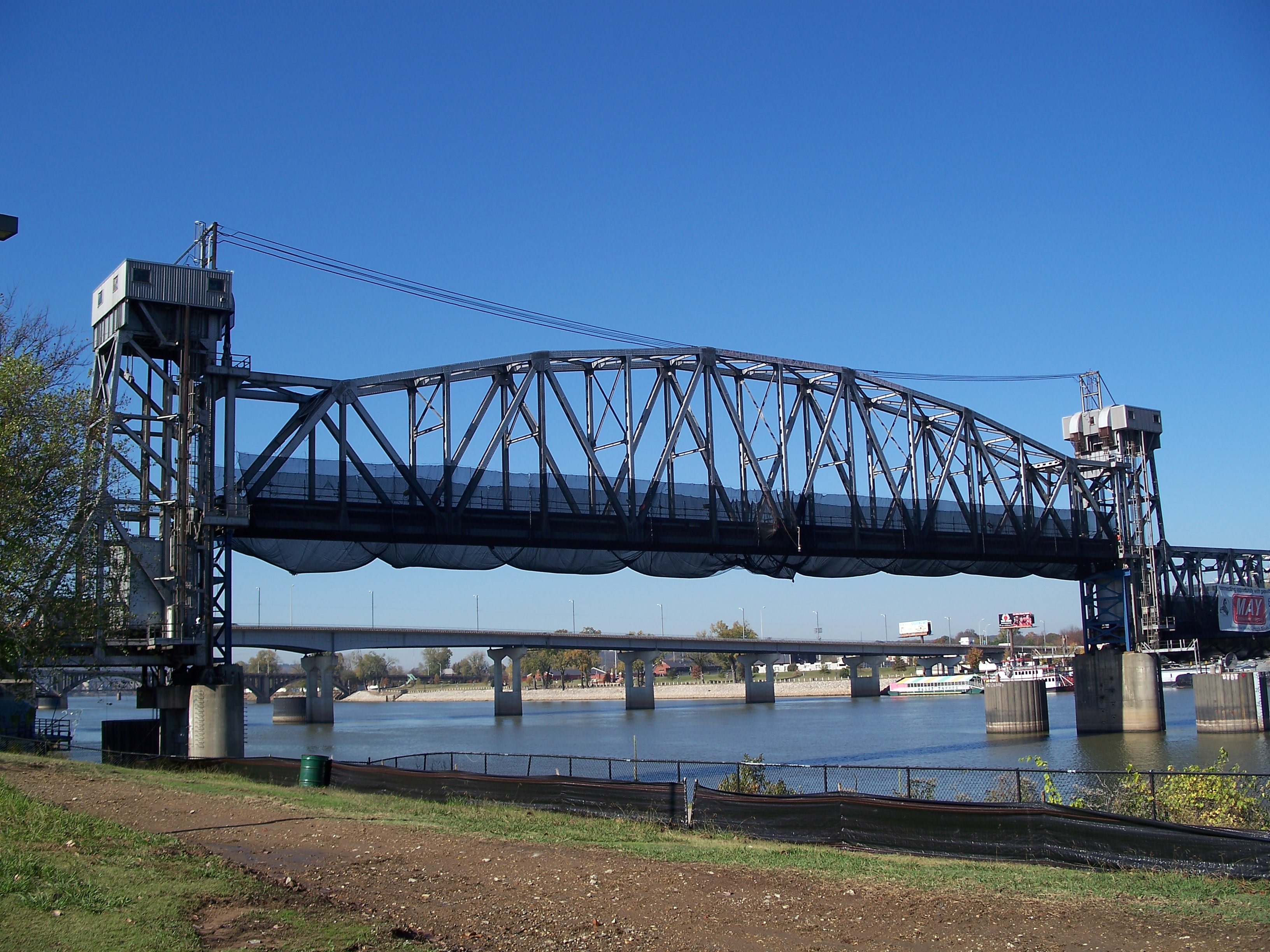 The Junction Railroad Bridge was built by the Union Pacific Railroad sometime in the early 20th century. The Junction Bridge carried trains across the Arkansas River until being decommissioned in 1984. When I visited in 2007, it was at the beginning of a conversion into a pedestrian walkway across the Arkansas River, connecting the renewed downtown with North Little Rock and the arena on the north side.