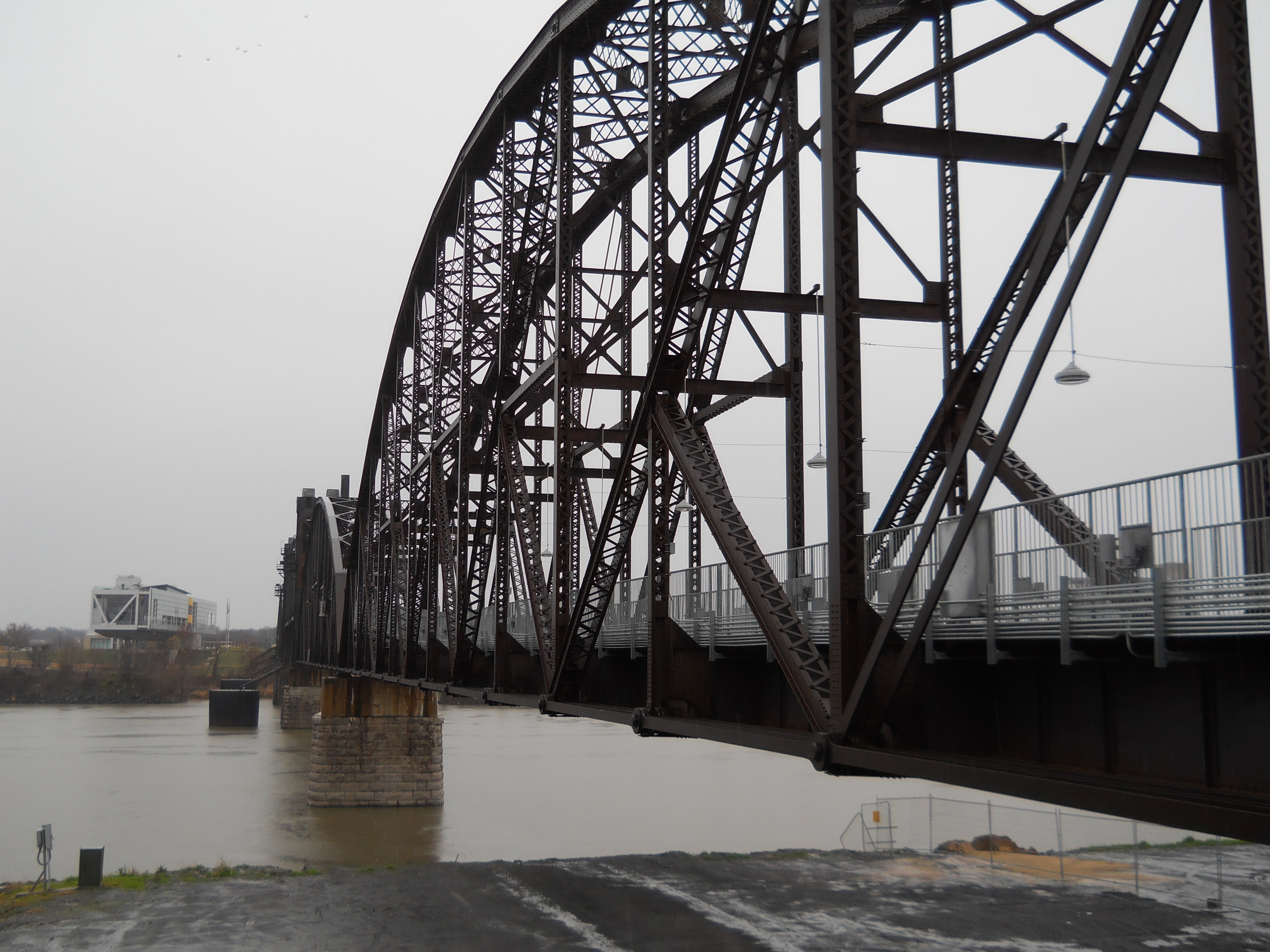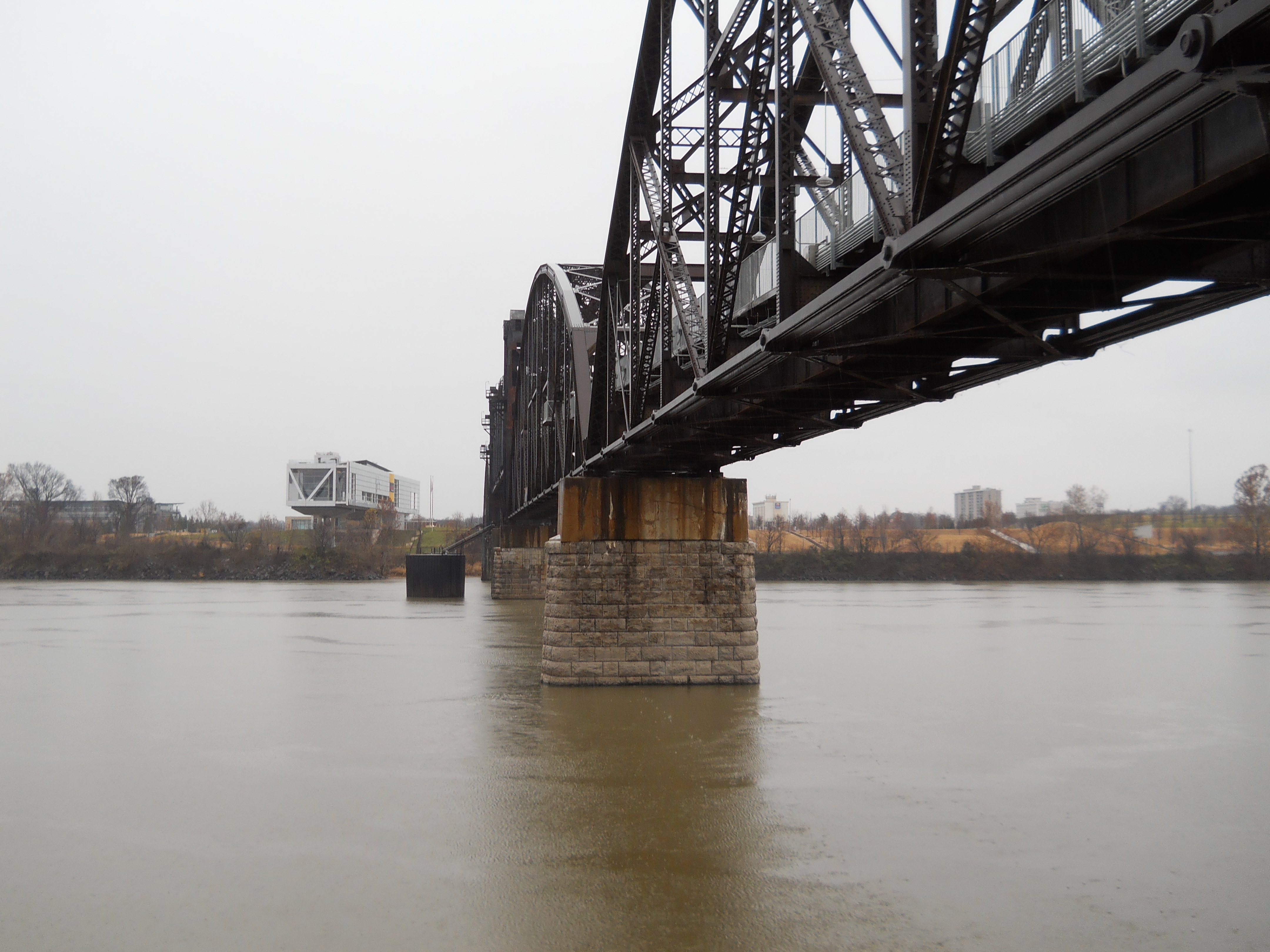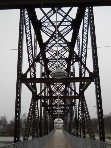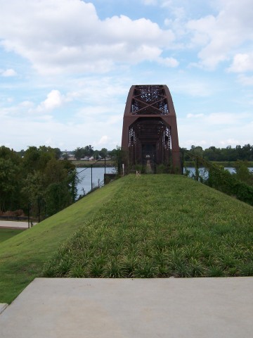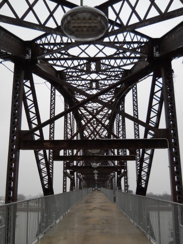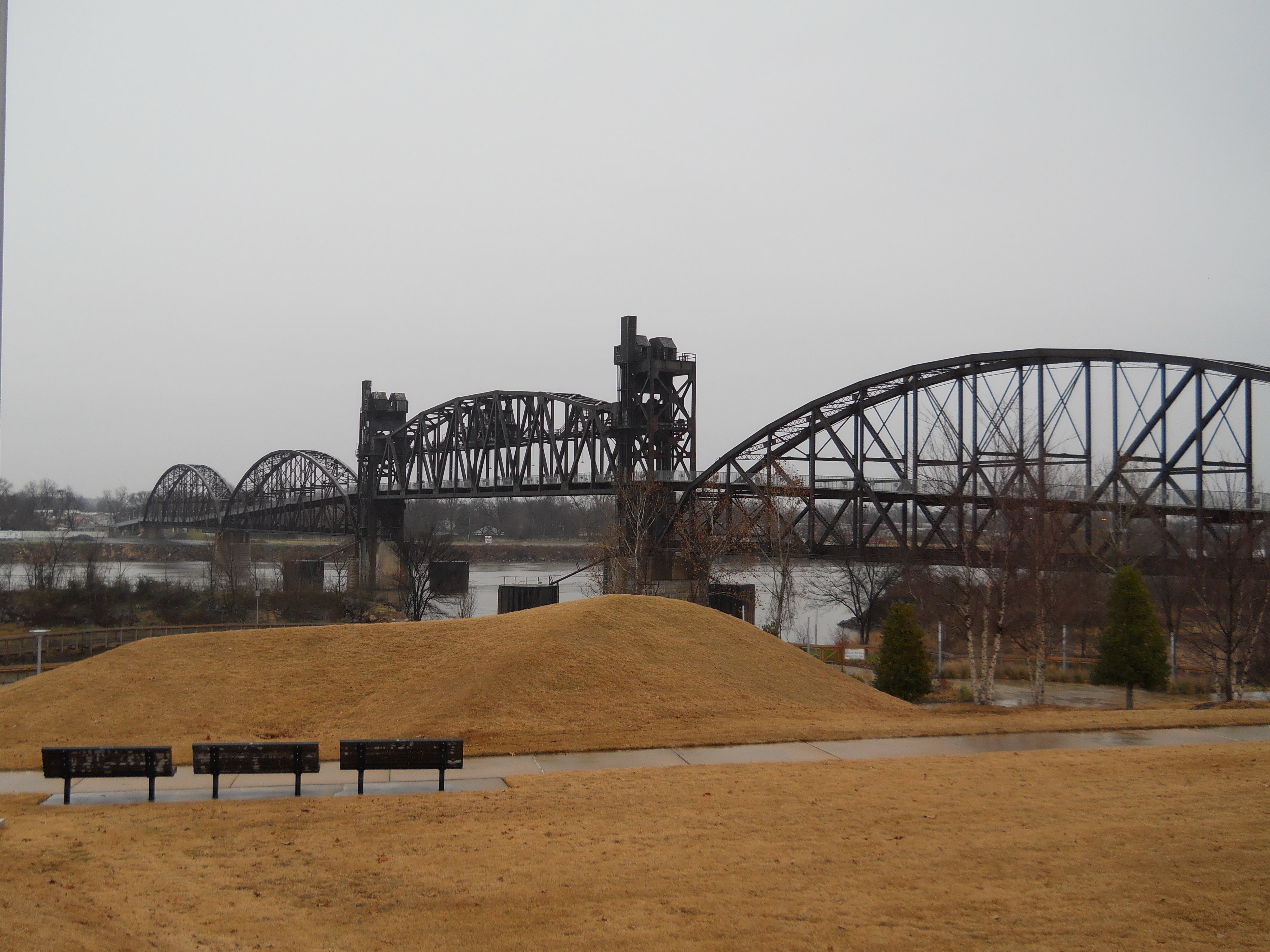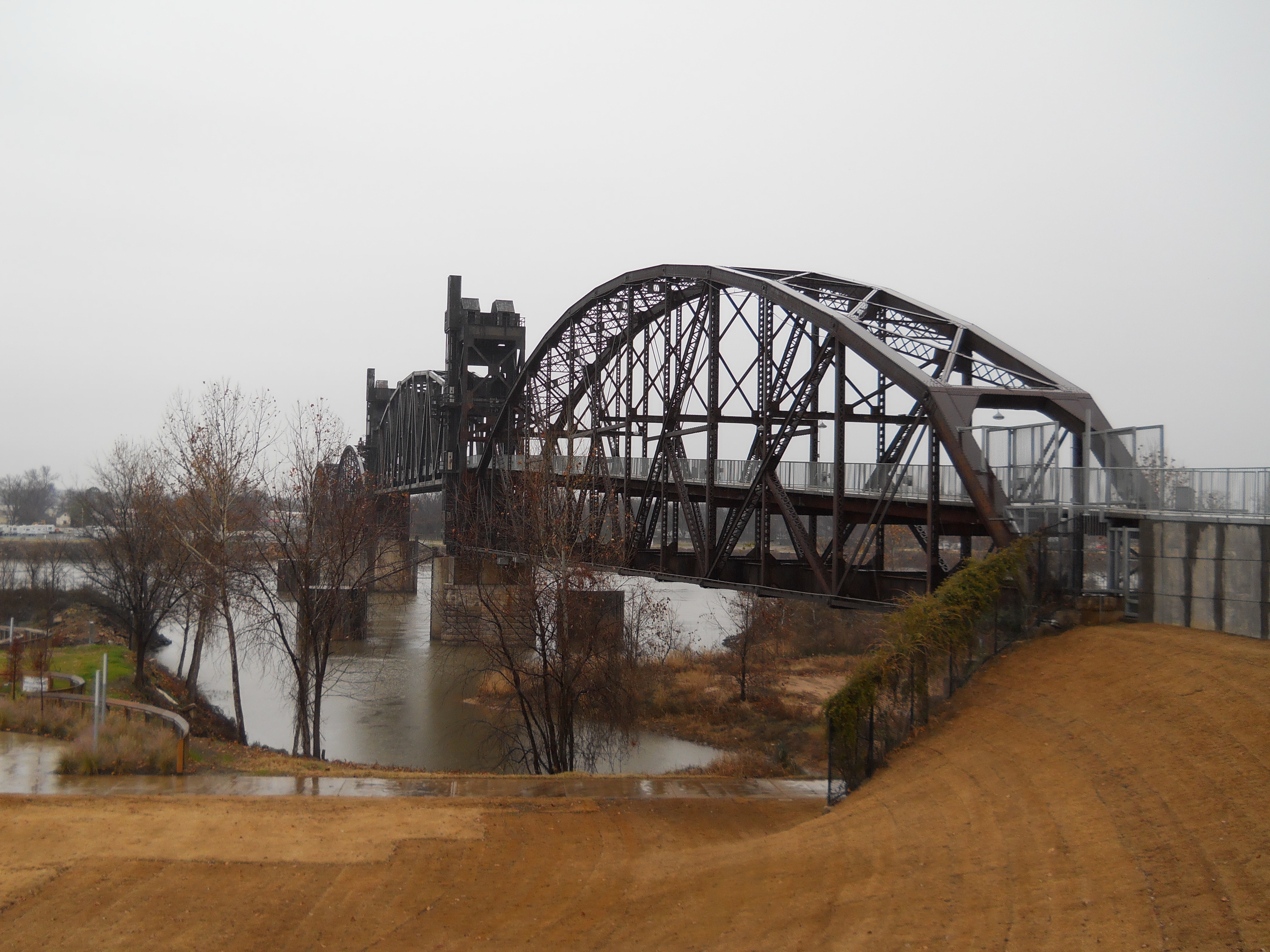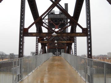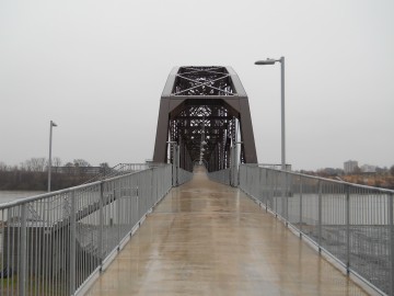 The Rock Island Bridge is an attractive through-truss vertical-lift railroad bridge over the Arkansas River near the Clinton Presidential Library. It was built 1899 by the Choctaw and Memphis Railroad but transferred five years later when the Choctaw was acquired by the Chicago, Rock Island and Pacific Railroad. It remained in service until 1980 when the Rock Island was liquidated in bankruptcy and the bridge was acquired by the Union Pacific.