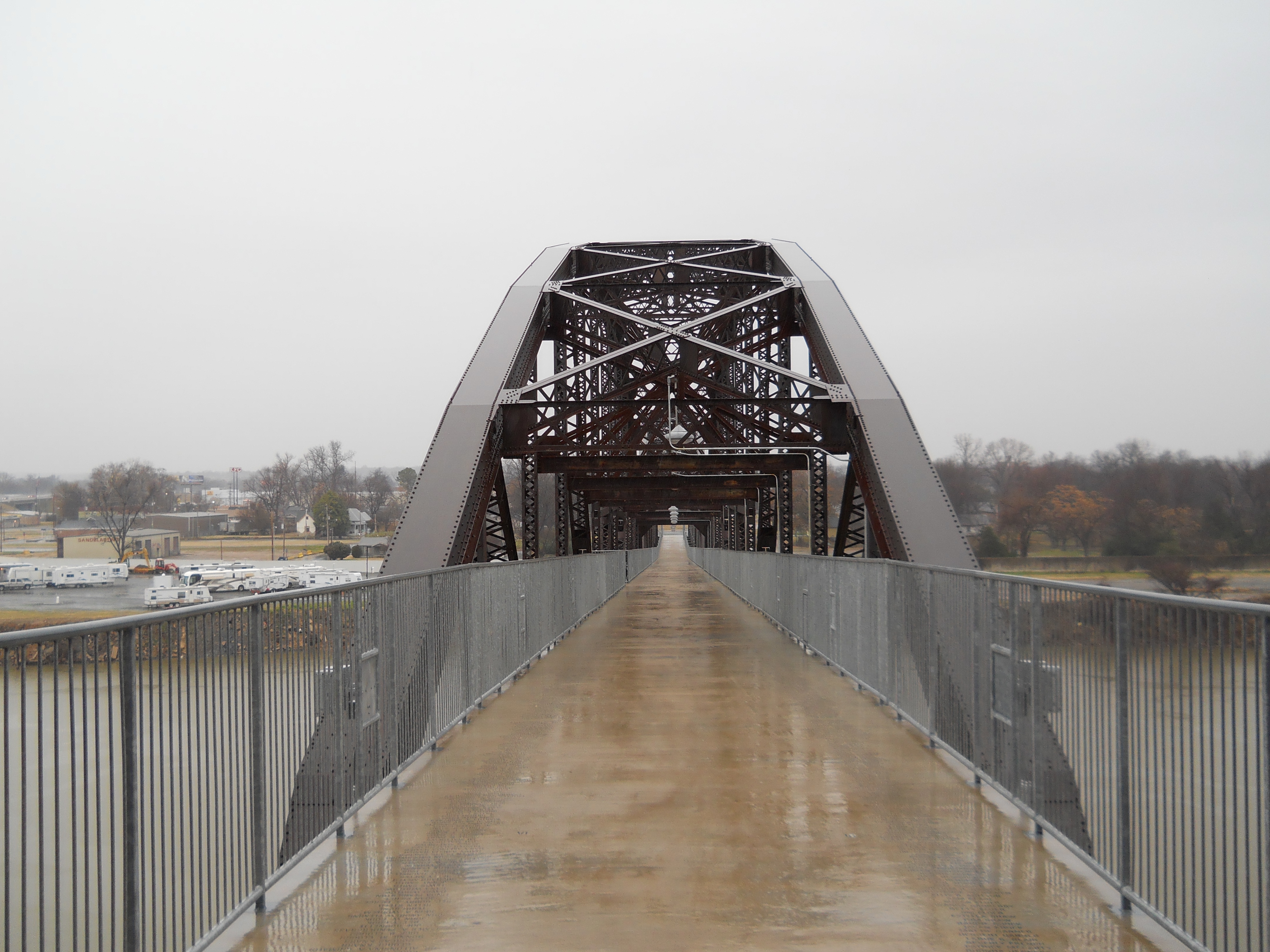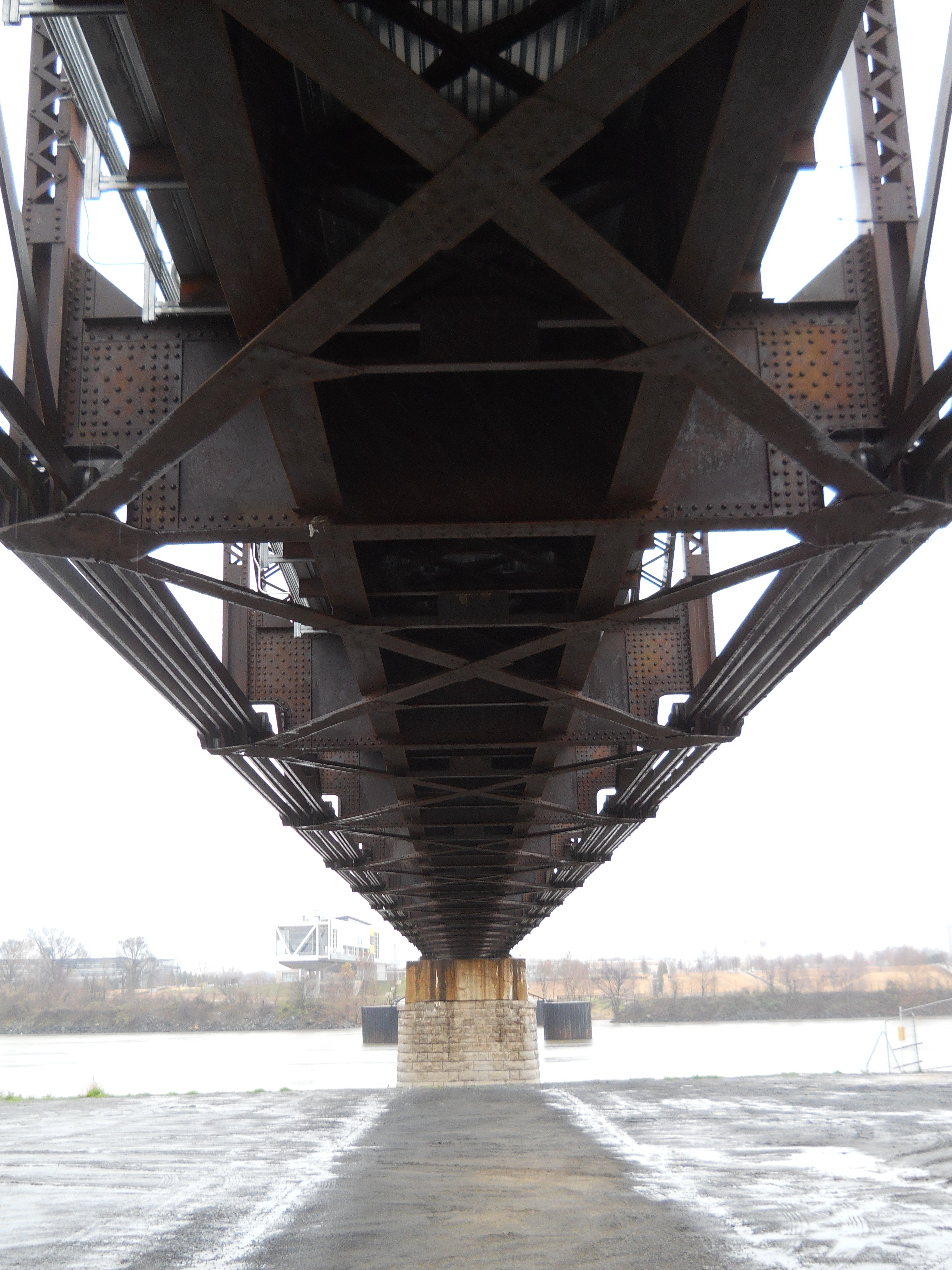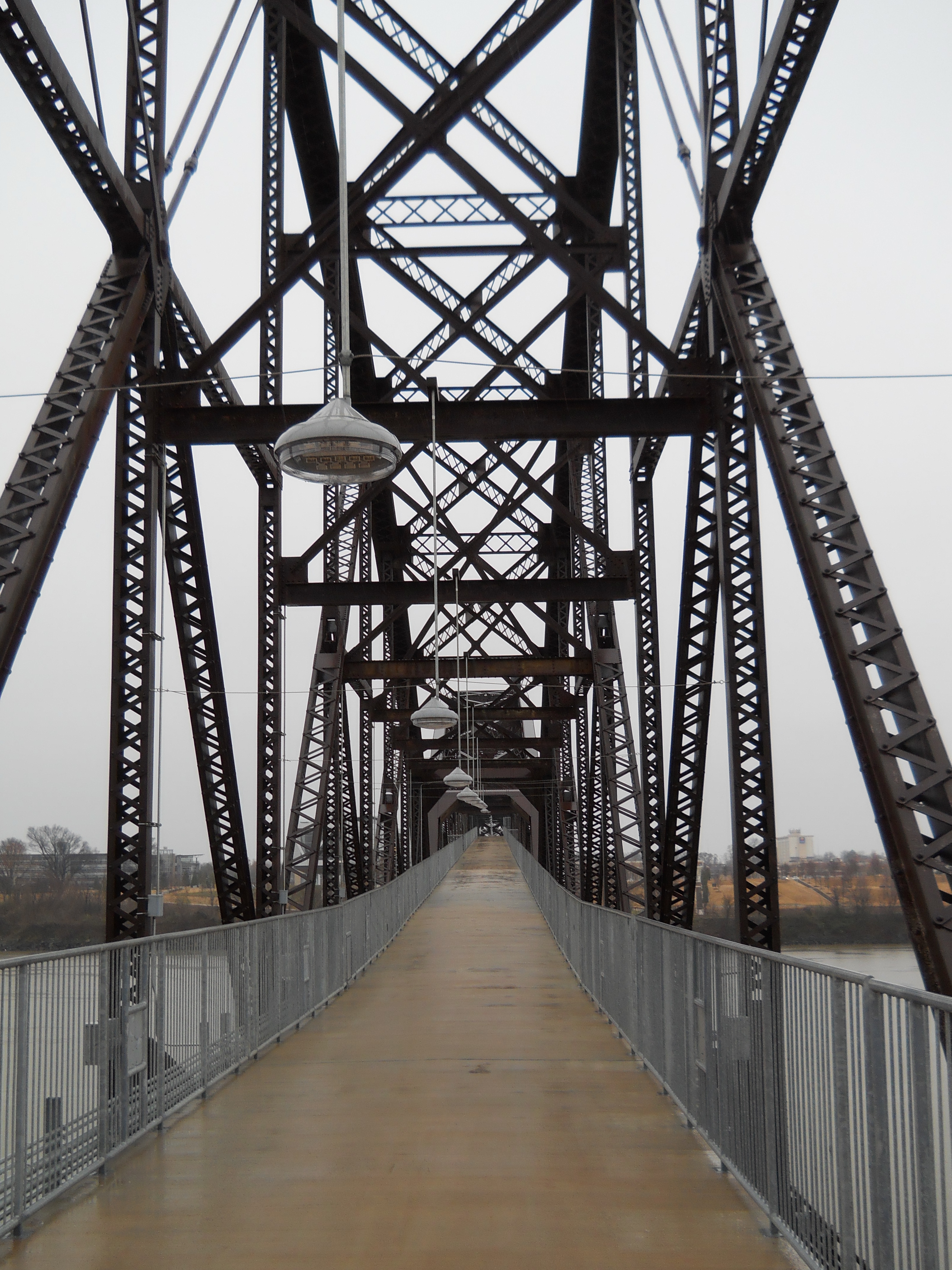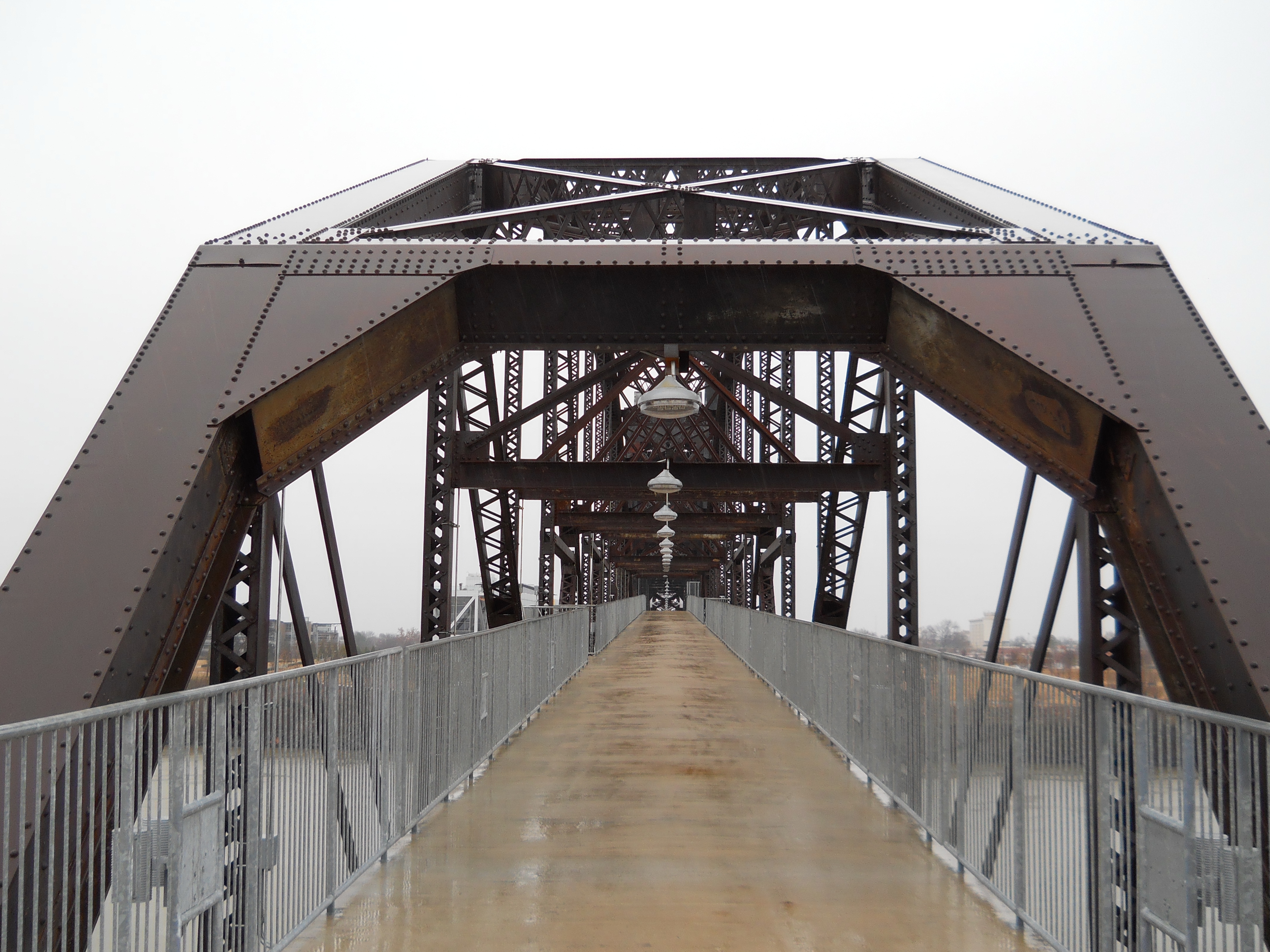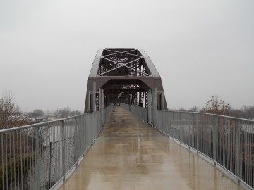 The Rock Island Bridge is an attractive through-truss vertical-lift railroad bridge over the Arkansas River near the Clinton Presidential Library. It was built 1899 by the Choctaw and Memphis Railroad but transferred five years later when the Choctaw was acquired by the Chicago, Rock Island and Pacific Railroad. It remained in service until 1980 when the Rock Island was liquidated in bankruptcy and the bridge was acquired by the Union Pacific.