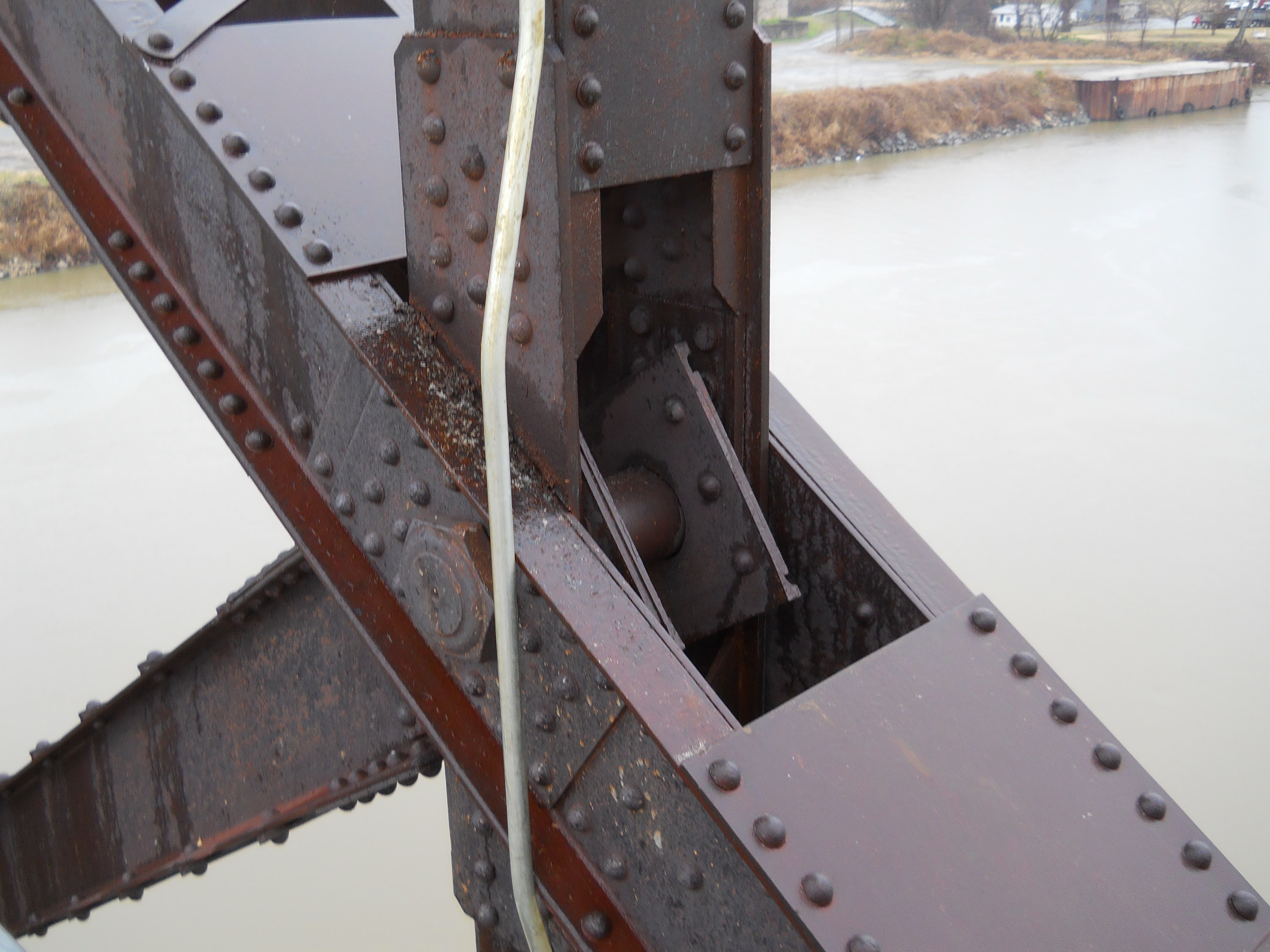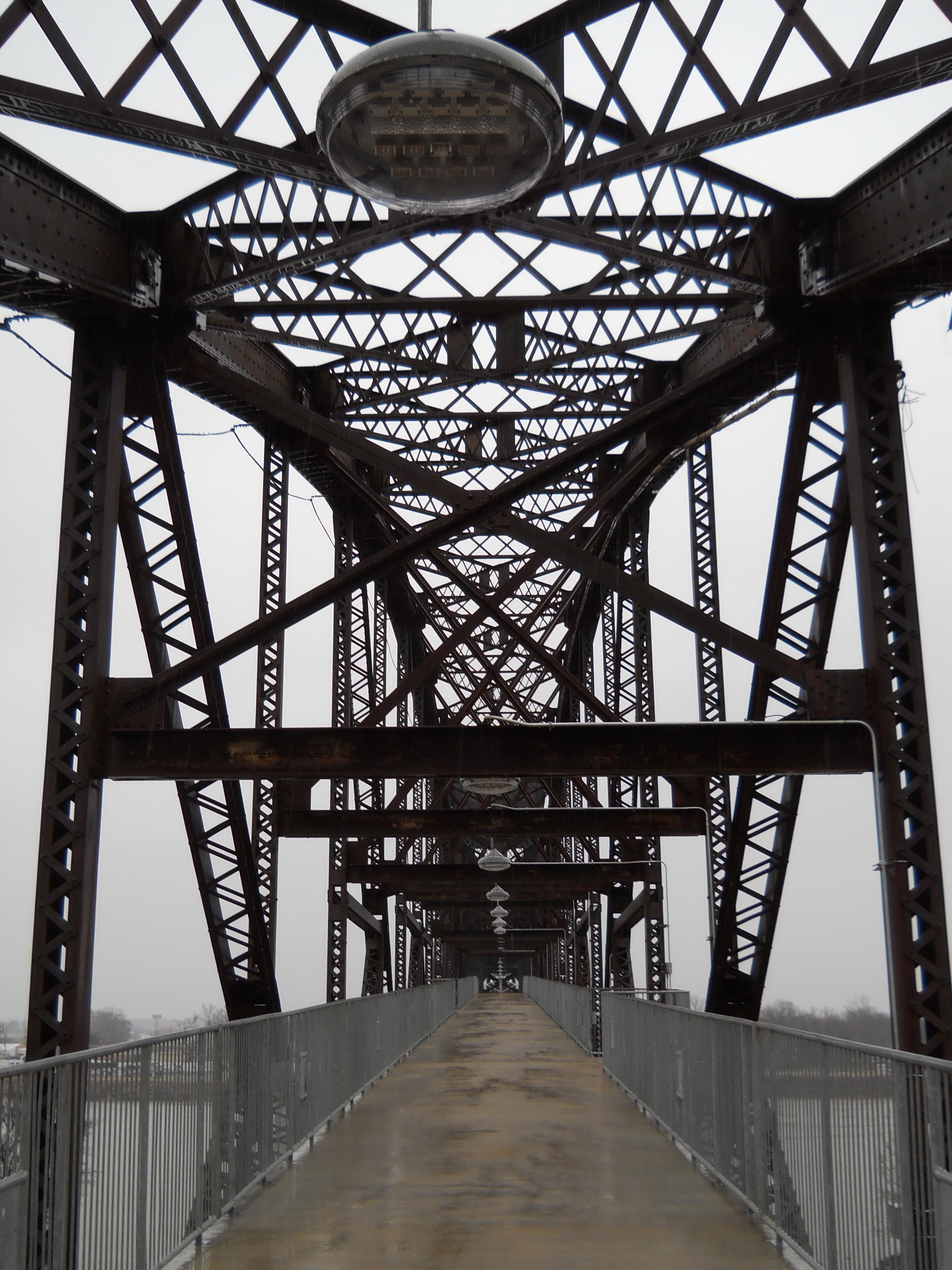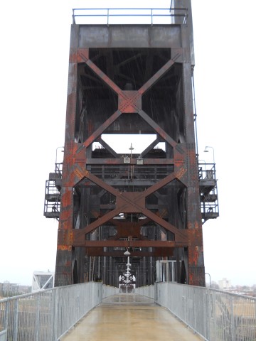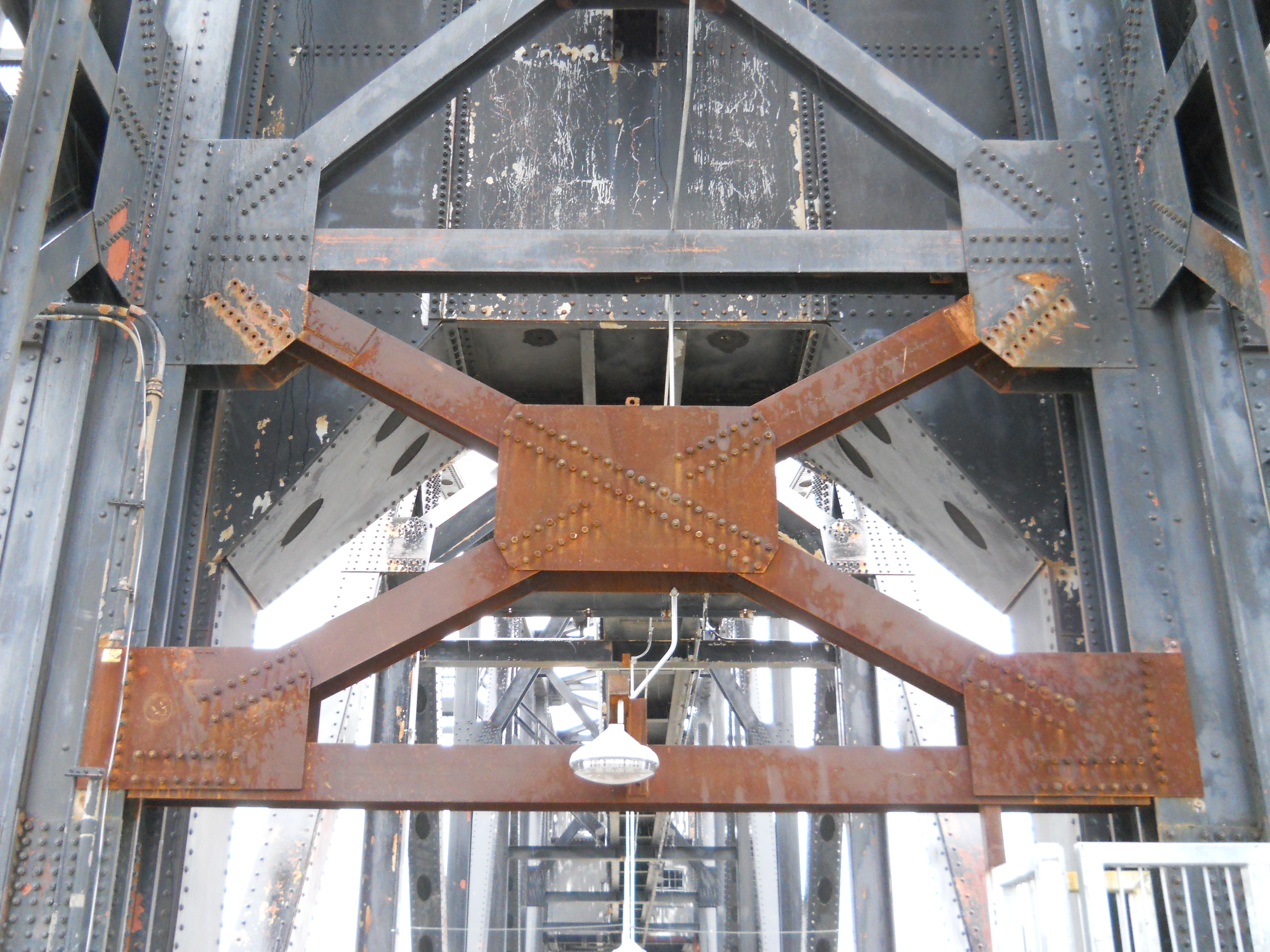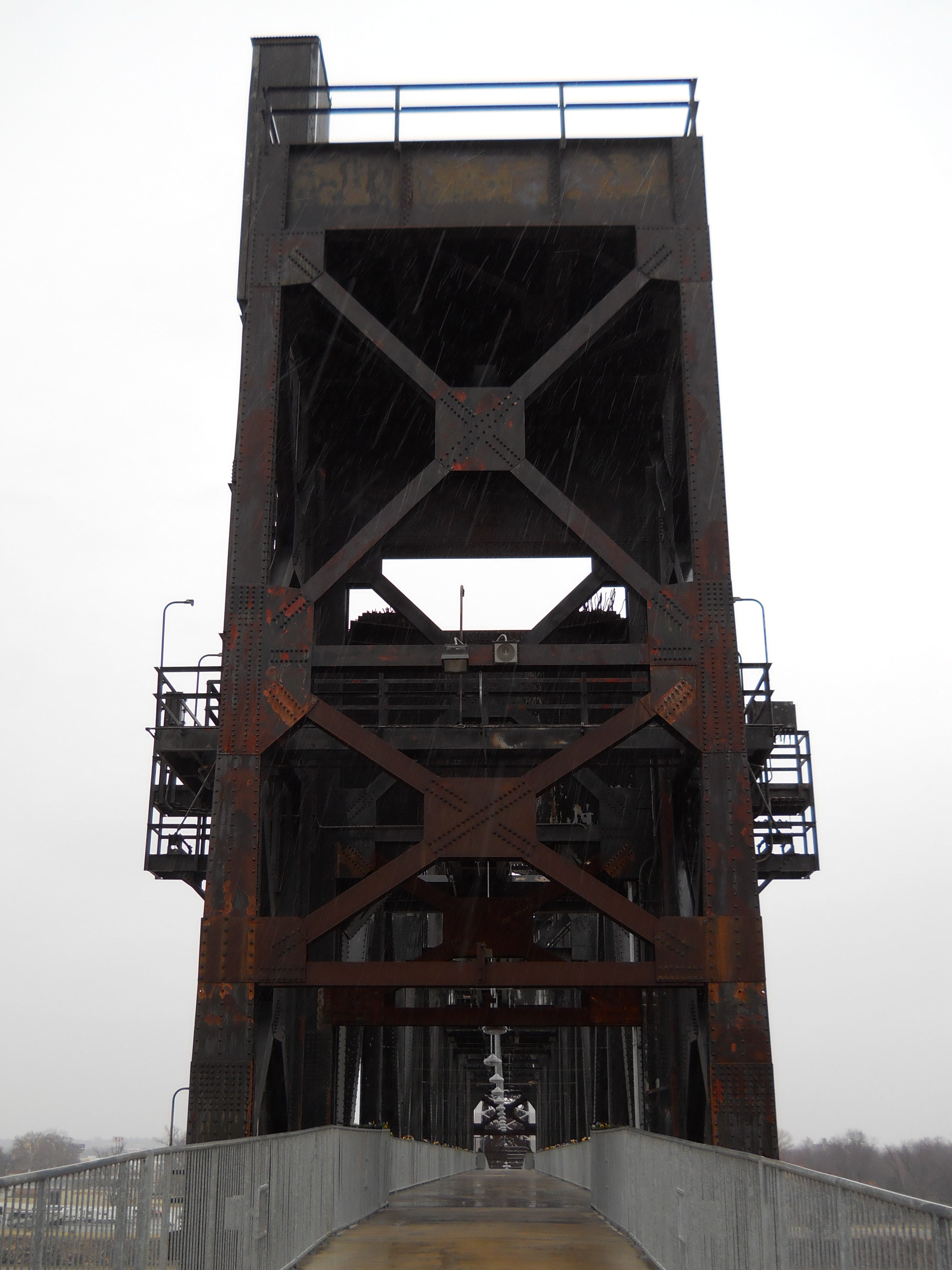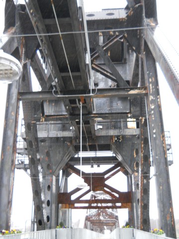 The bridge originally consisted of four 14-panel Pennsylvania through truss spans, for a total length of 1,614 feet. One fixed span was replaced with a 12-panel, polygonal Warren through truss vertical lift span in 1972.