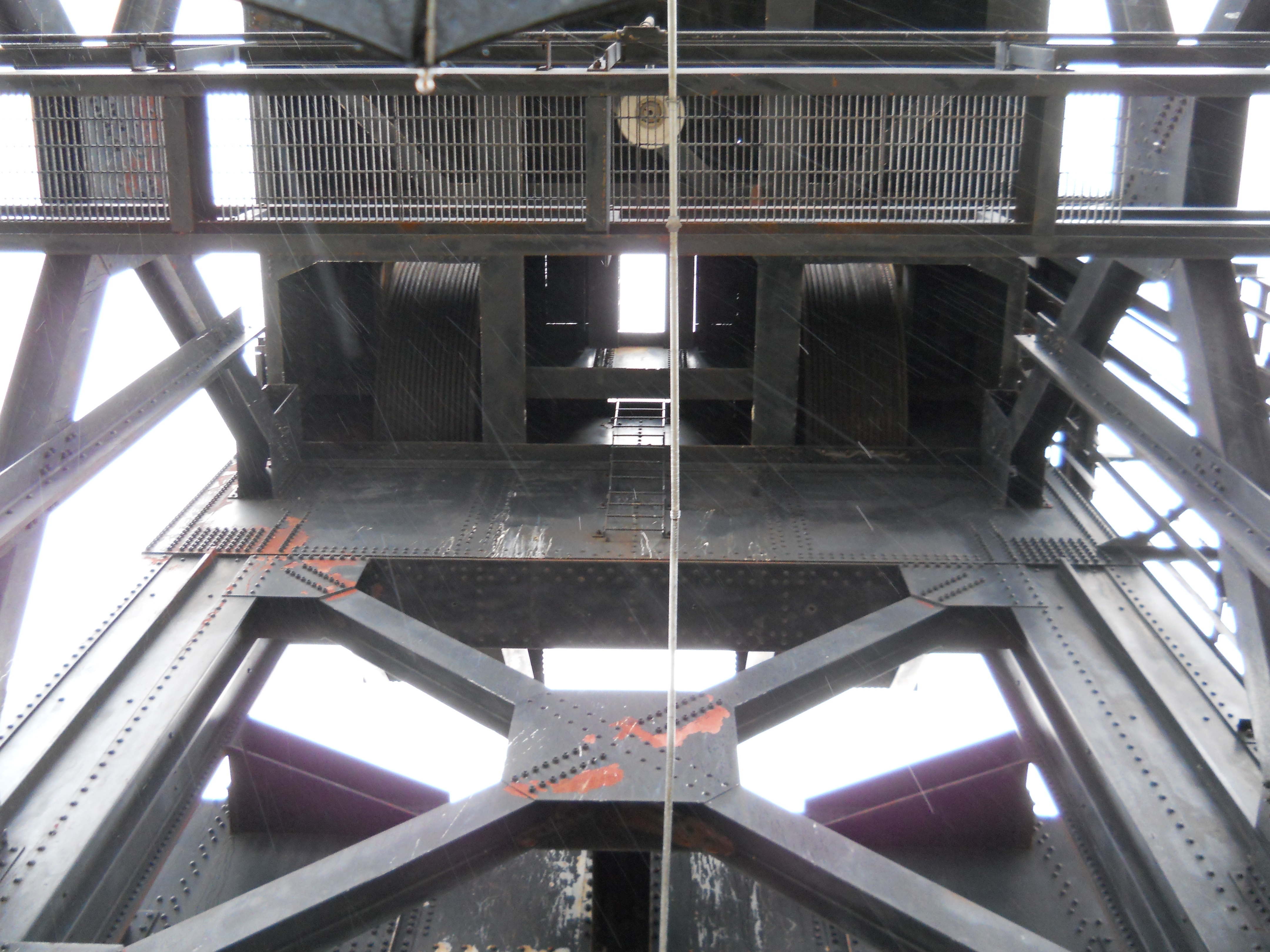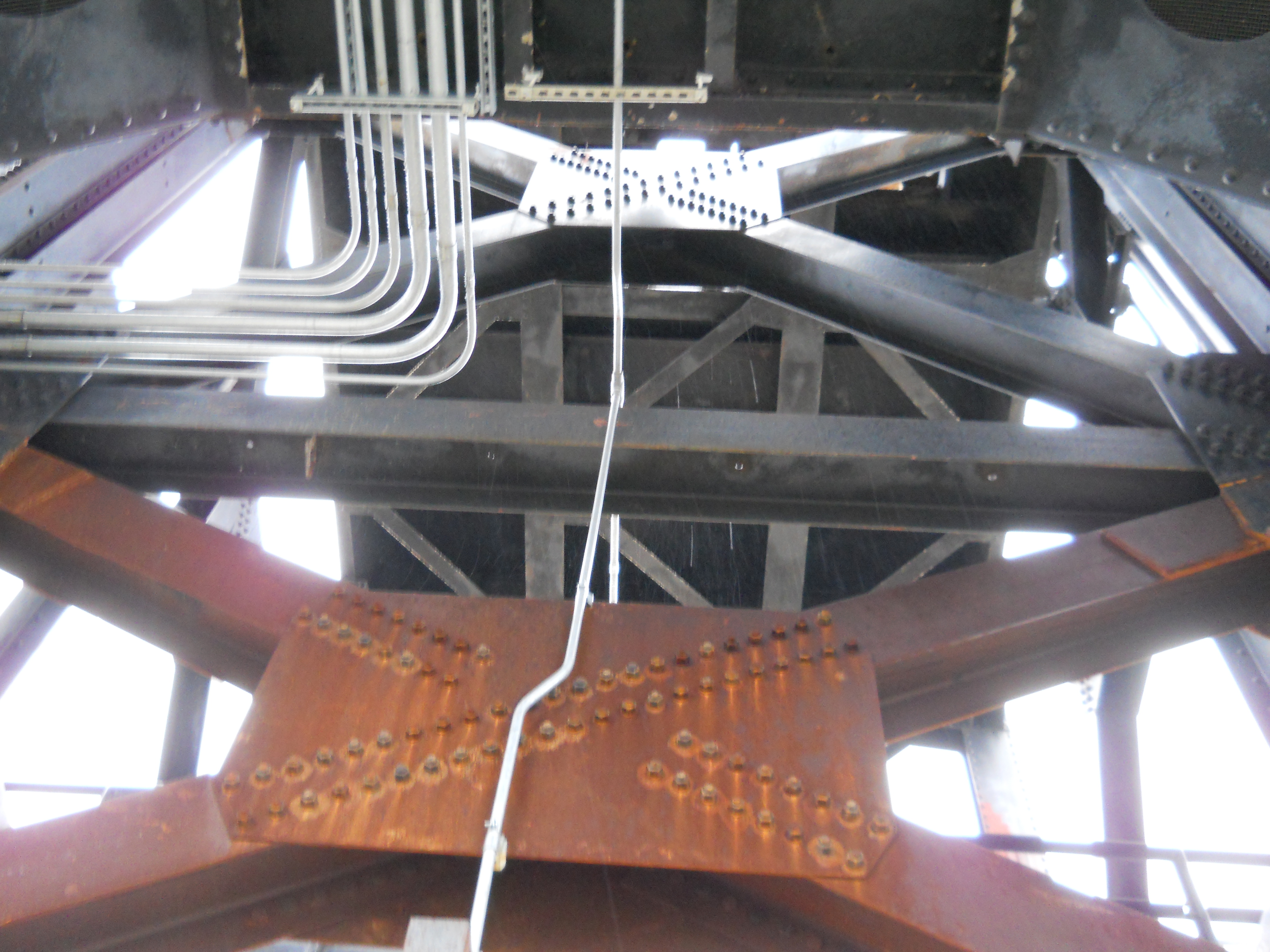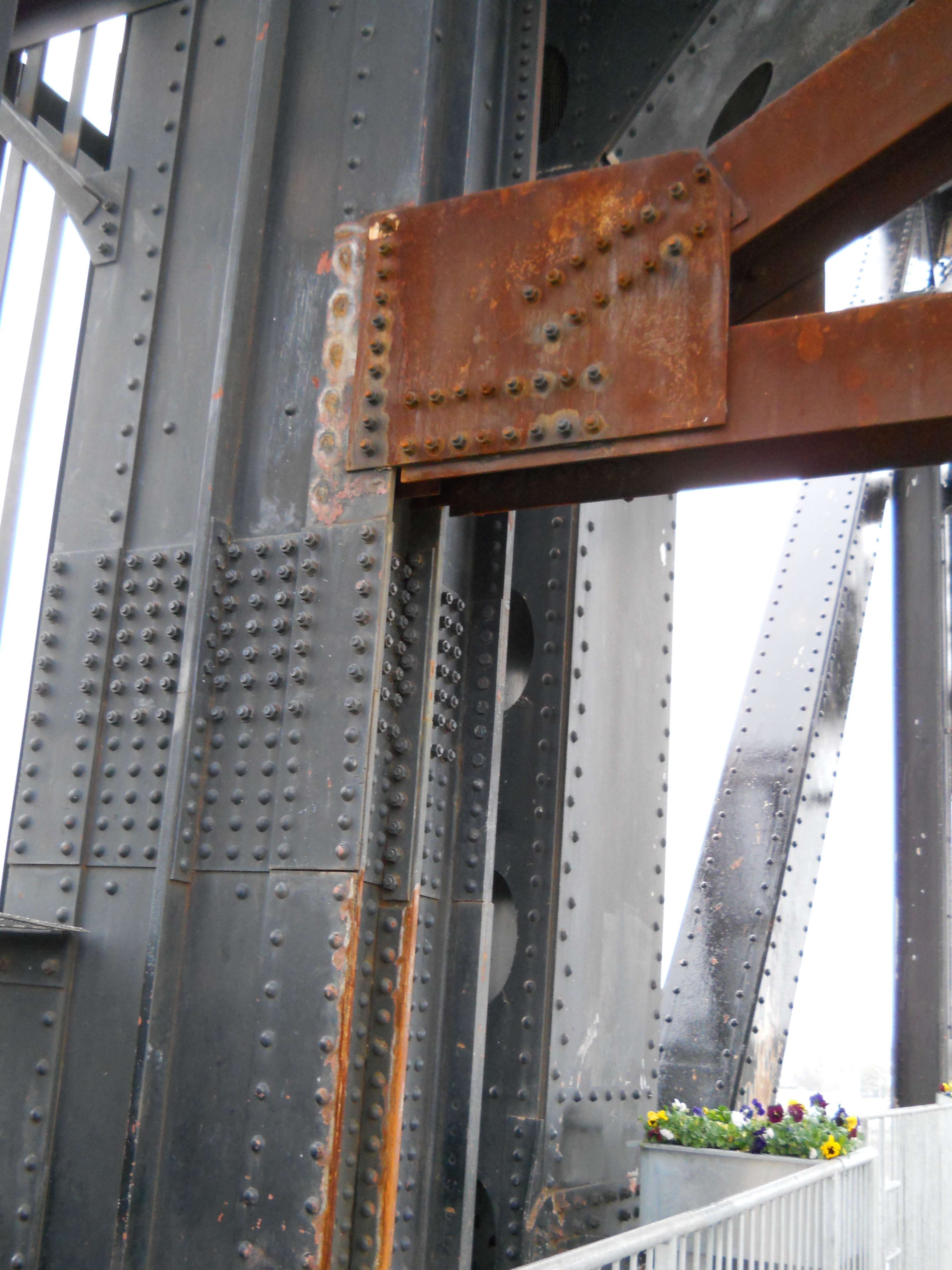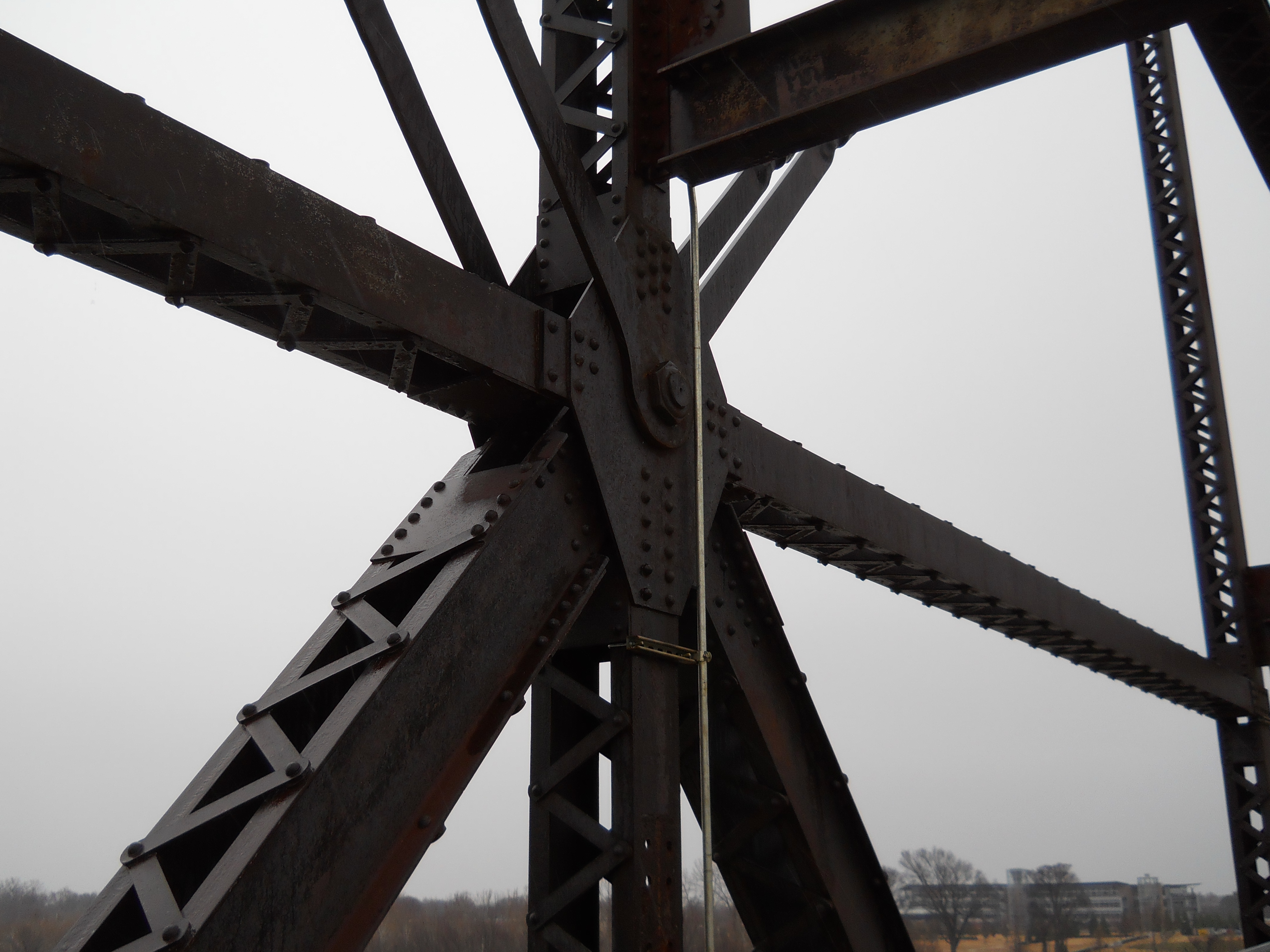 The bridge originally consisted of four 14-panel Pennsylvania through truss spans, for a total length of 1,614 feet. One fixed span was replaced with a 12-panel, polygonal Warren through truss vertical lift span in 1972.