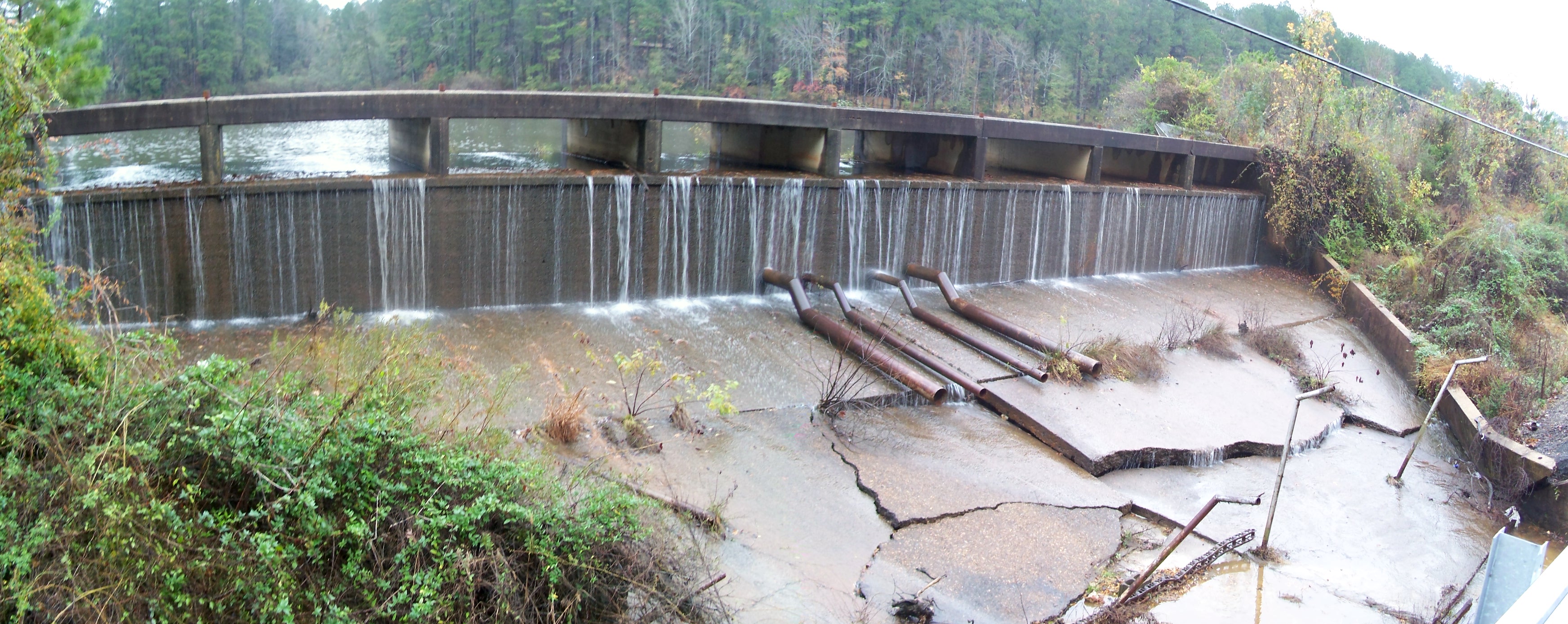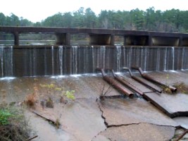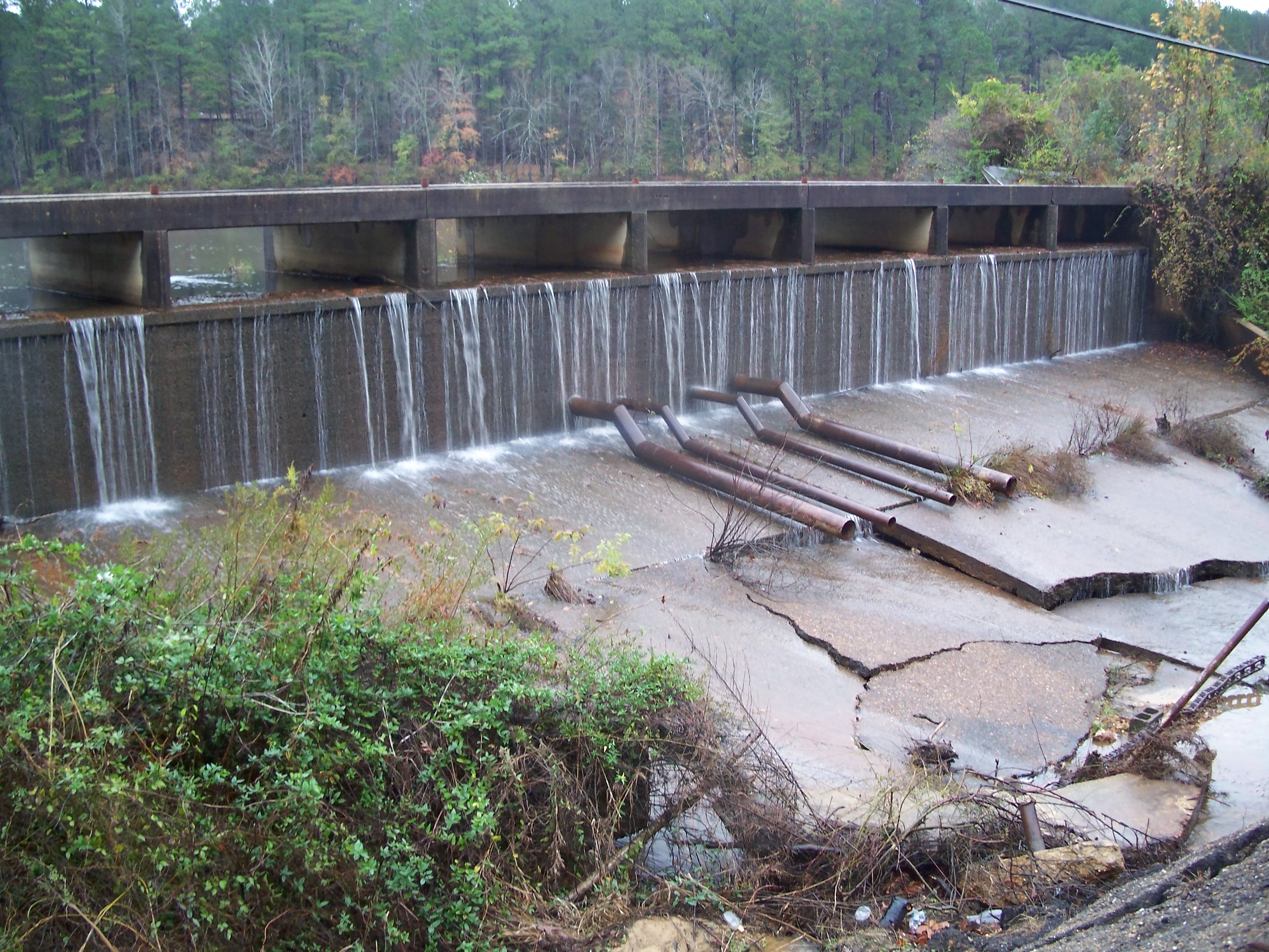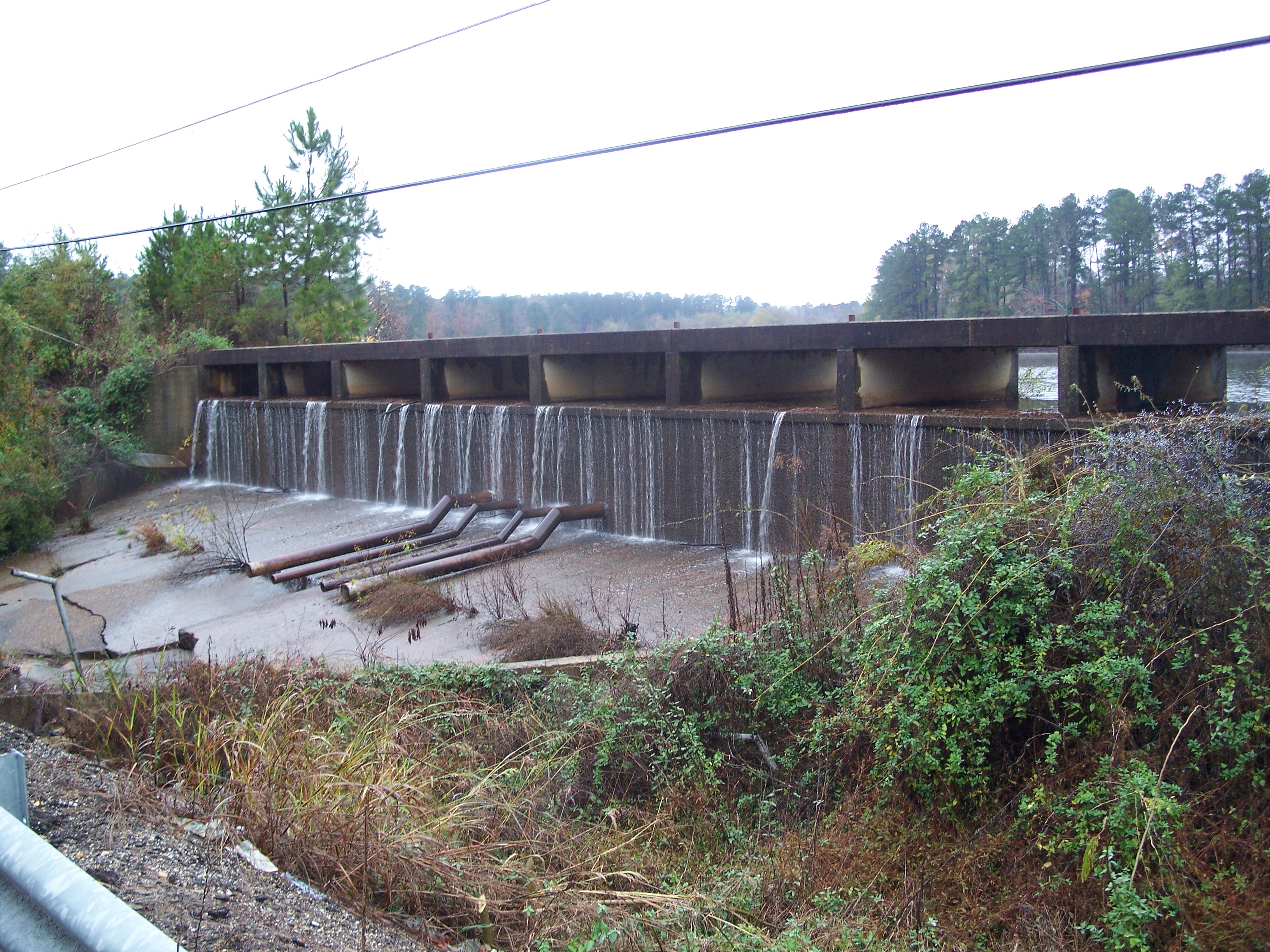 Berg Lake is an otherwise unremarkable body of water just to the west of Camden, AR that is on the opposite side of Route 278 from the Camden Country Club. It empties into Wadleigh Creek. Oddly, the lake is included on maps from topozone but not on Google maps. I happened to pass this unusual structure in 2007 on my way to Hope, AR (birthplace of Bill Clinton). I'm not sure what all the pipes do.