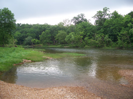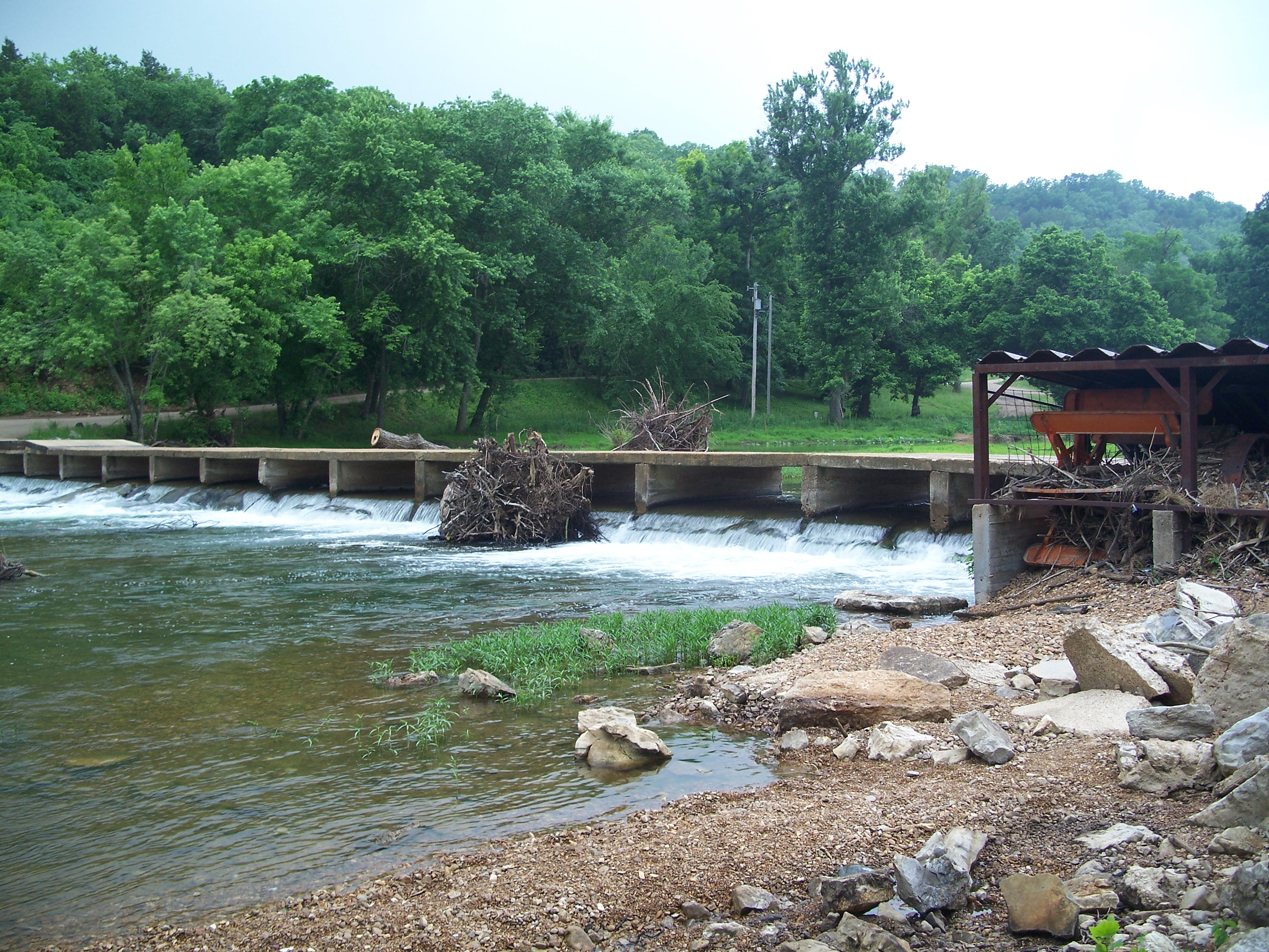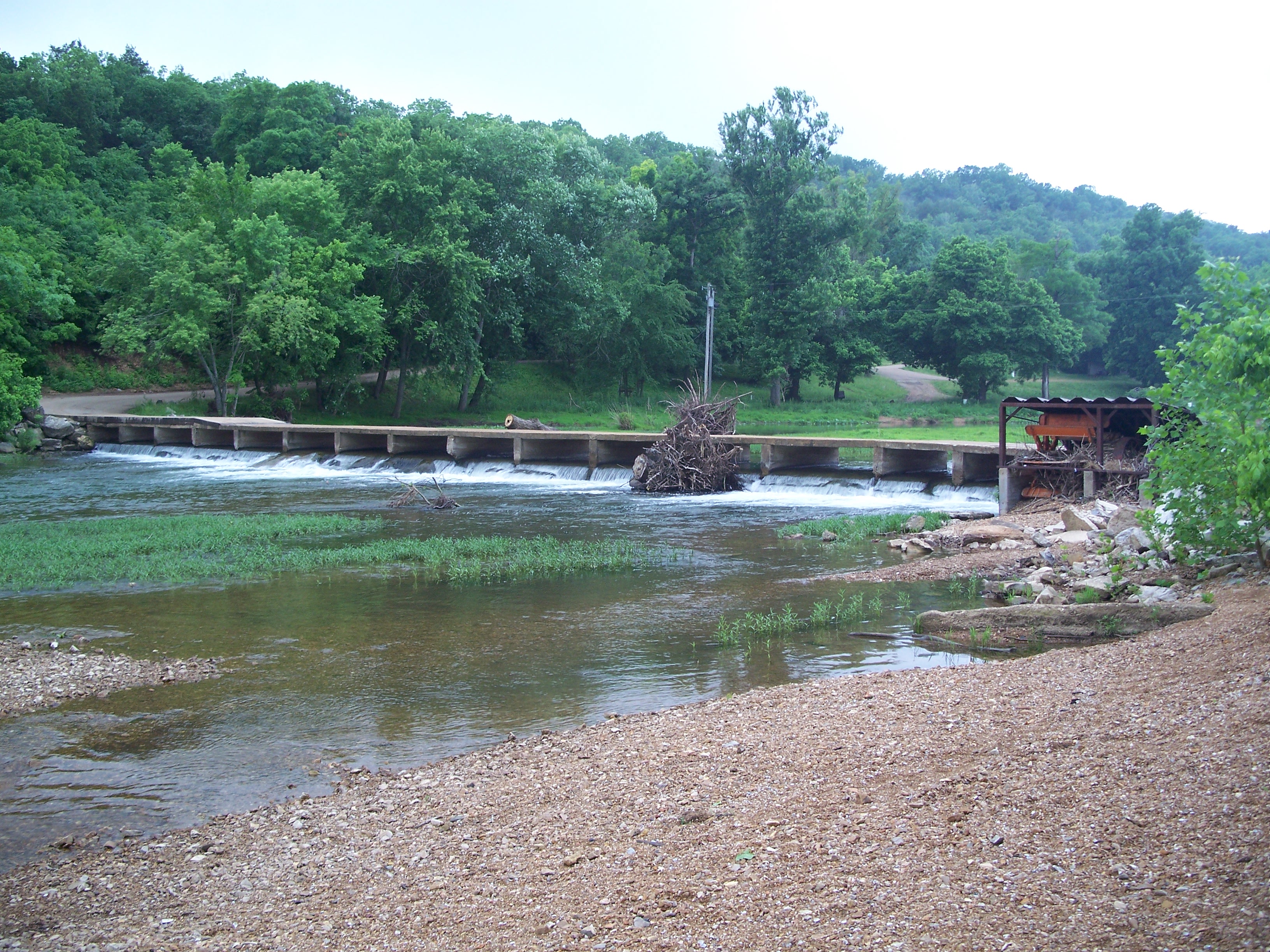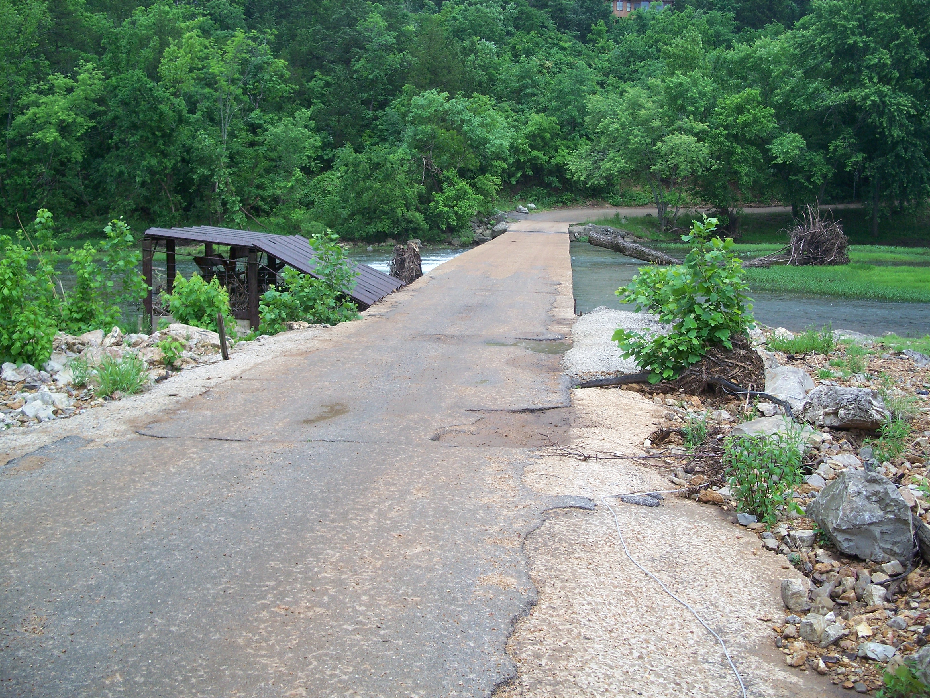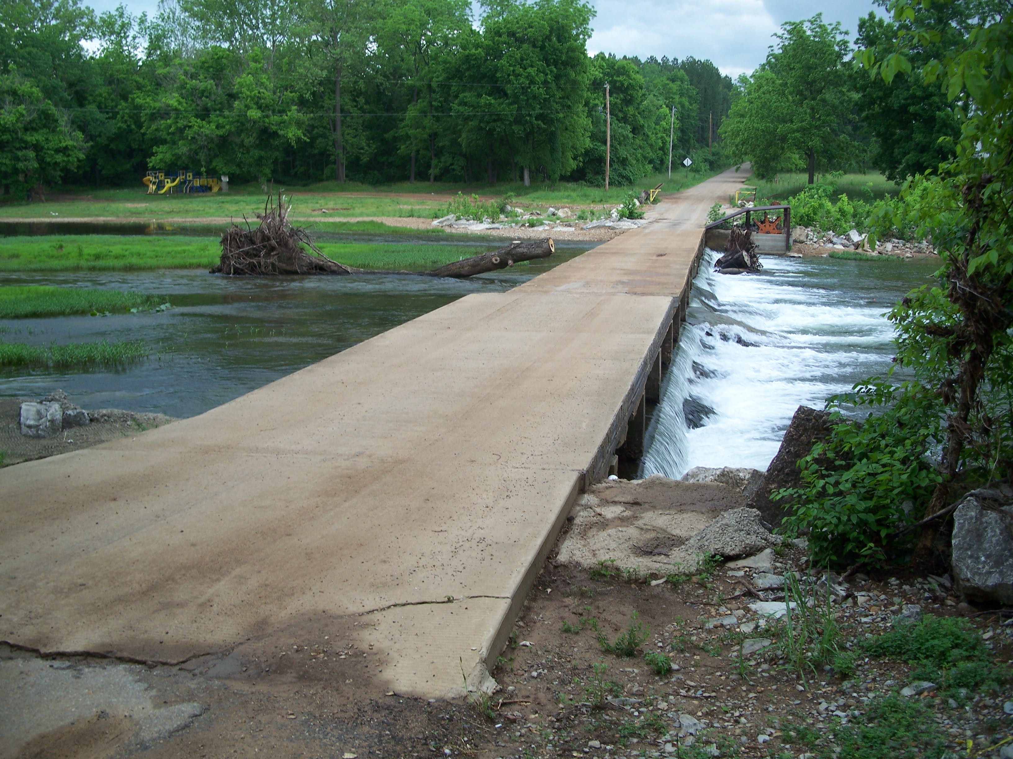 The South Fork of the Spring River starts in Howell County, MO flowing south through Fulton and Sharp counties in Arkansas and joining the Spring River proper just to the east of this bridge. The area had received a significant amount of rain and flooding in the months before I visited in May of 2008, accounting for the tree stumps to the east and west of the bridge.